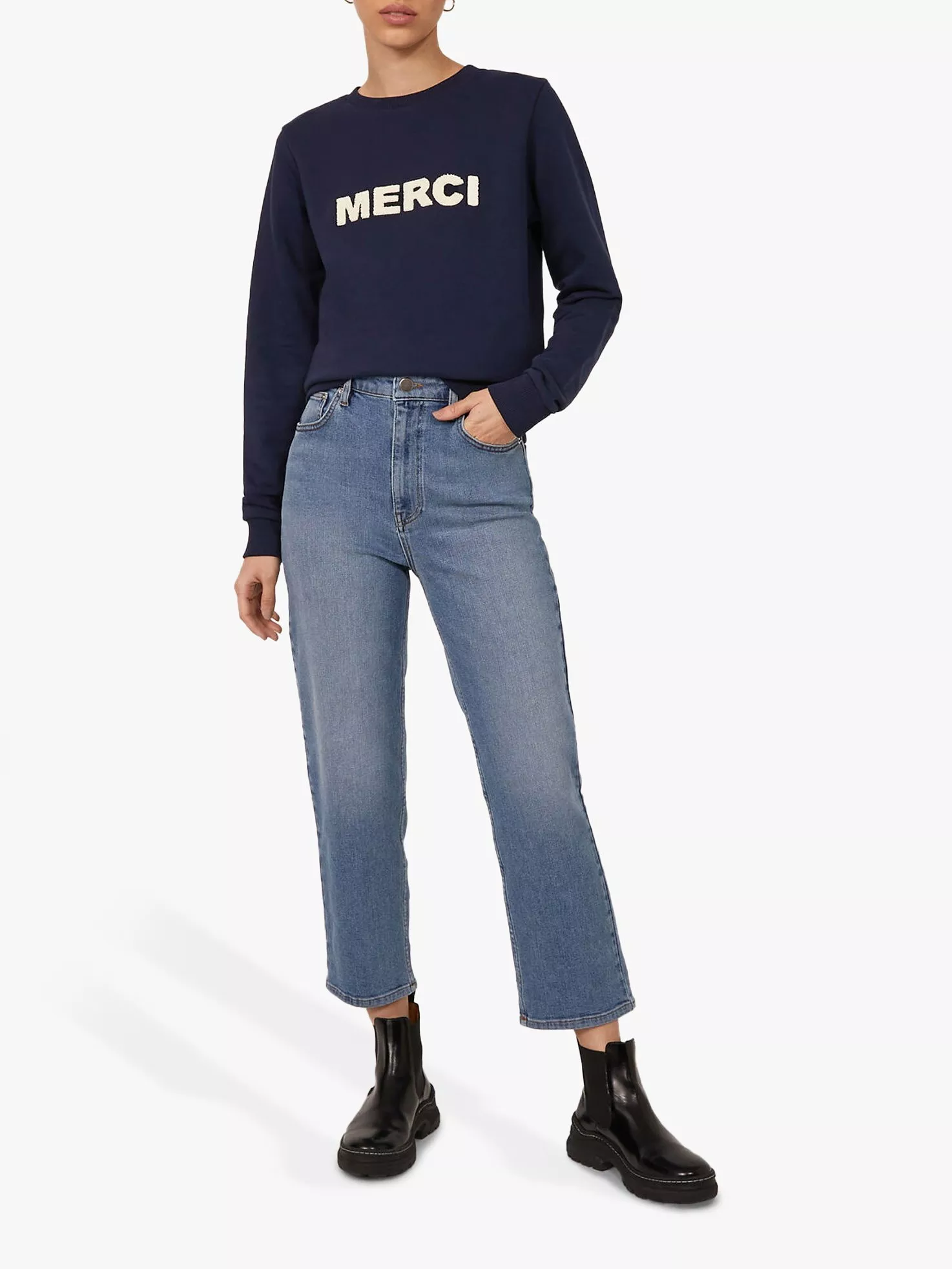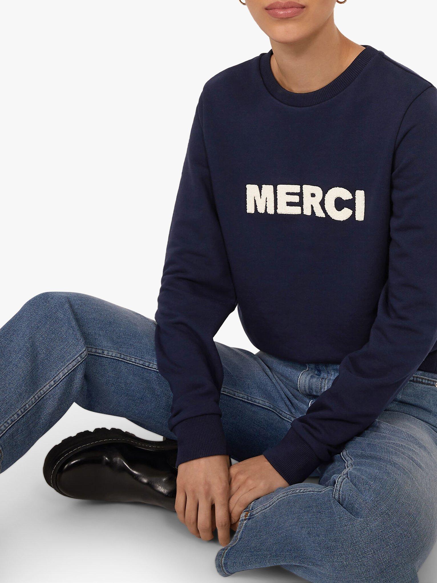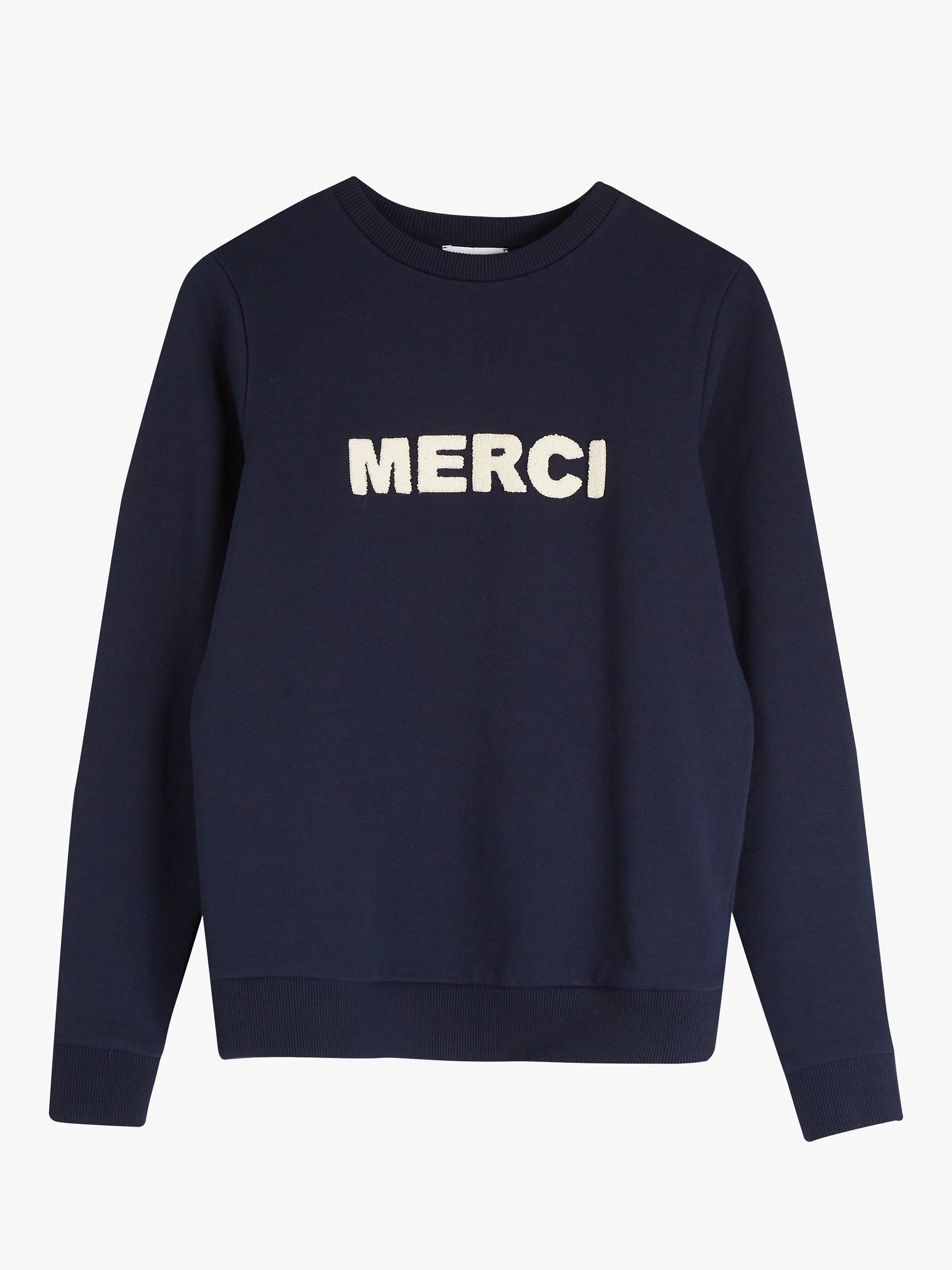 Thank Warehouse for this sweatshirt, emblazoned with a 'Merci' slogan proudly across the chest. In a comfortable cotton-blend jersey, with all the trappings of a classic sweatshirt. It's the easy way to tap into the athleisure trend.