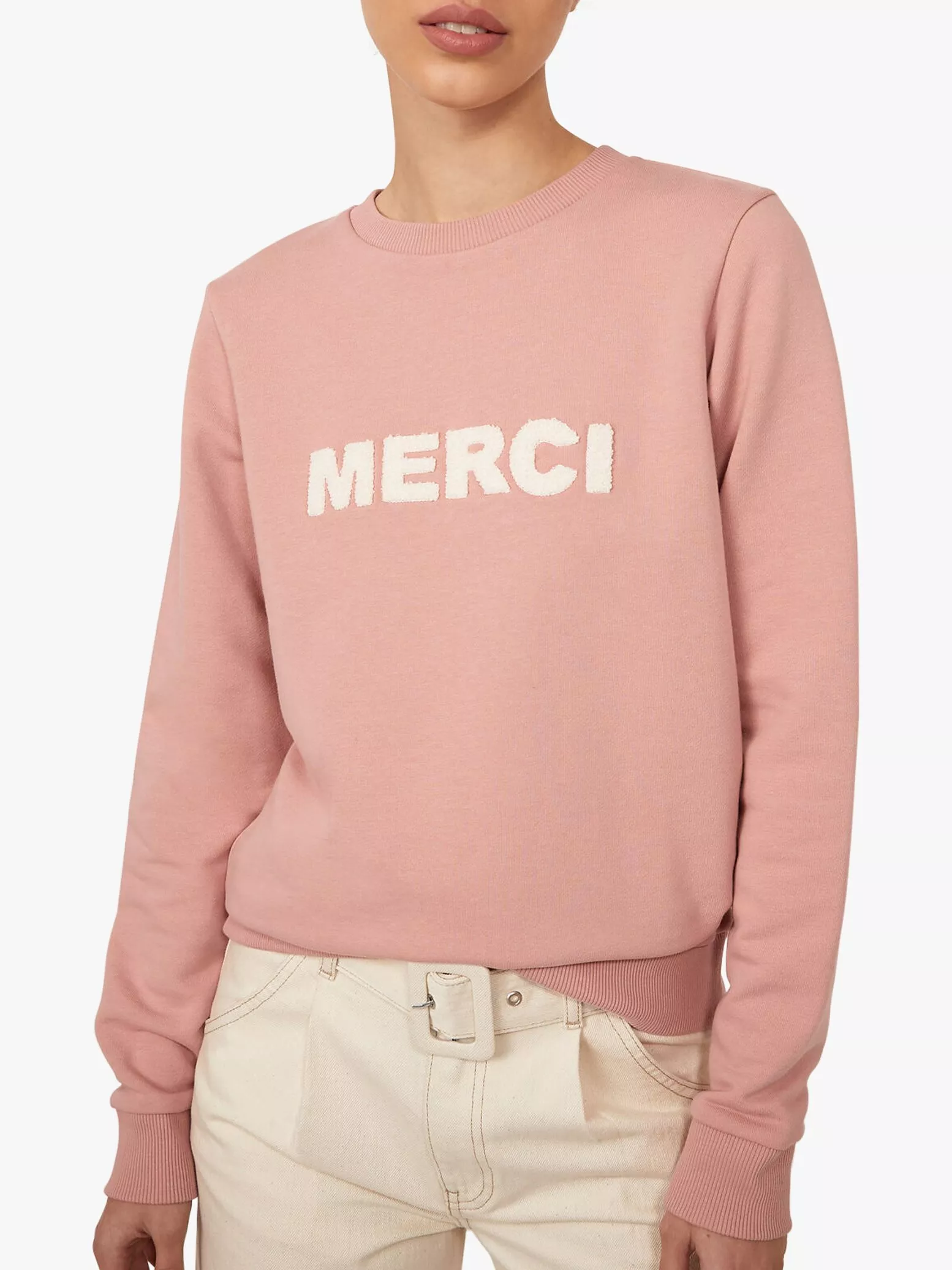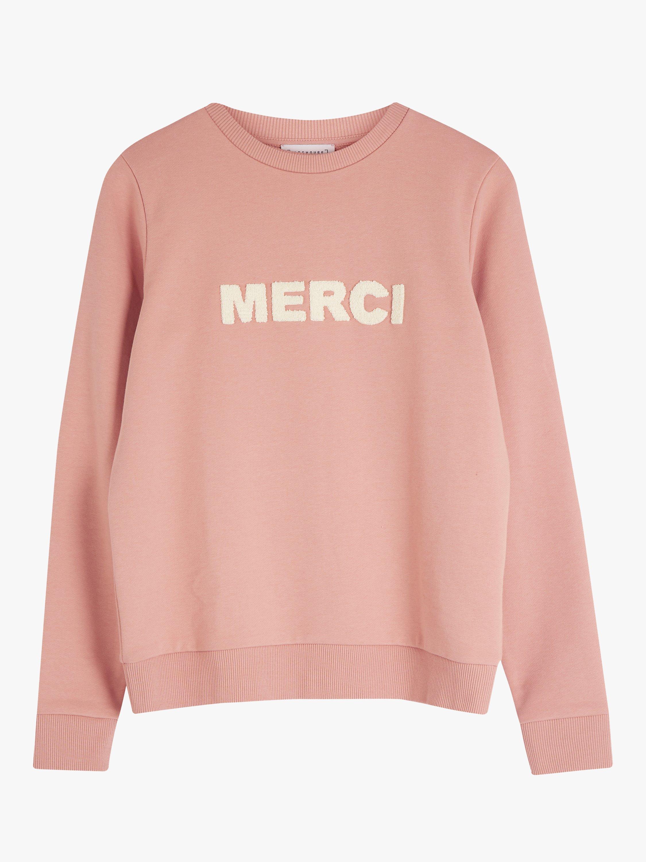 Thank Warehouse for this sweatshirt, emblazoned with a 'Merci' slogan proudly across the chest. In a comfortable cotton-blend jersey, with all the trappings of a classic sweatshirt. It's the easy way to tap into the athleisure trend.