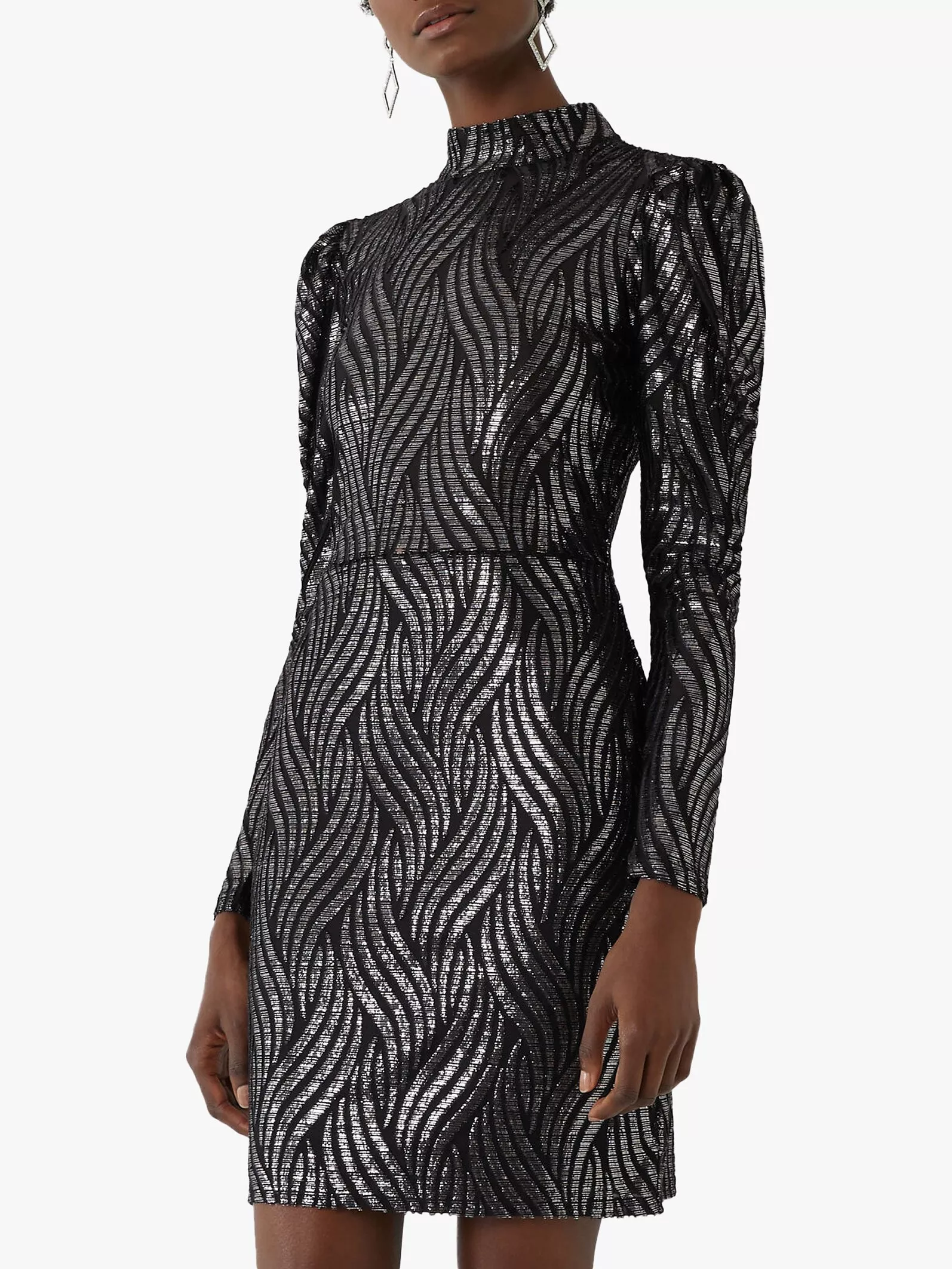 Designed in a metallic flame pattern and cut to a mini length with an on-trend funnel neckline, this dress from Warehouse offers an effortless contemporary look with sleek appeal.