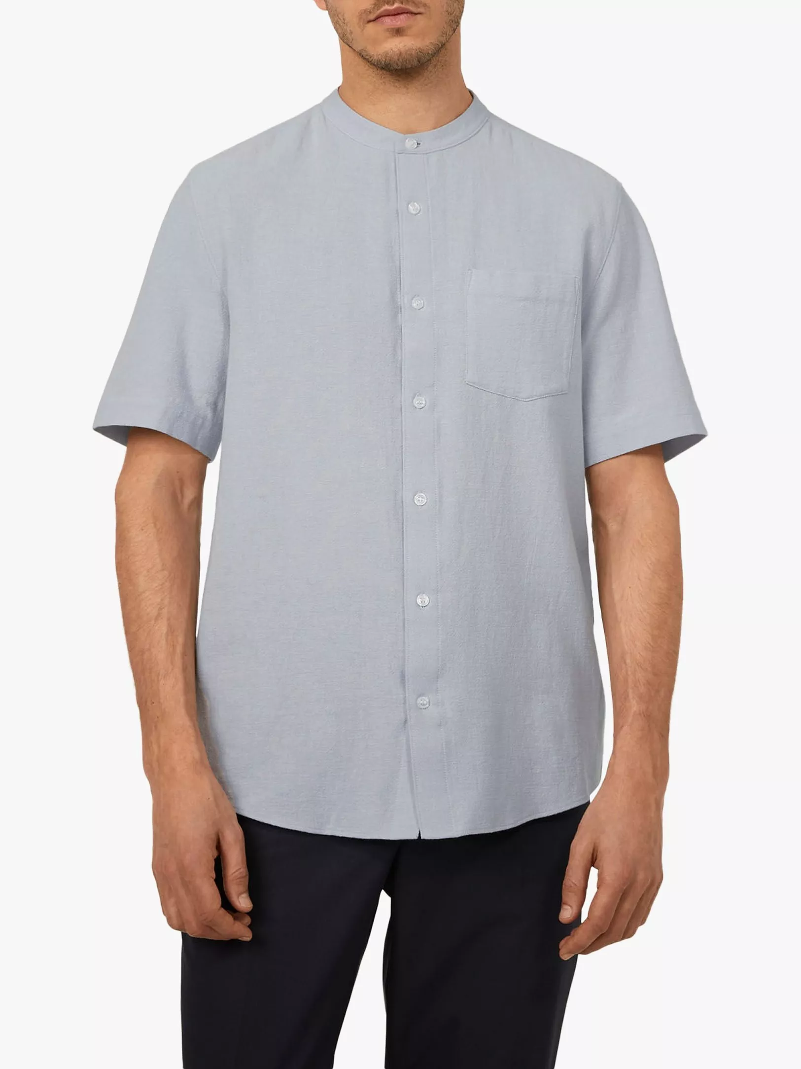 Build upon your wardrobe basics with a Gentleman's casual staple from British fashion favourites Warehouse. An ideal alternative to your everyday shirting, this shirt combines a pure cotton fabrication with a traditional Grandad collar to create a lightweight and breezy handle that's perfect for warm-weather styling - We've been wearing ours with the sleeves rolled up with Warehouse's contrasting laundered chino trousers completing our roof-top ready look.