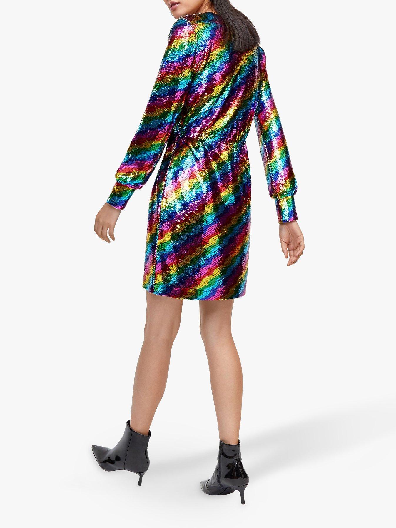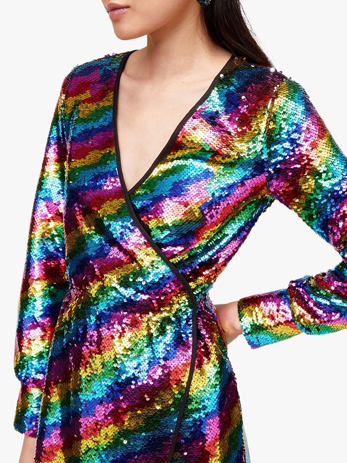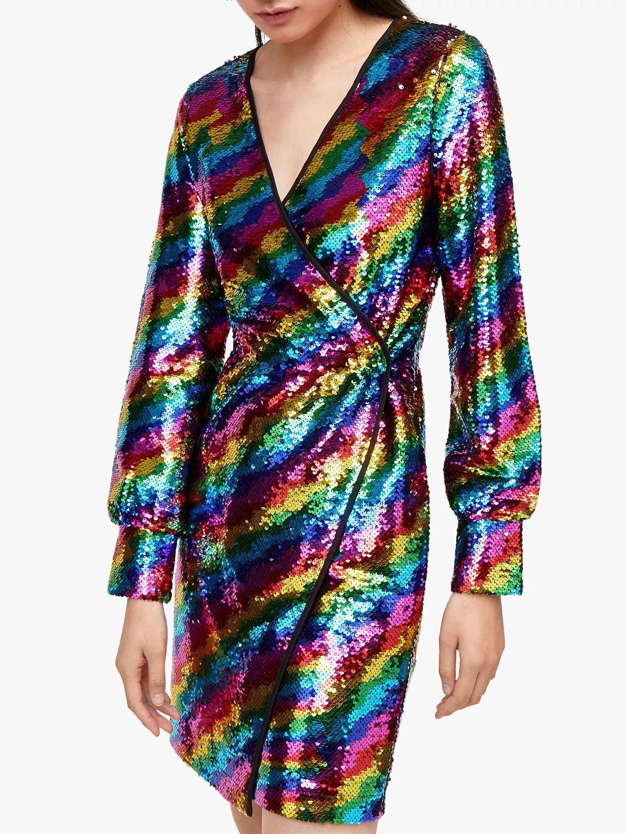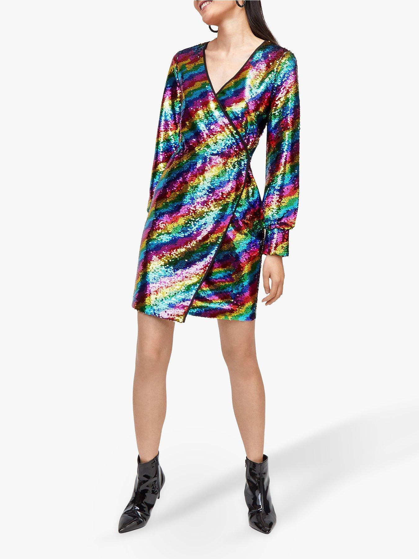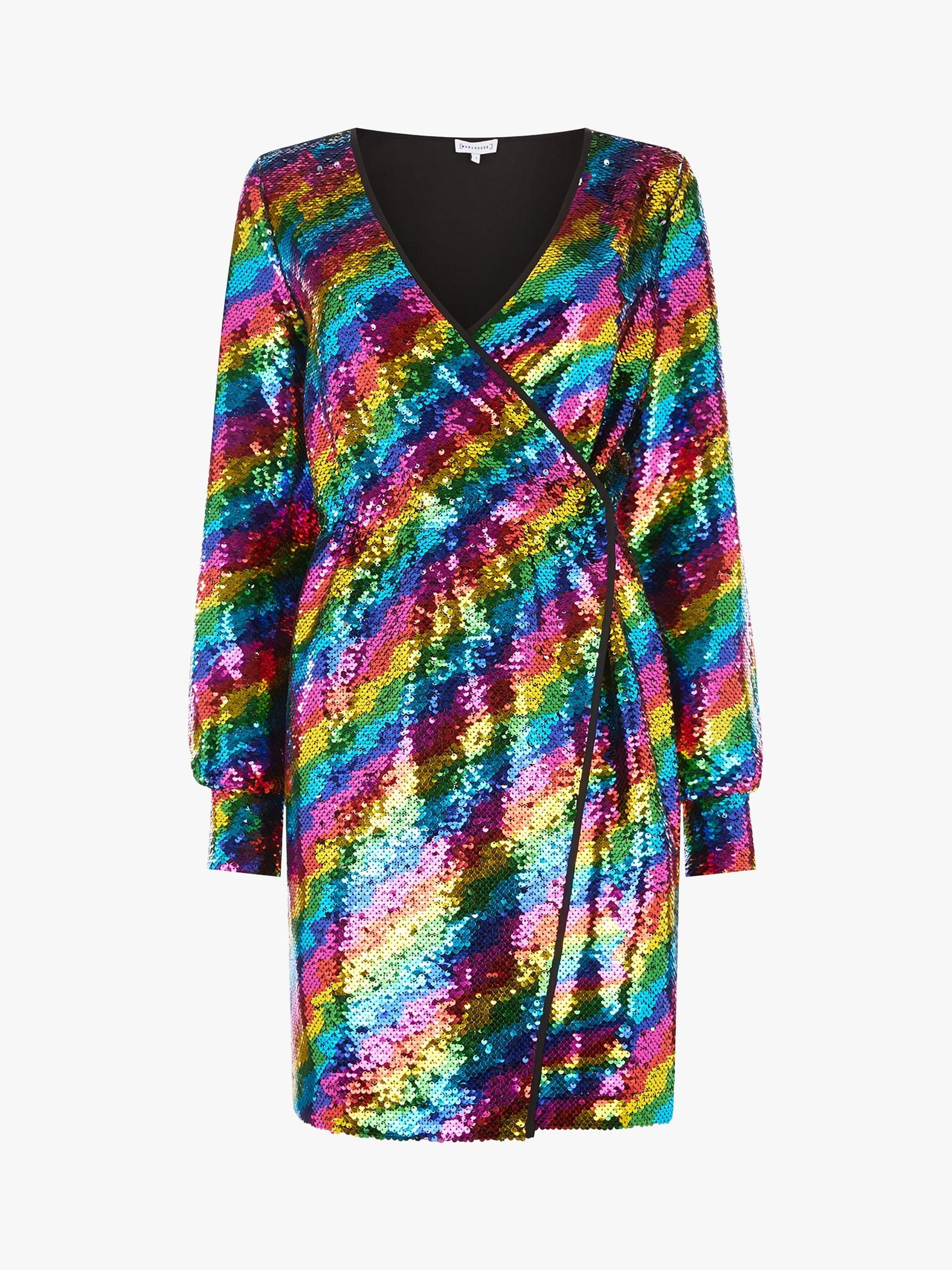 Oozing with more colour and vibrancy than an Andy Warhol piece, this Rainbow Sequin Wrap Dress from Warehouse will light up the room of any party you go to this season!