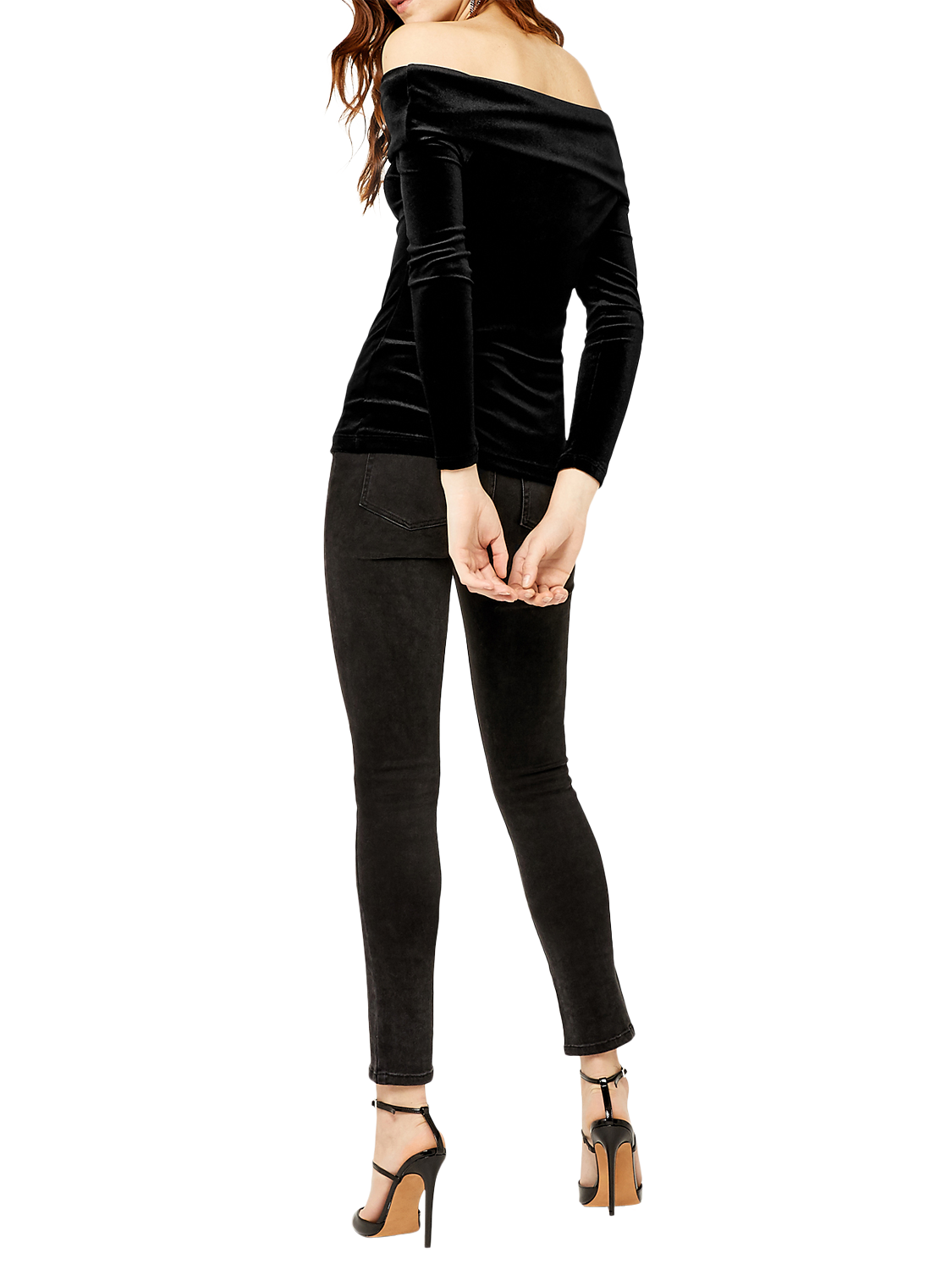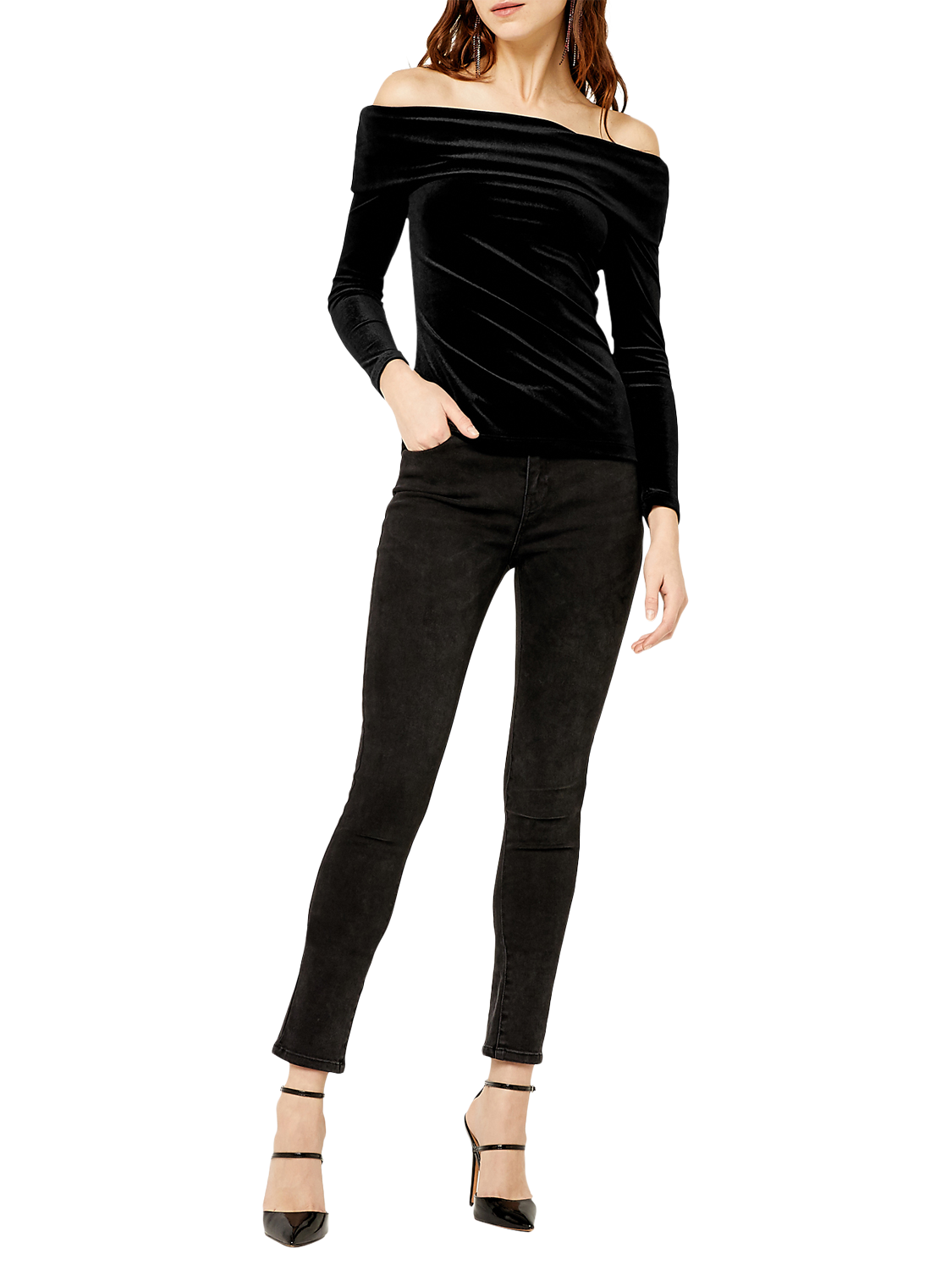 Designed in sumptuous velvet for a tactile edge, this top is designed with a statement bardot neckline, featuring long sleeves and a slim fit.