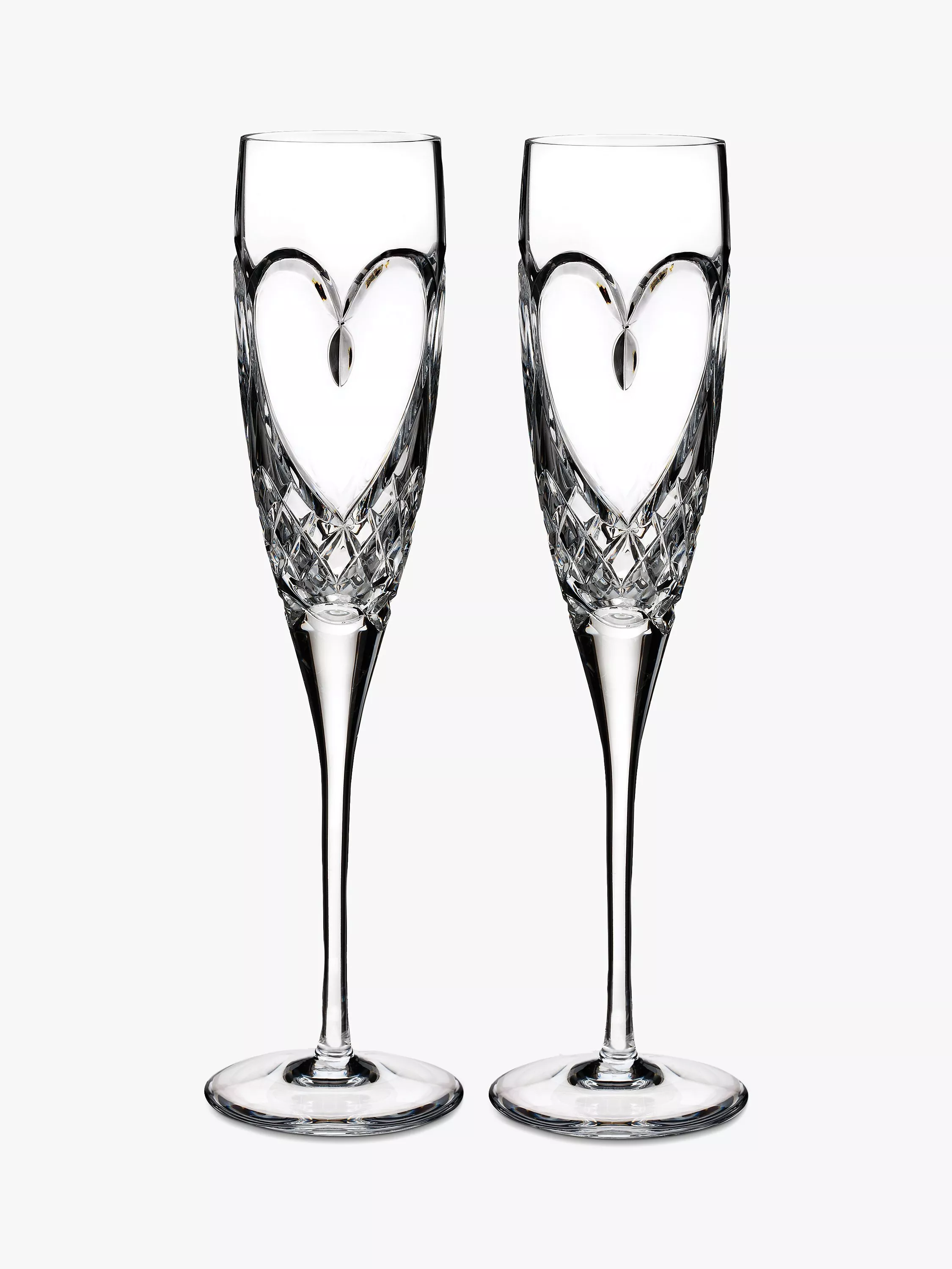 Featuring an intricately cut heart pattern and delicate pulled stems, this pair of toasting flutes from Waterford are designed for those days and occasions when you want to celebrate your True Love. Whether it's Valentine's Day, an anniversary celebration, or just date night, these flutes are perfect for enjoying a glass of bubbly with your partner.