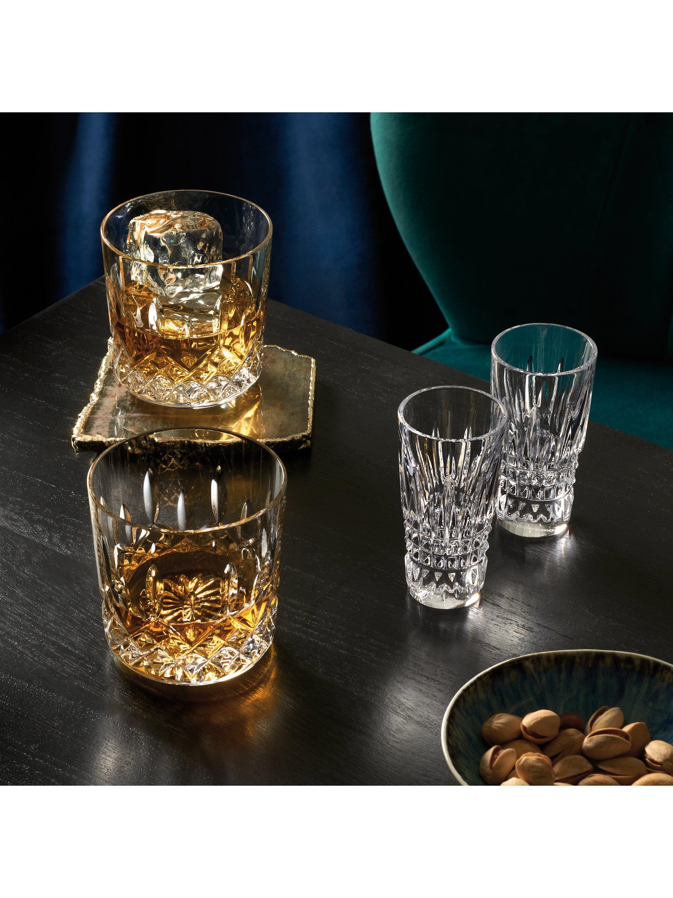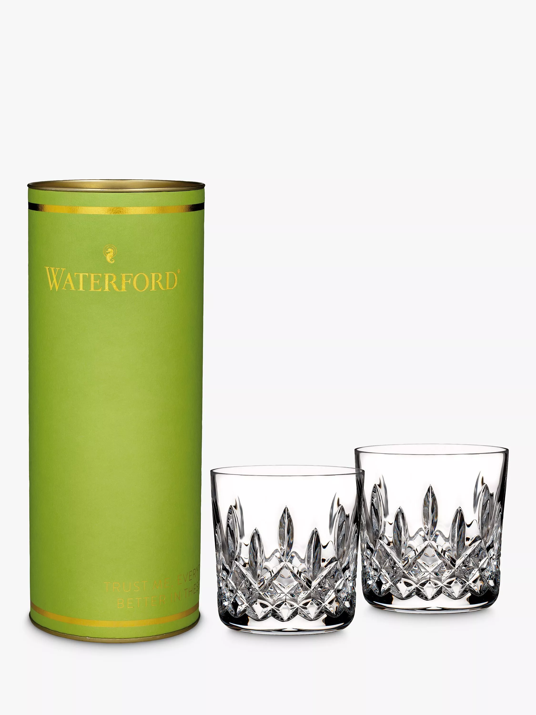 A pair of elegant whisky tumblers featuring the diamond and wedge cuts that are the Lismore collection's signature pattern. Each tumbler is hand-crafted from the finest crystal glass and made with a thick and pleasingly weighty base.