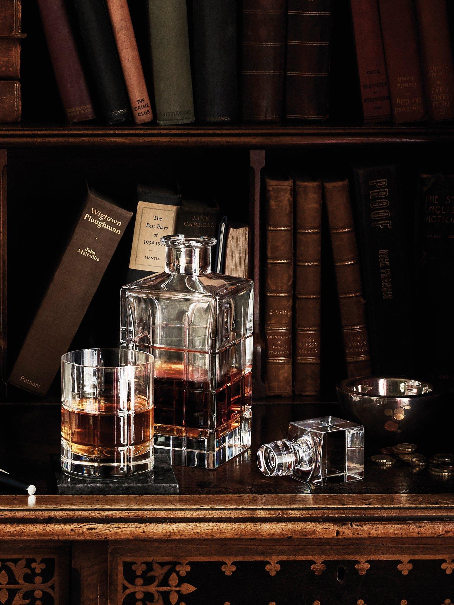 A pair of Double Old Fashioned tumblers designed for vintage cocktails. Made of the finest crystal glass, known for its clarity and brilliance, this pair feature the Cluin cut-glass pattern and are presented in classic Waterford packaging, making an ideal gift.