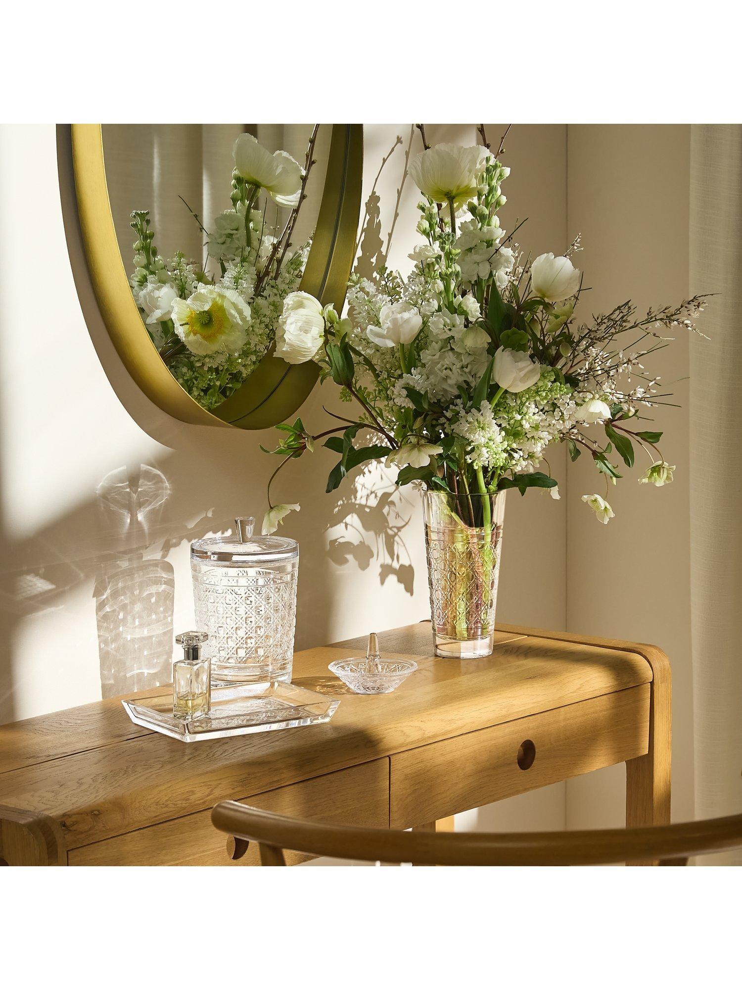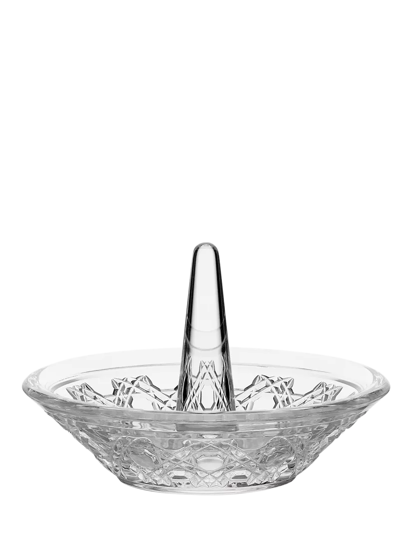 Keep your cherished rings in style with the Waterford Crystal Opulence Ring Holder. Its intricate, jewel-like cut-glass lattice-like design shimmers with elegance, making it a fine and eye-catching addition to any space.