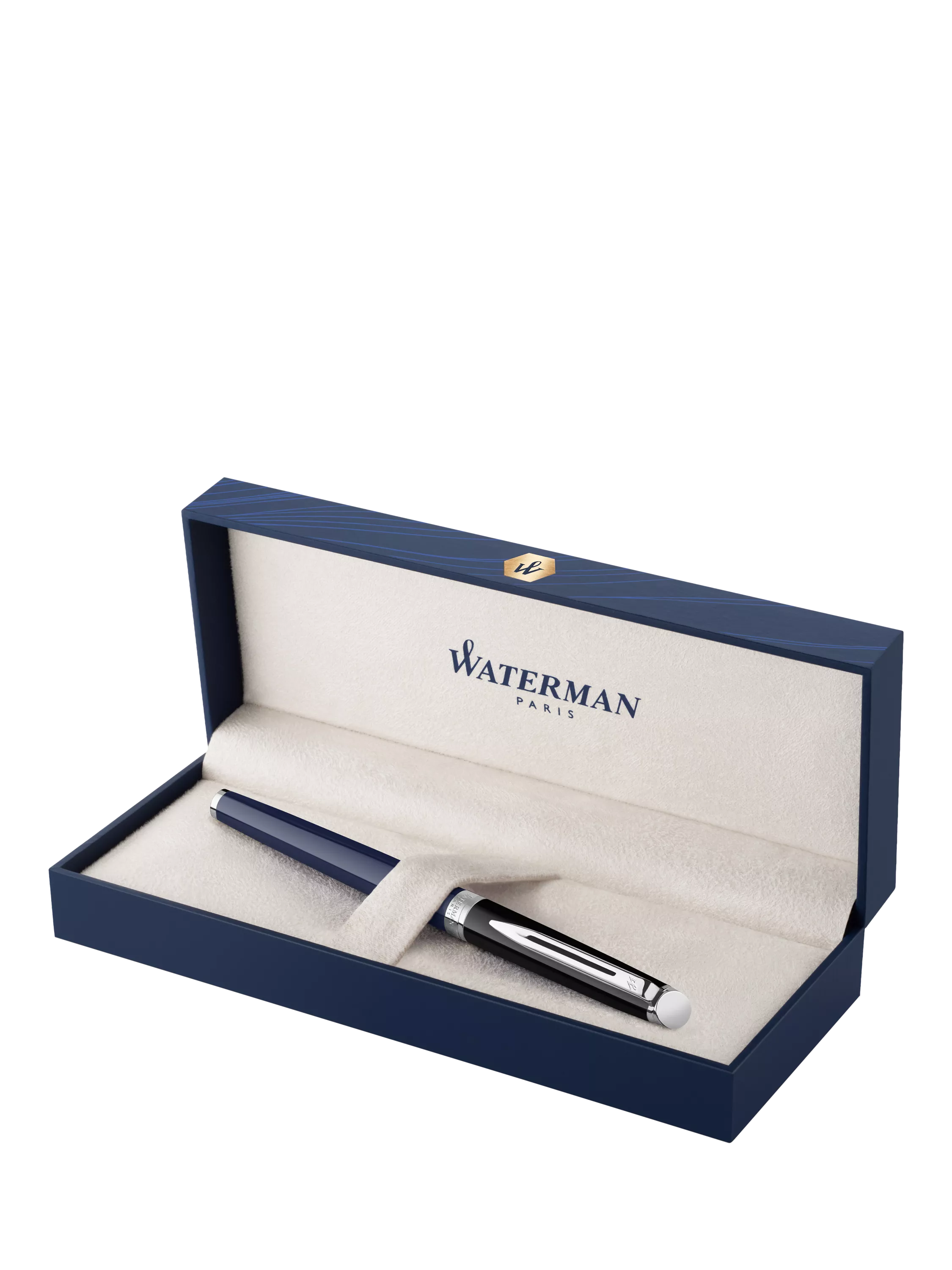 Make a statement with the Hemisphere Colour Blocking collection. Taking its inspiration from this season’s boldest trend, this fashion forward rollerball pen is stylishly finished with black lacquer on the cap and blue lacquer on the barrel. Its striking appeal is set off with the classic Waterman, signature double branched clip and eloquent Palladium coated trim. French made, this beautiful creation benefits from Waterman inhouse craftsmanship, it comes with a 2-year international warranty and is presented in a premium Waterman gift box. The new Hemisphere Colour Blocking collection is rewriting the rules in statement writing accessories.