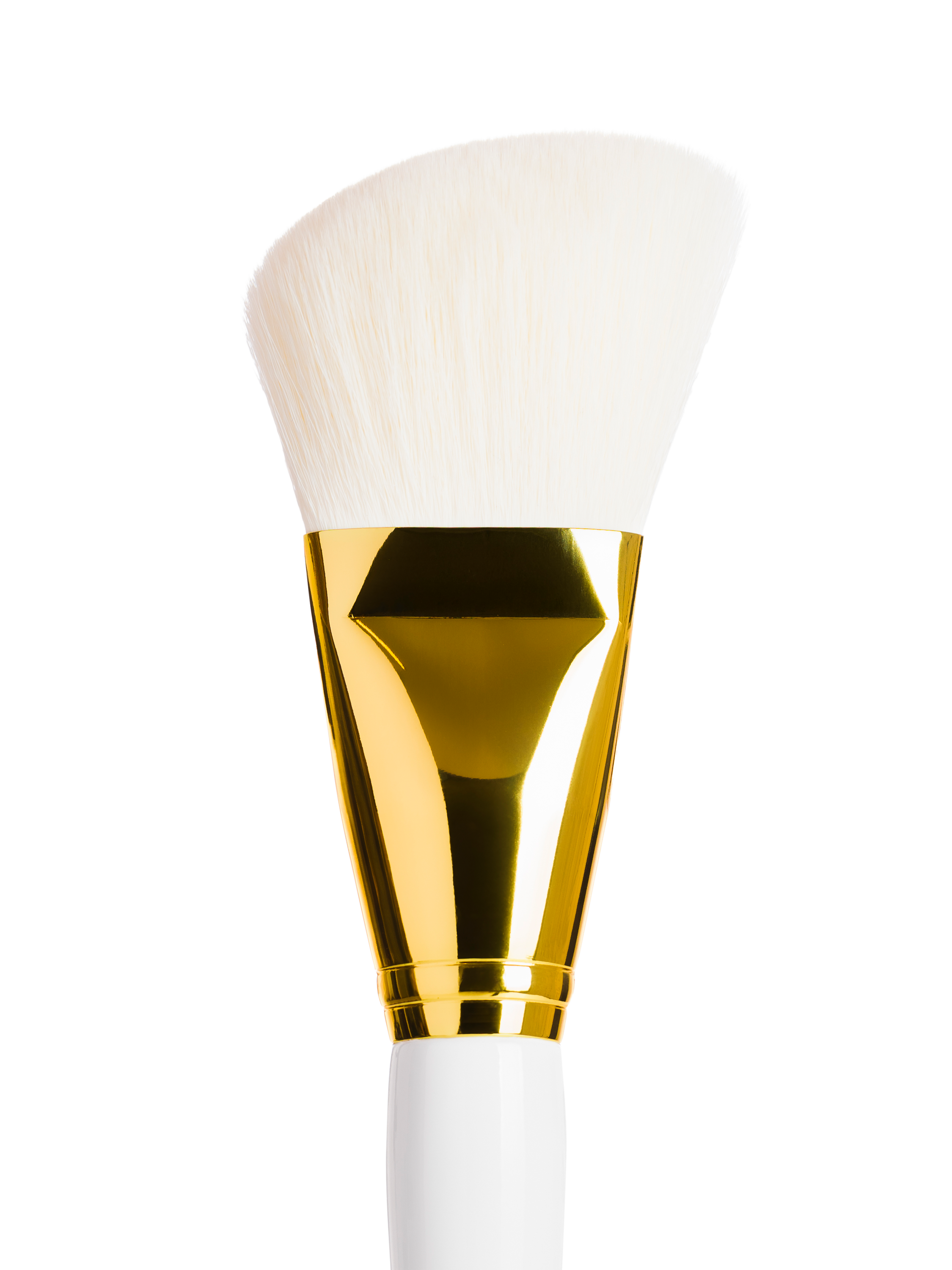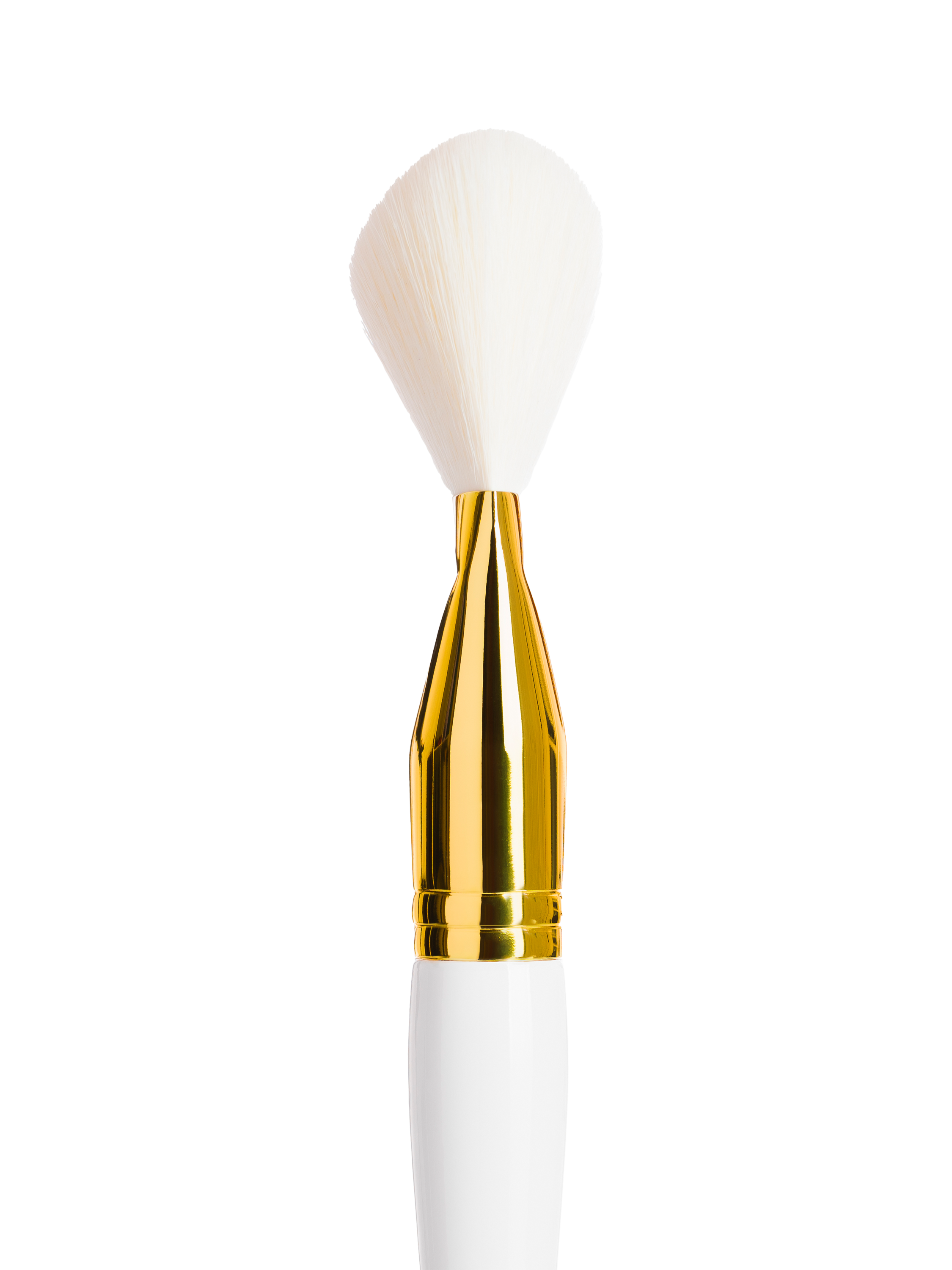 - Premium gloss white handle, super soft white bristles, and a metallic gold ferrule