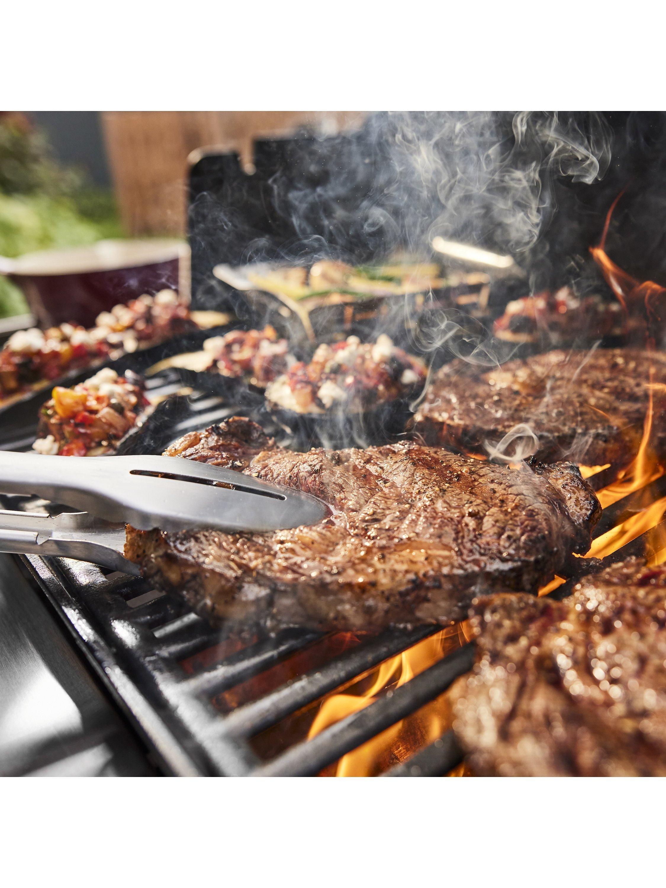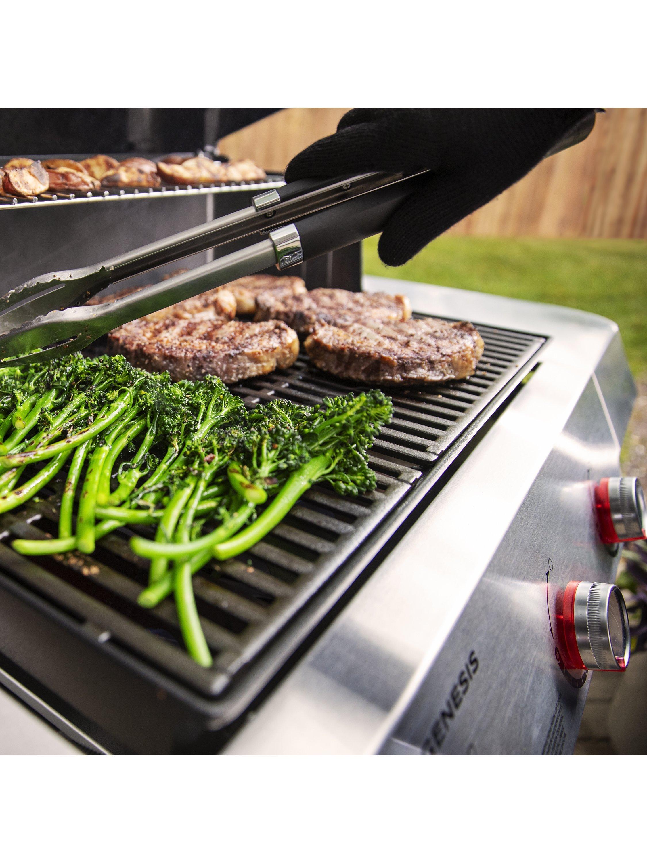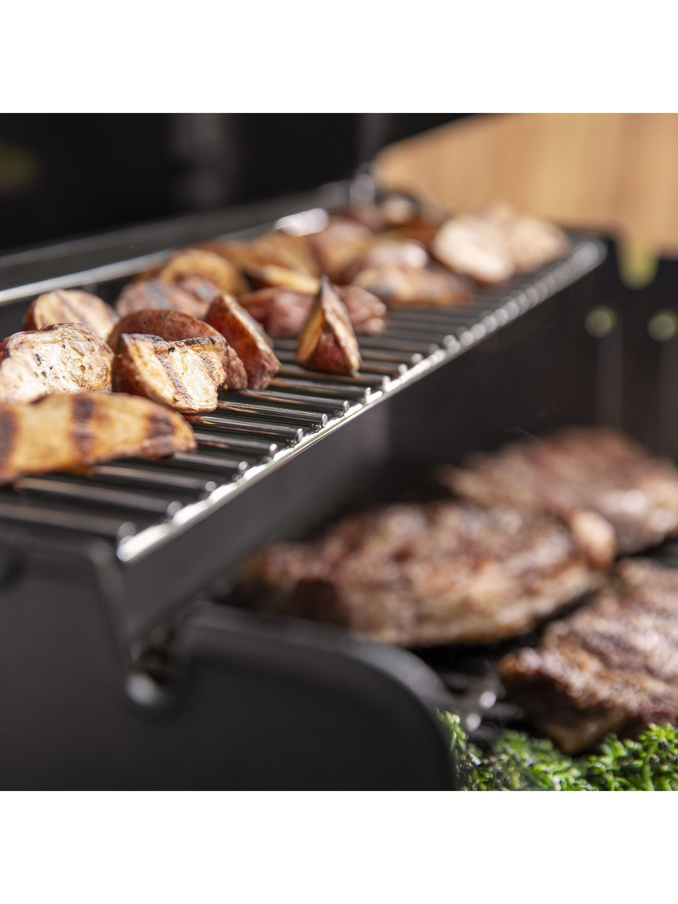- Porcelain-enamelled, cast-iron cooking grates retain heat for searing and expand barbecuing techniques