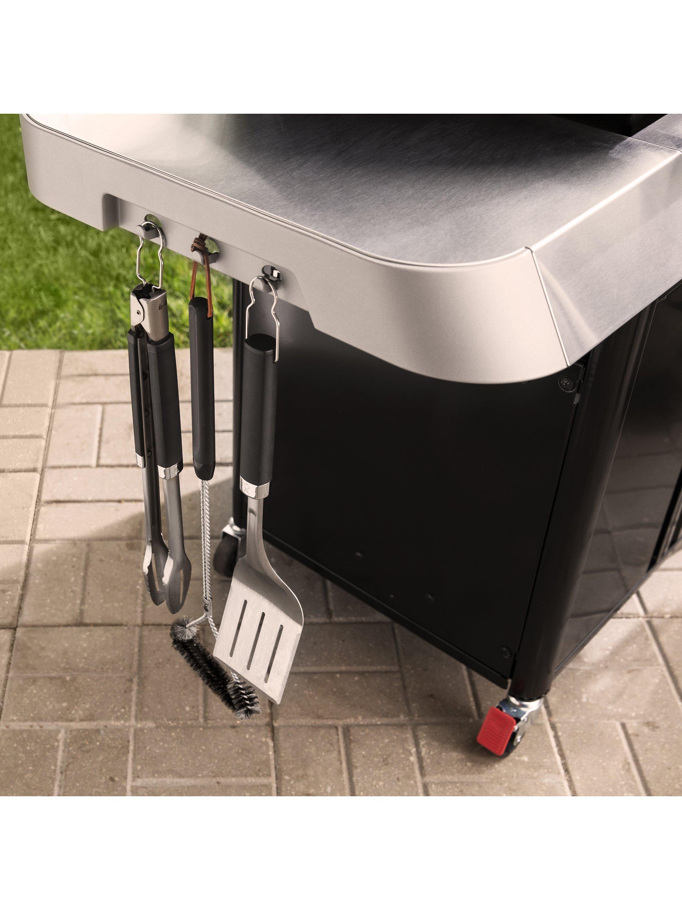 Prep, sear and serve everything outside, where the party is with the Weber Genesis E-315 gas barbecue. Cook on up to three gas burners at one time and when food is ready, easily transfer it to the large prep-and-serve side shelves, for a seamless barbecuing experience.