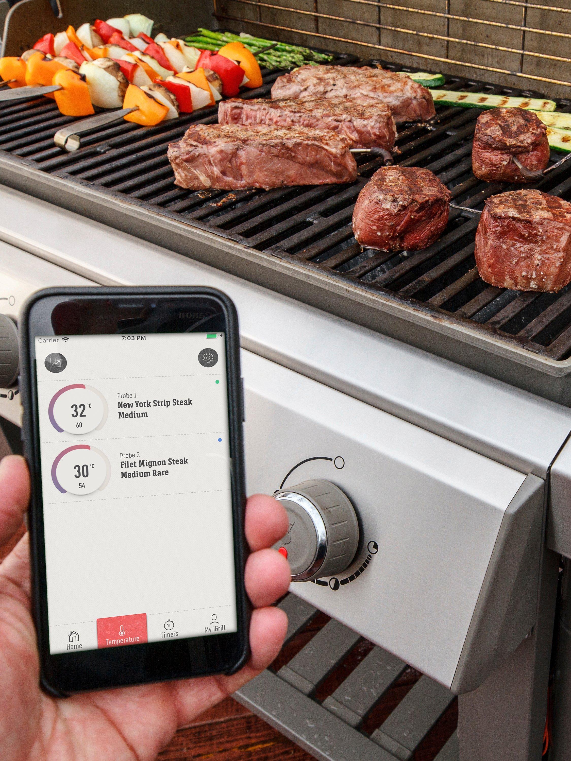 Connect this versatile thermometer to the Weber® iGrill app via Bluetooth and measure the temperature of your food on your smartphone. Use the pre-setting or make your own - it's all up to you. Comes with two probes but has the capacity to hold four.