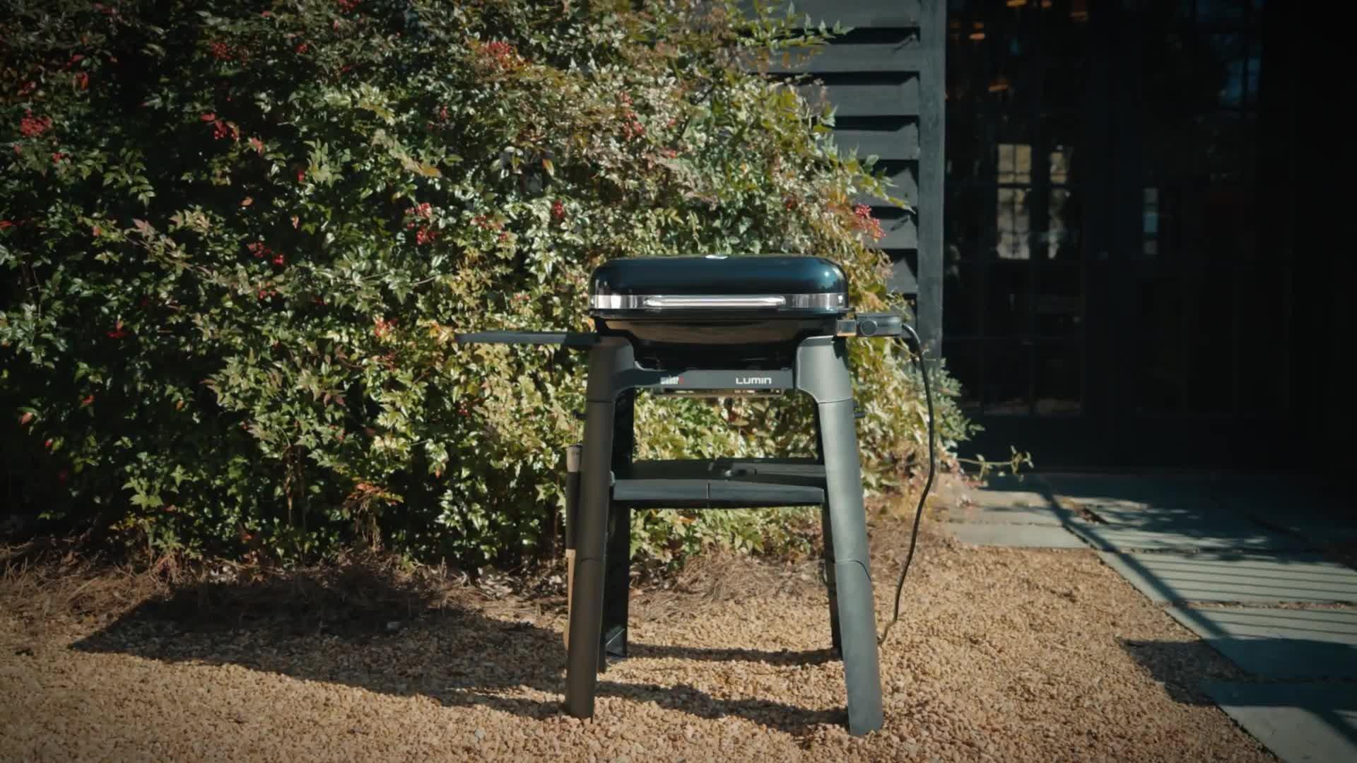 It can also keep food warm so everyone can serve themselves. The collapsible stand is easy to set up and provides added space and built-in tool hooks. Modern and convenient, Weber's Lumin compact electric barbecue is designed to suit both your taste and your outdoor space.