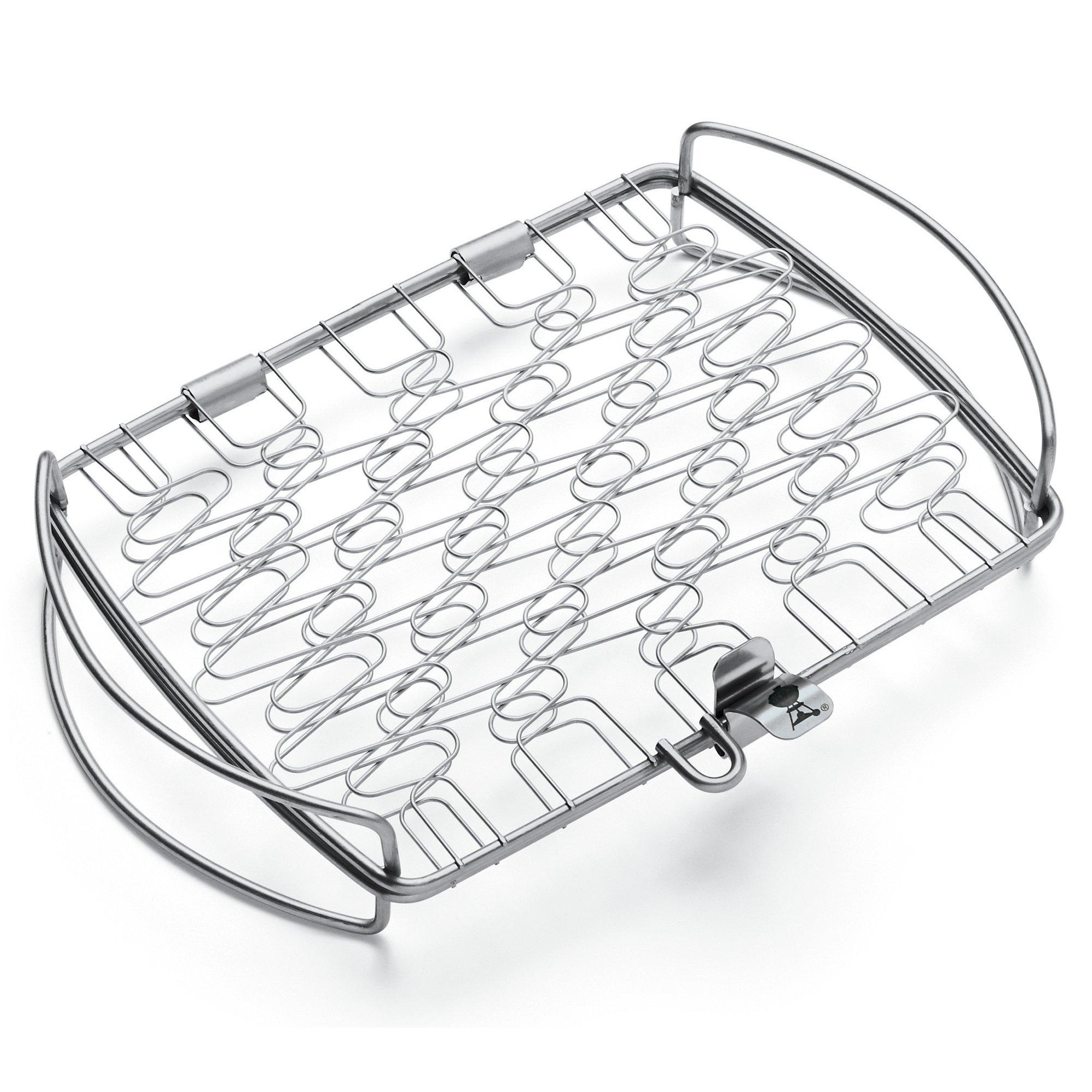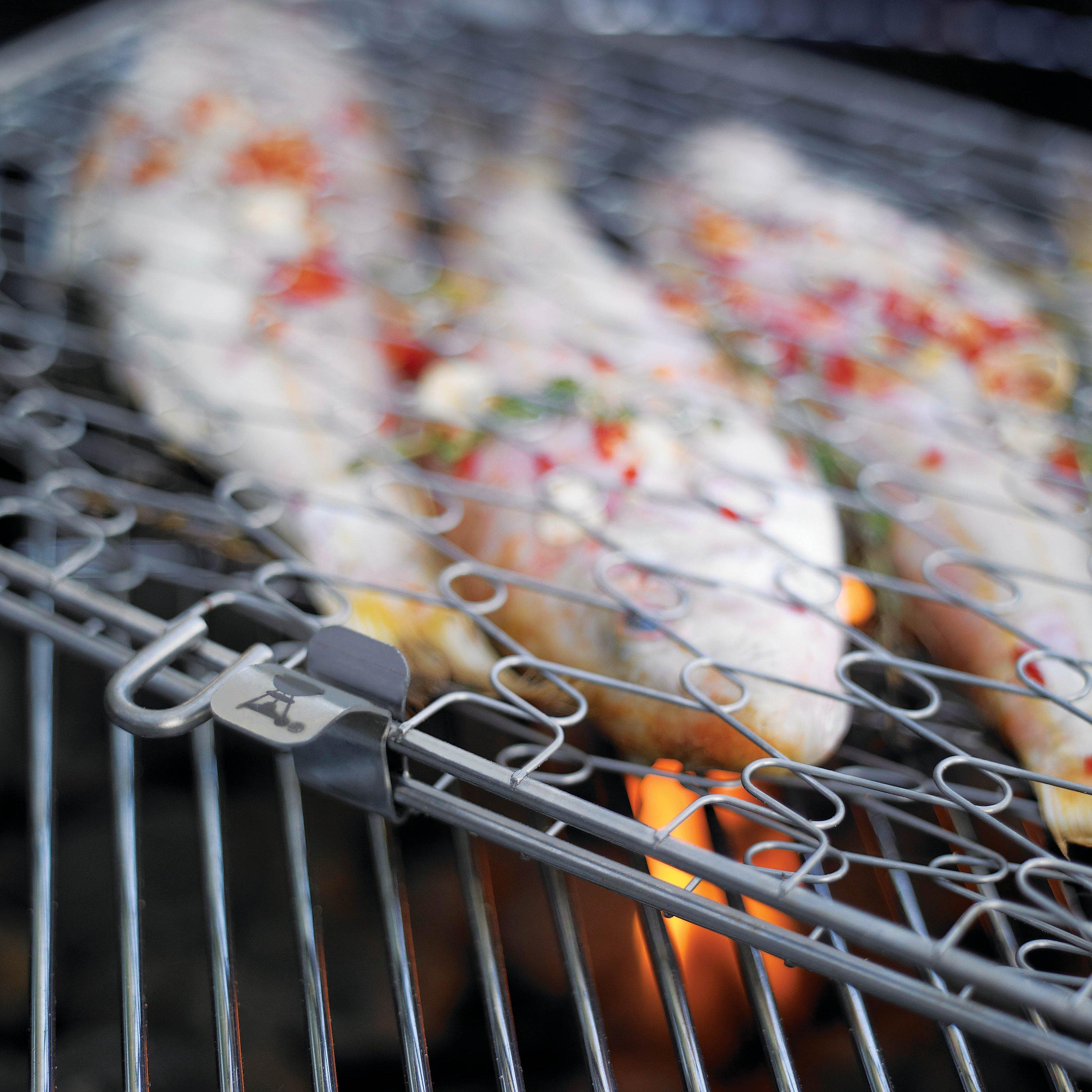 The simple side handles on this fish basket allow fish to cook the Weber way – with the lid closed. The flexible wire design adjusts to hold a variety of foods including large and small fish fillets, shrimp and scallops, brussels sprouts, baby carrots and much more.
