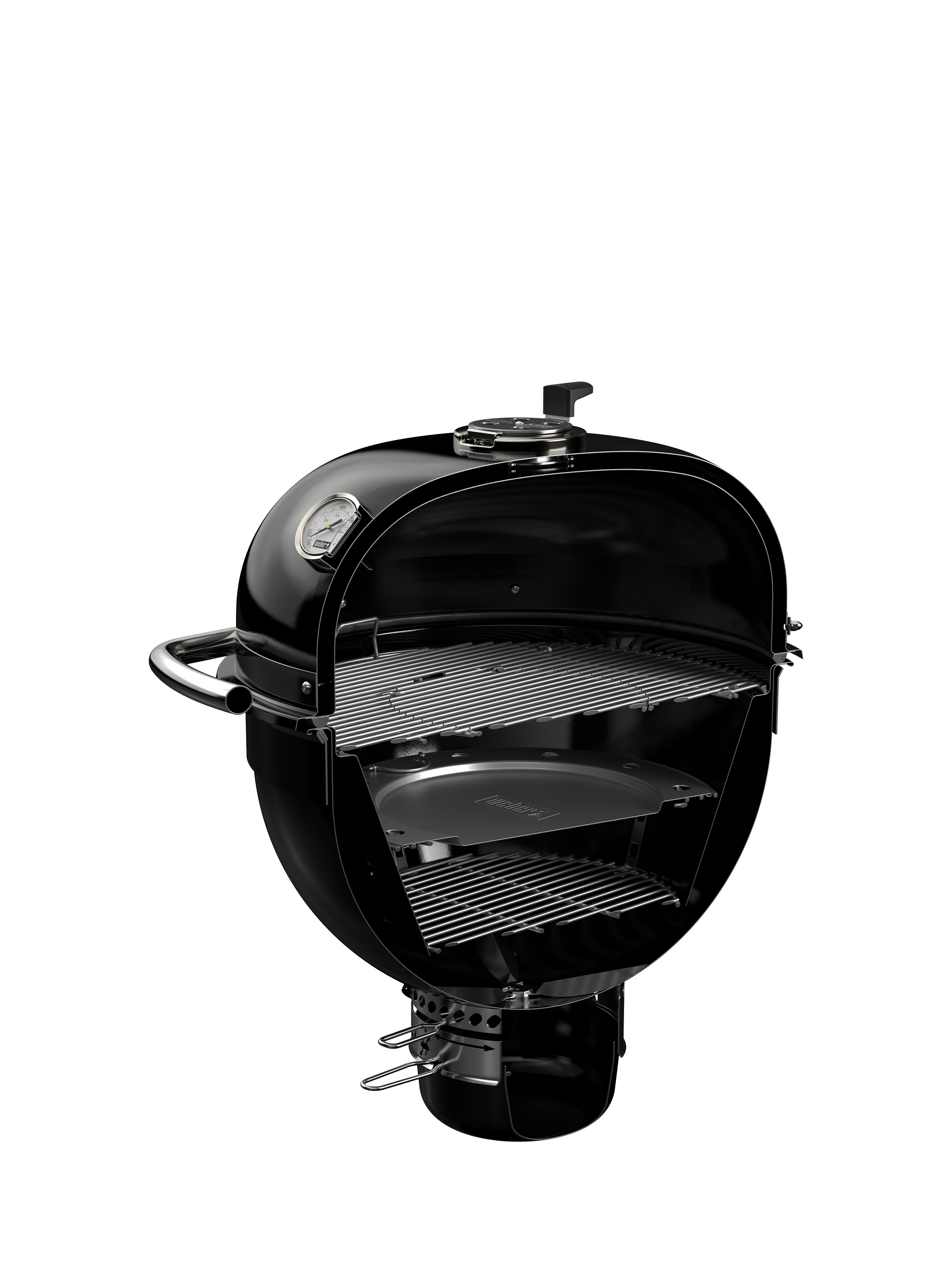 - Rapidfire lid damper boosts air flow to quickly reach high heat