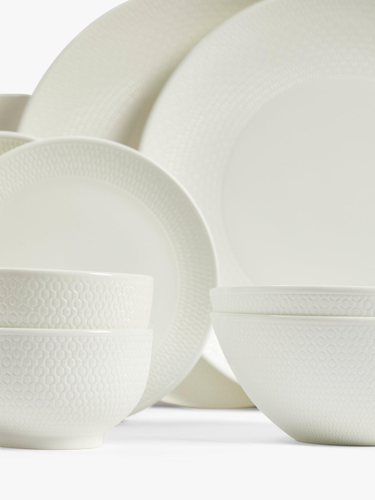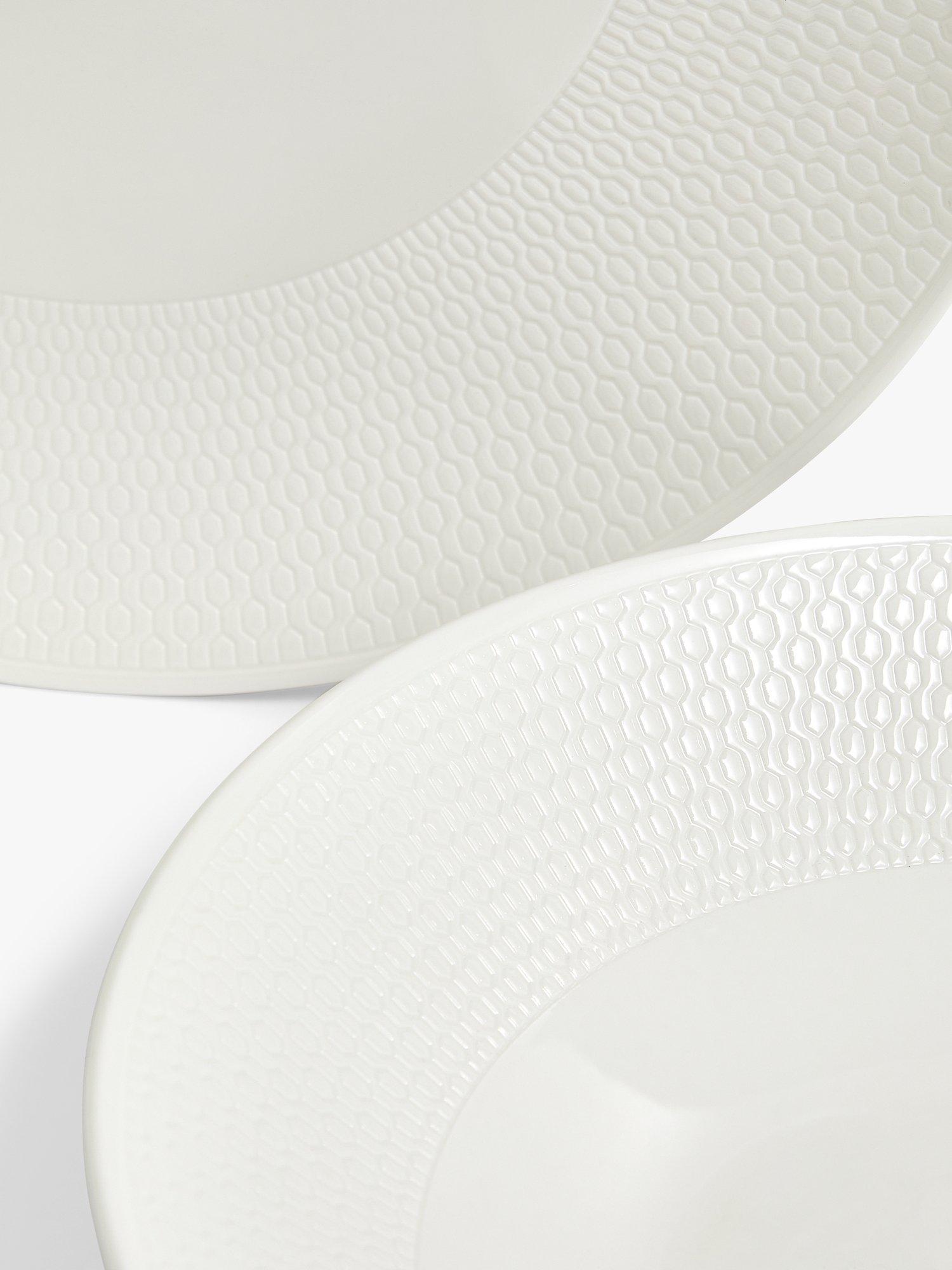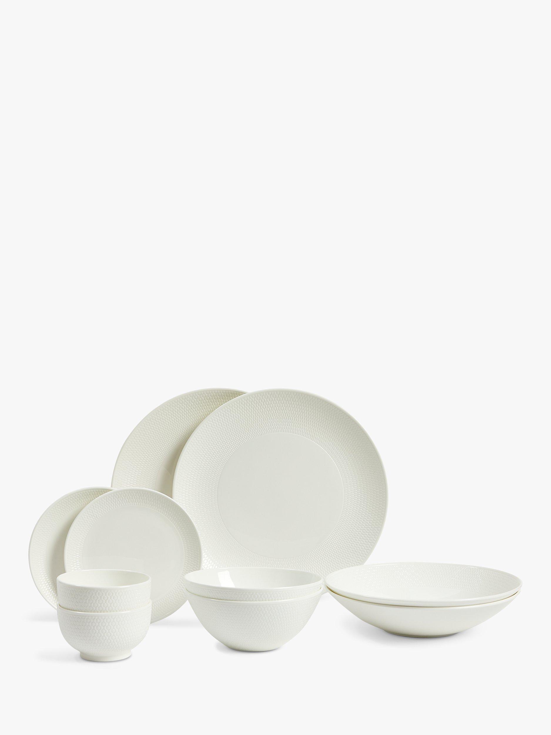10-piece dinnerware set from the Wedgwood Gio collection crafted from stylish white, fine bone china. Each piece features an Intaglio texture carefully created with the design sunk into the surface. The range is clean and contemporary and both dishwasher and microwave-safe. It can easily be mixed and layered with other Wedgwood collections to enhance your tableware.