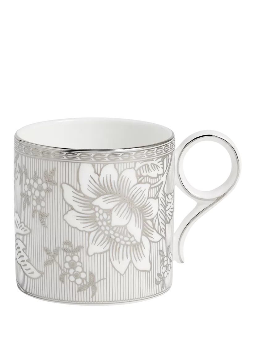 Silver Tonquin tableware features a design handpicked from the Wedgwood archives, reworked and reimagined for the contemporary world. Crafted from luxurious fine bone china, the range features intricate platinum details, adding a touch of sophistication to any table setting.
