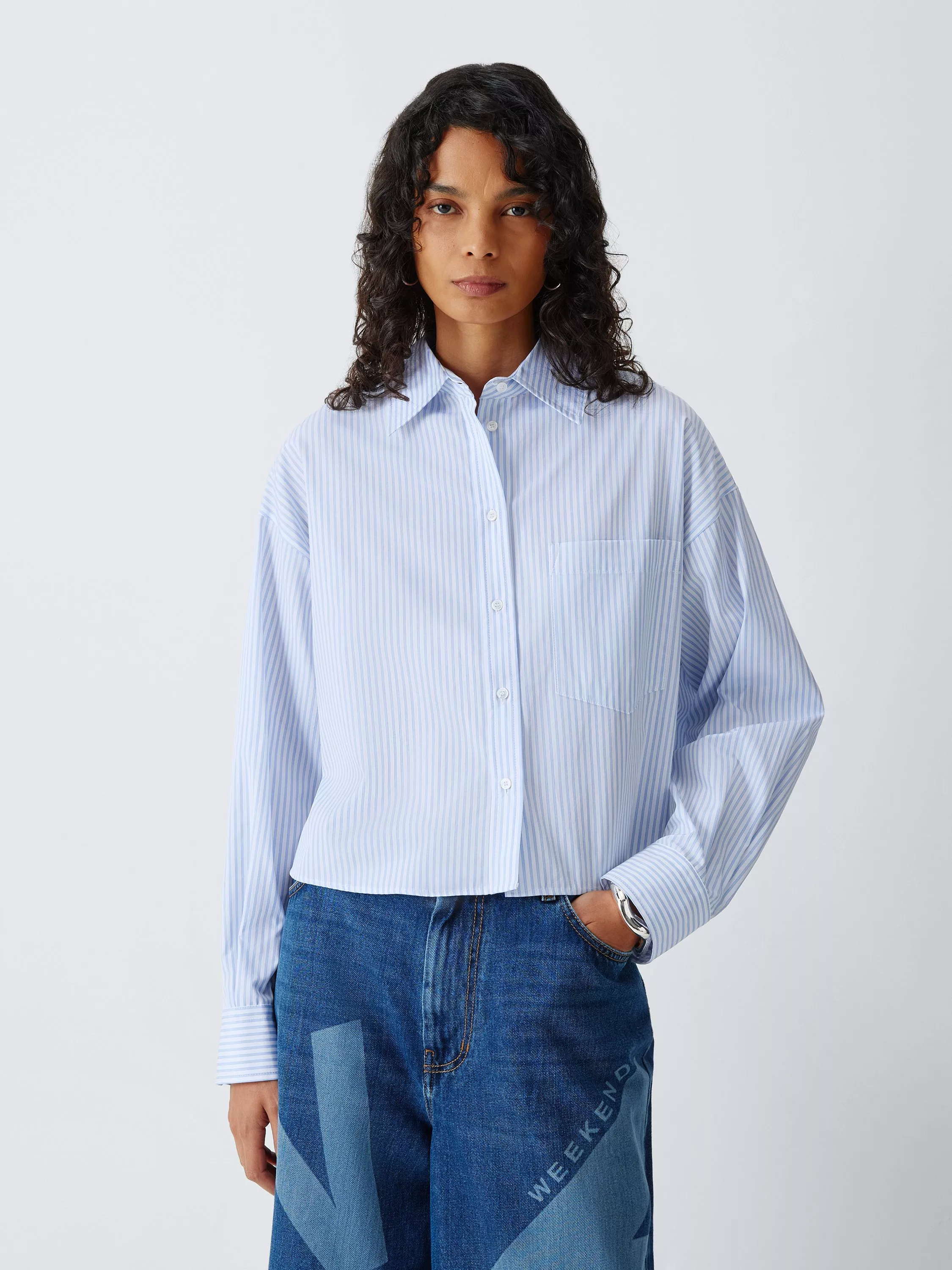 Weekend MaxMaraEden Cotton Stripe Shirt, Light Blue