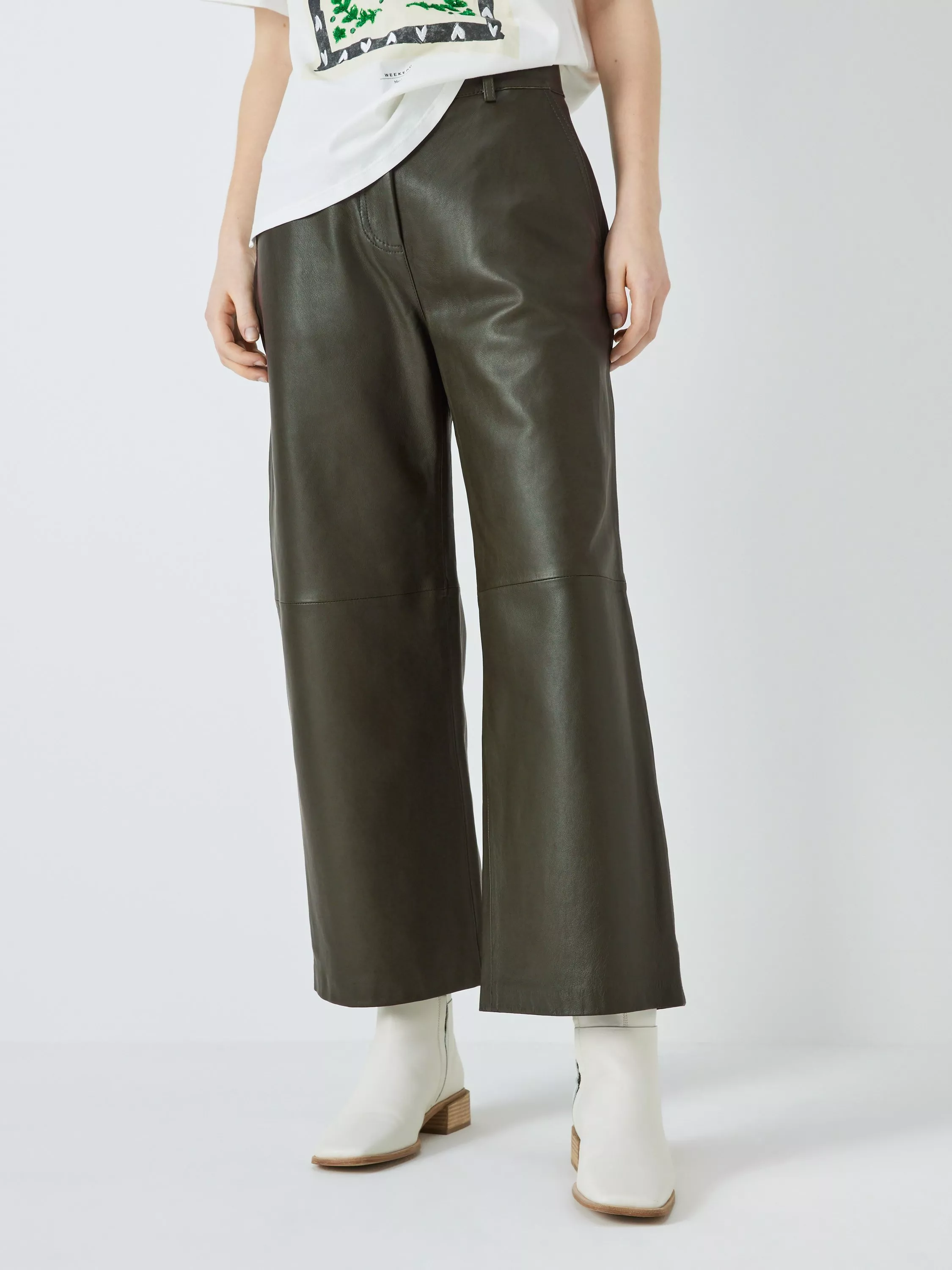 A pair of leather trousers in a retro-inspired bootcut.
