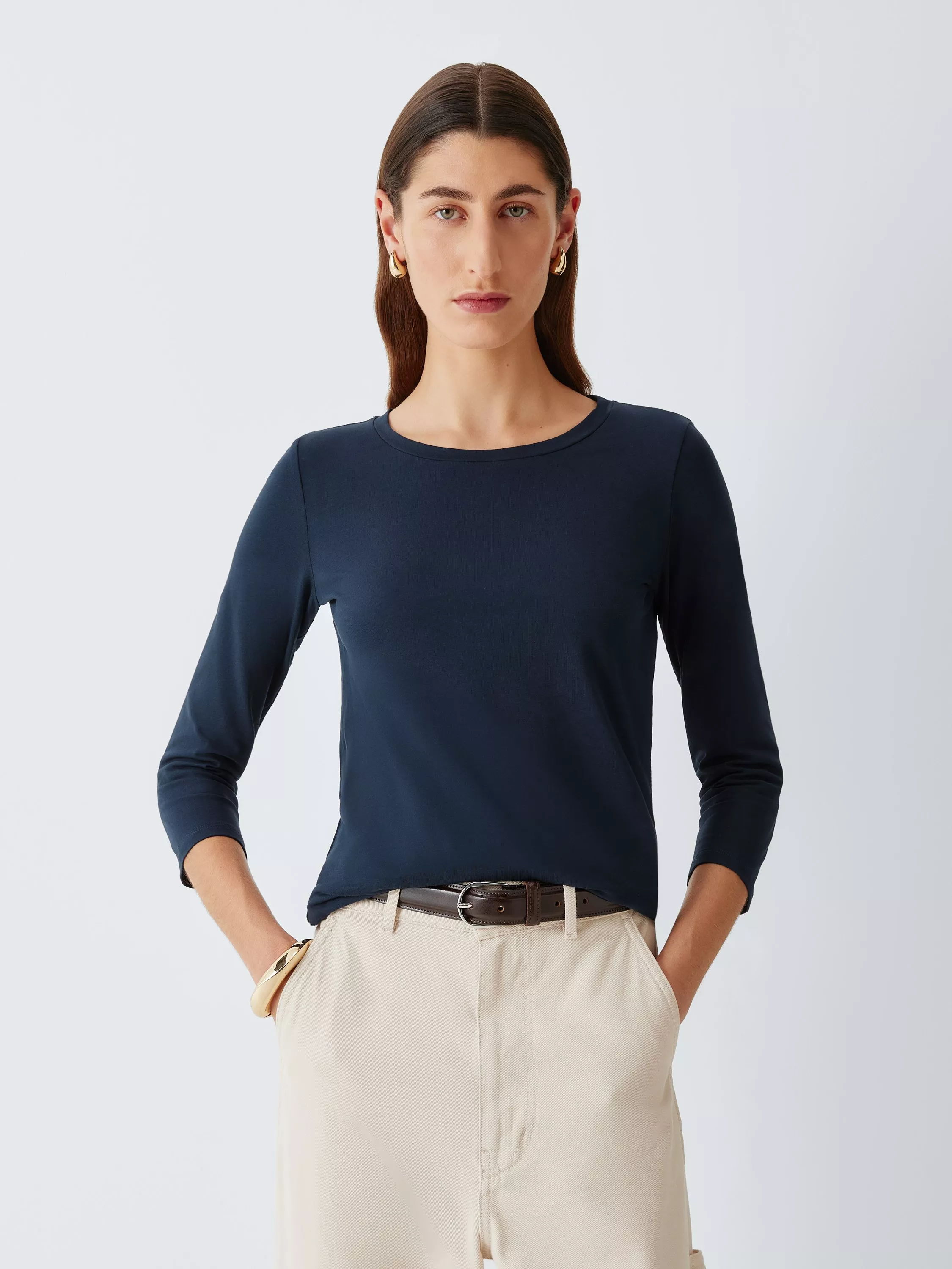 A versatile round neck top in a cotton-rich jersey fabric.