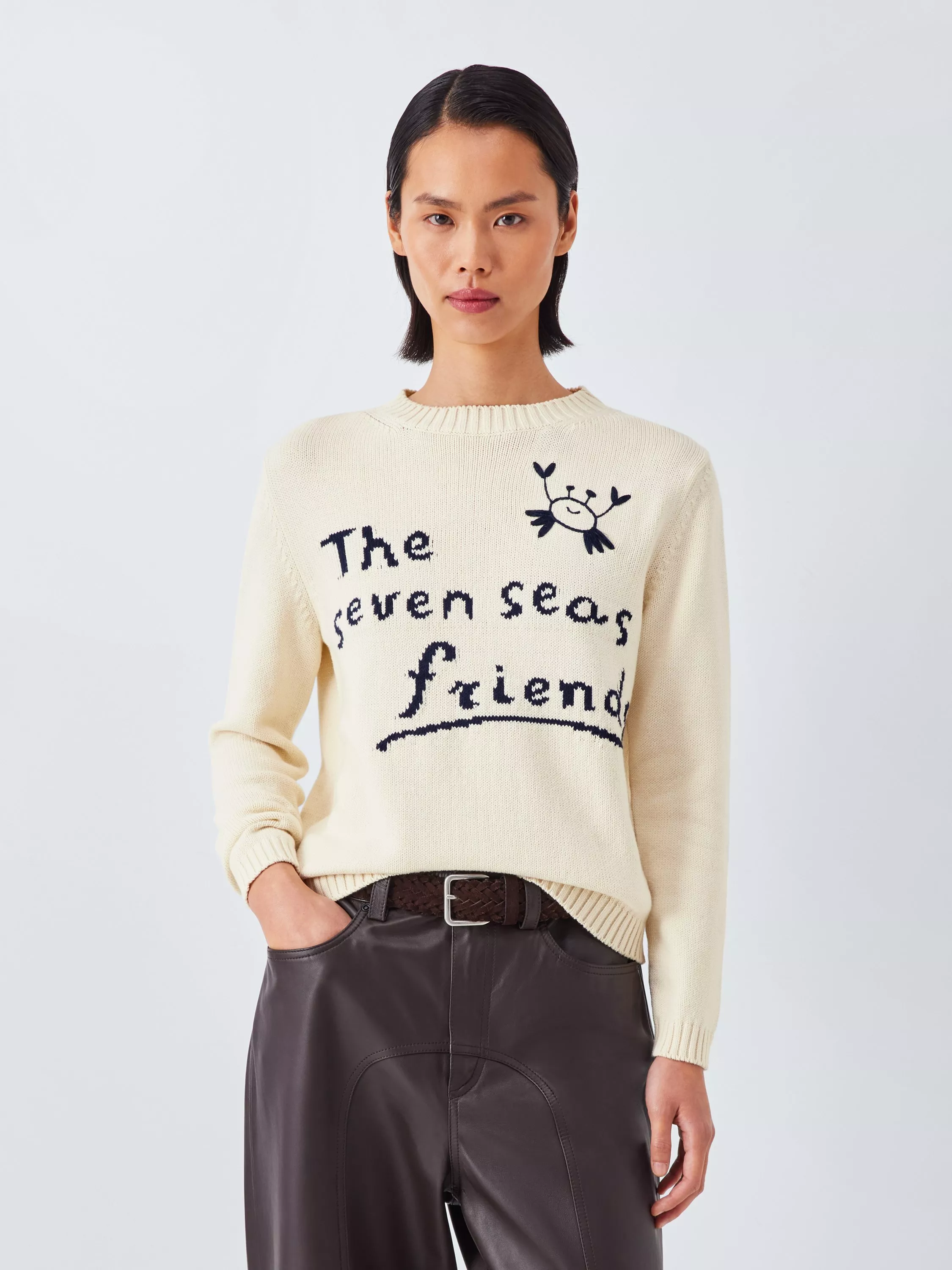 Express yourself with a fun crew neck jumper that balances comfort and wit. Its medium-weight cotton blend suits your everyday rhythm, offering a relaxed fit and long sleeves for practical appeal wherever the day takes you.