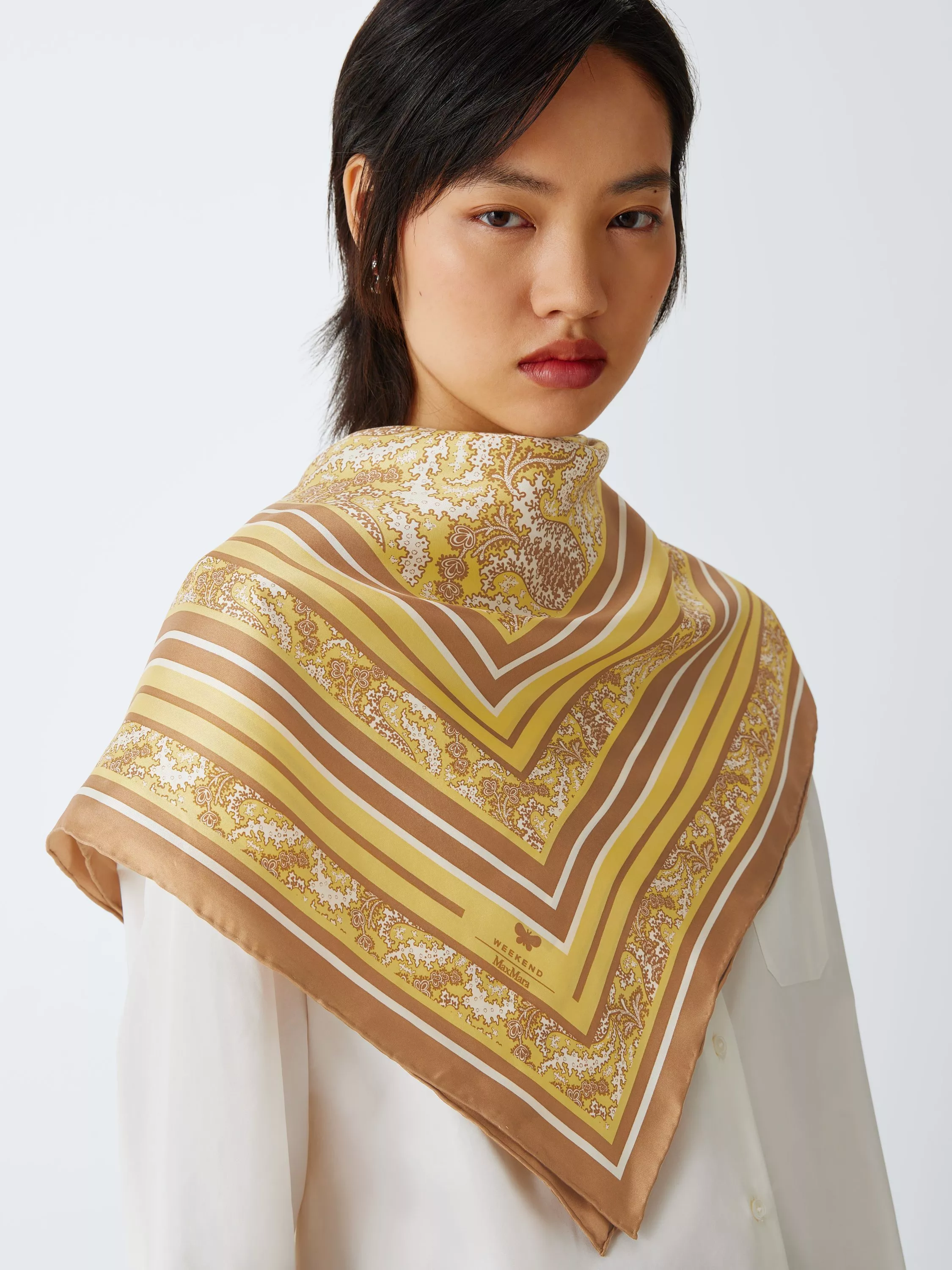 This Weekend MaxMara silk scarf brings an artful twist to any outfit with an abstract pattern that adds character.