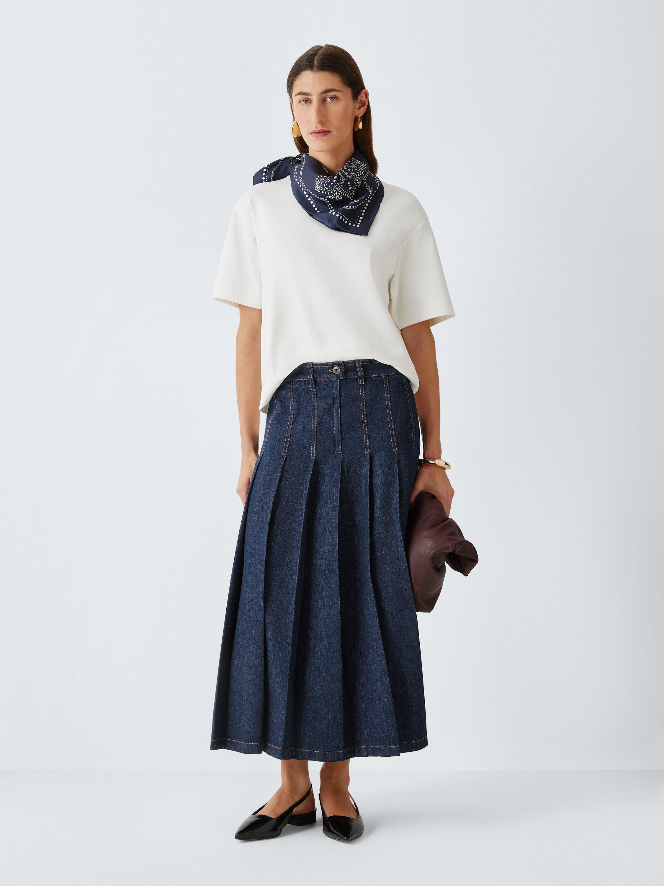 A midi hem defines this easy-wear piece by Weekend MaxMara. Balanced by a pleated A-line, it's crafted from denim with a mid rise and side zip and button fastening.