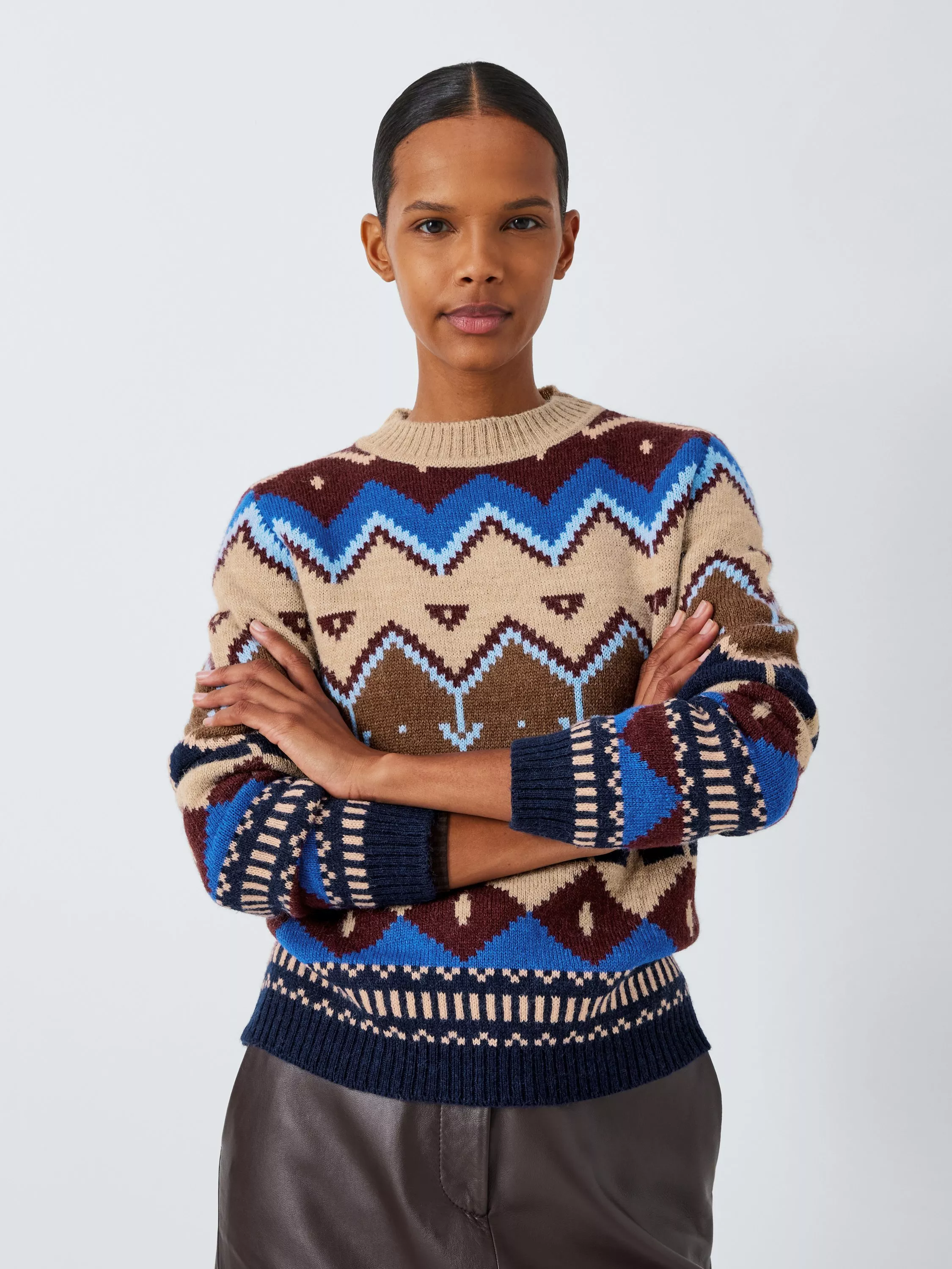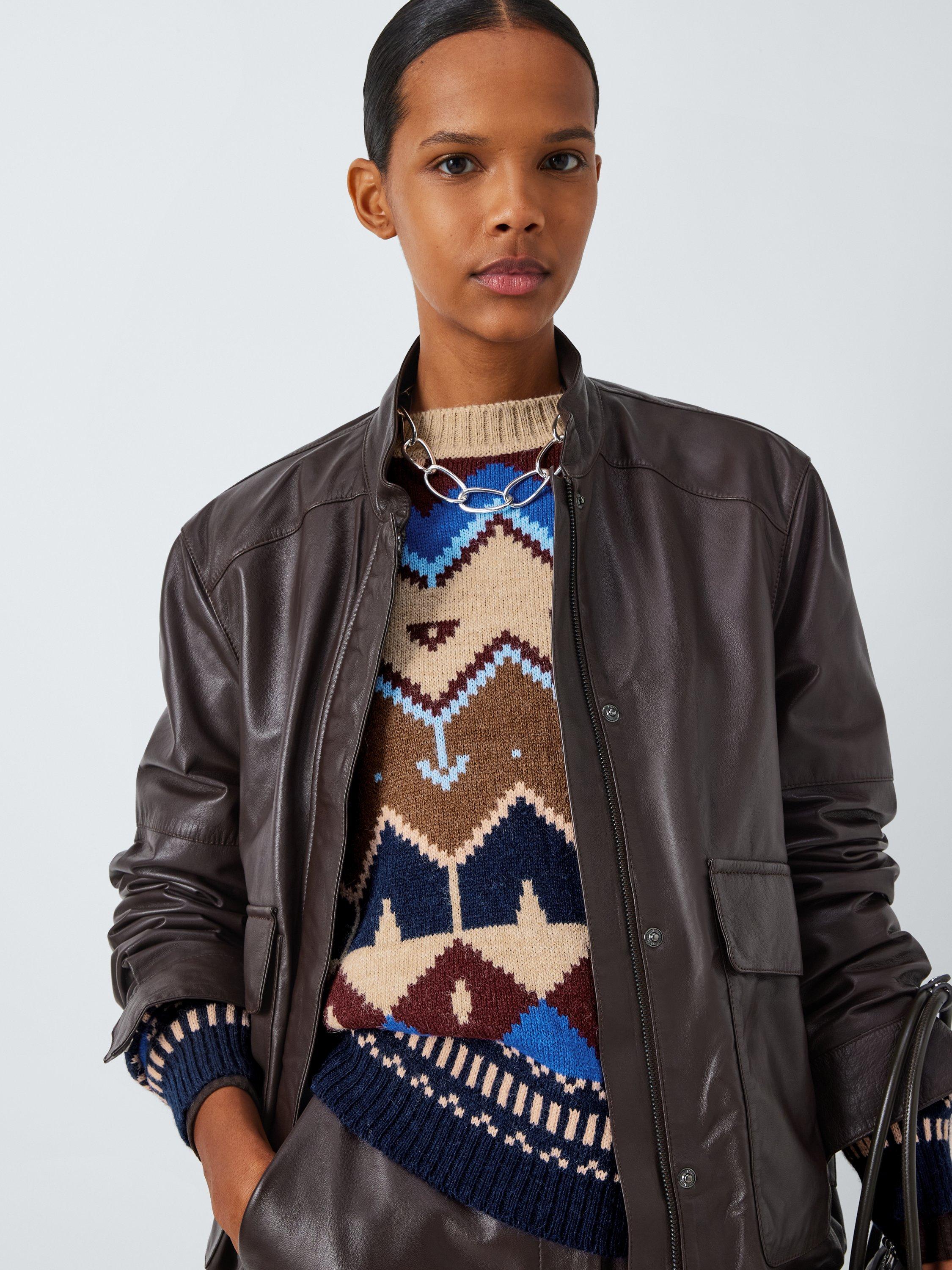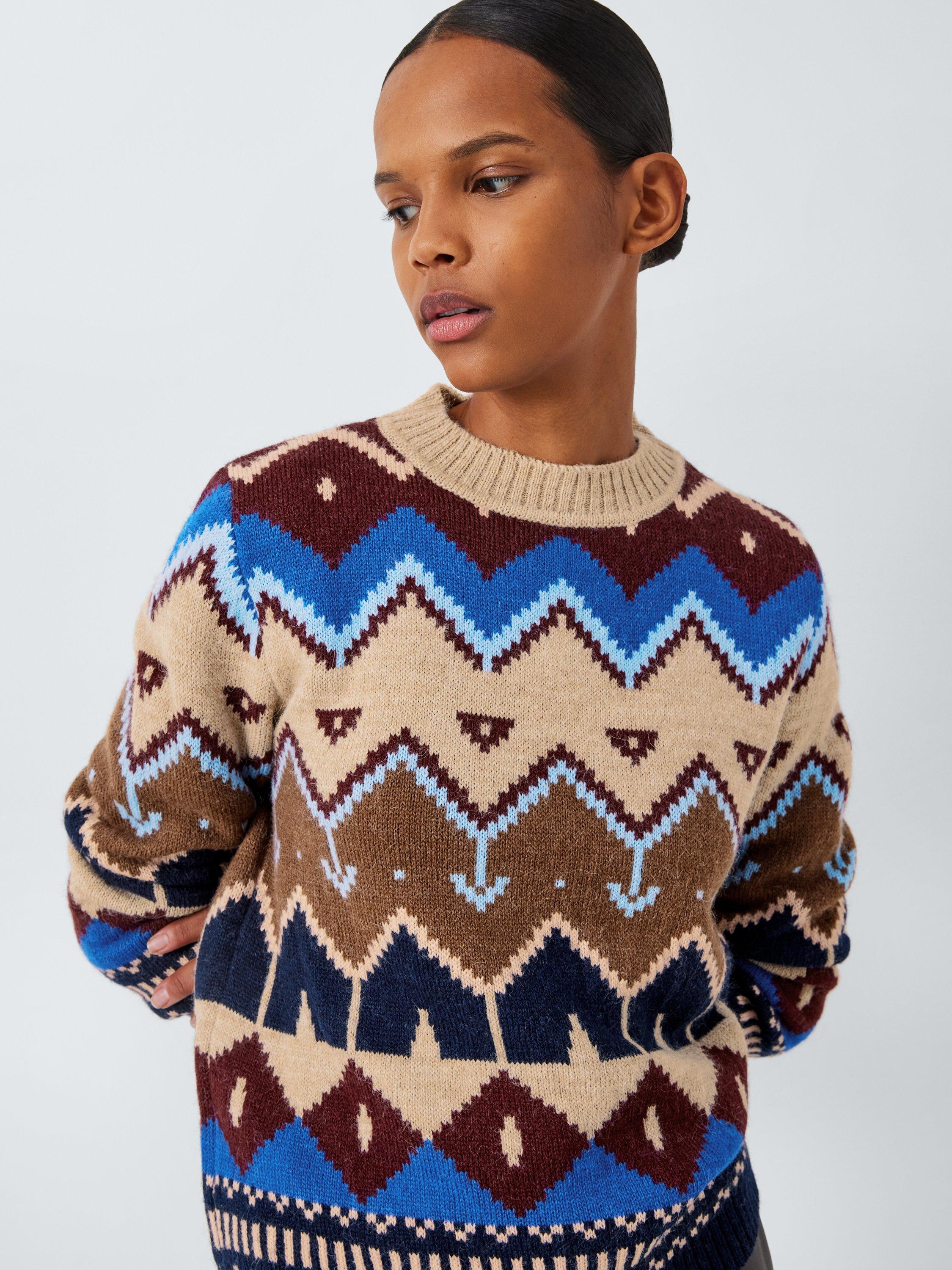 With a crew neckline for simple yet sleek style, this jumper from Weekend MaxMara boasts an abstract pattern and a wool rich composition.