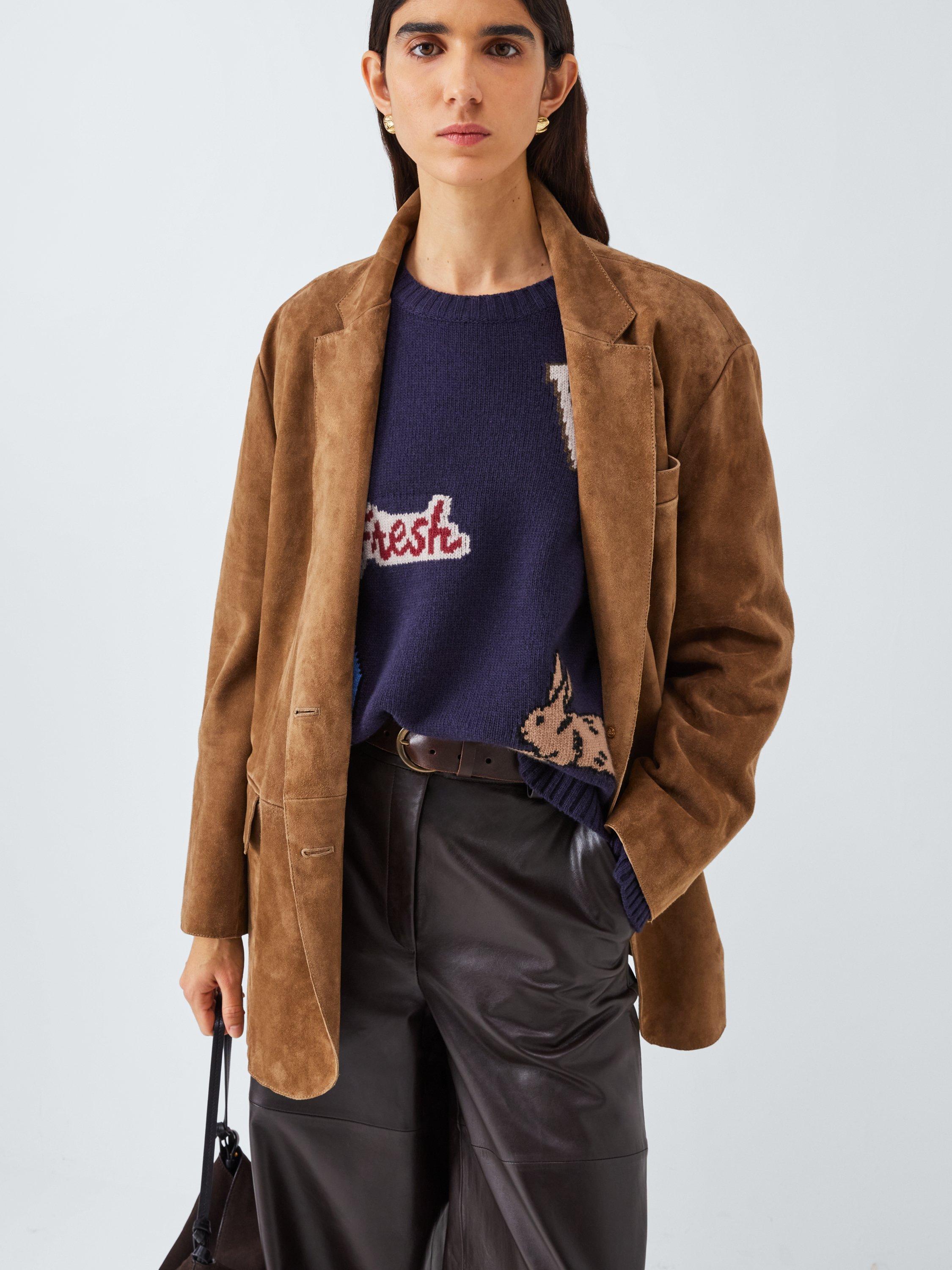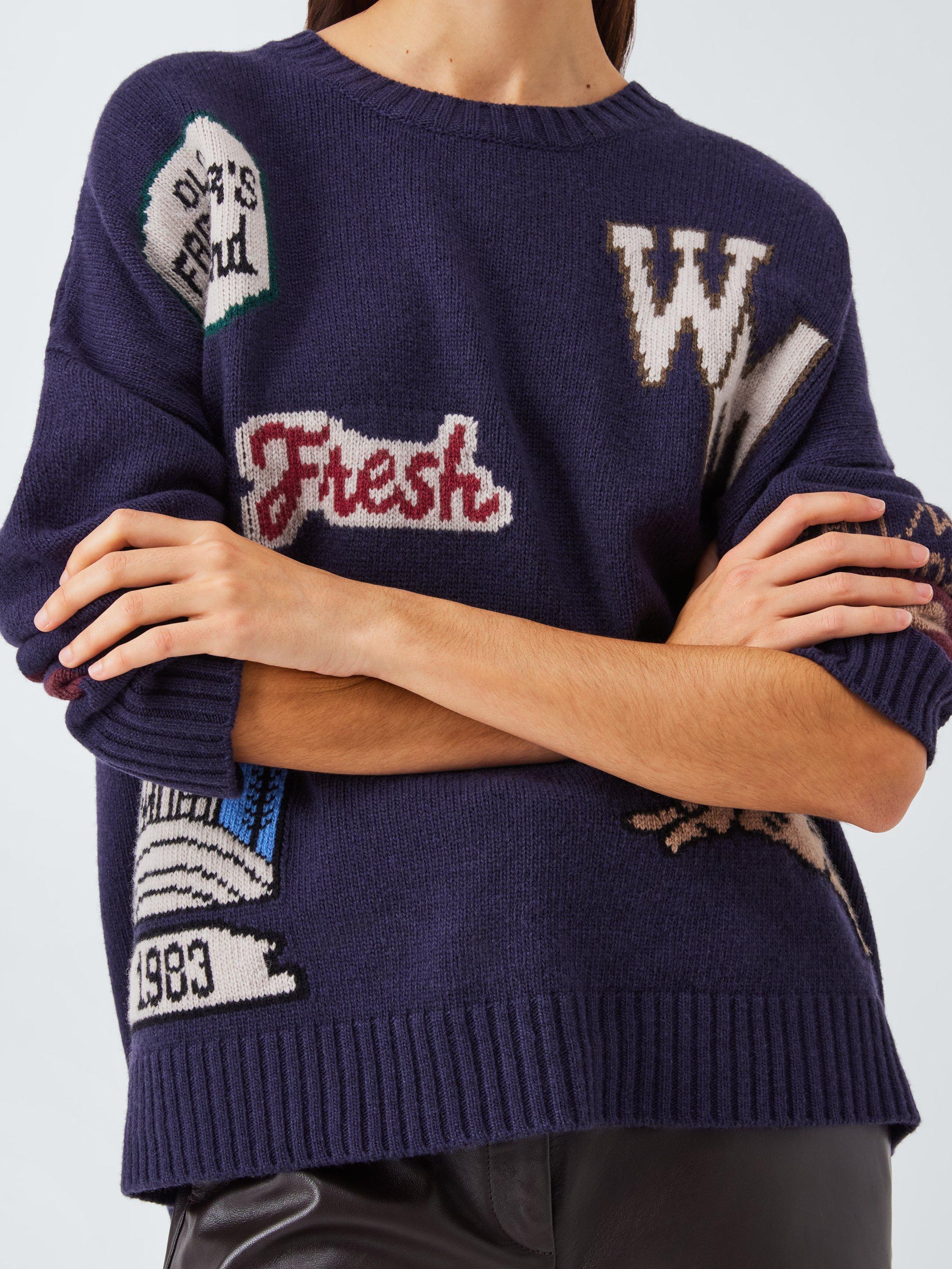 With a fuss-free round neck and long sleeves, this mid-weight graphic jumper from Weekend MaxMara is warm and cosy in pure wool.
