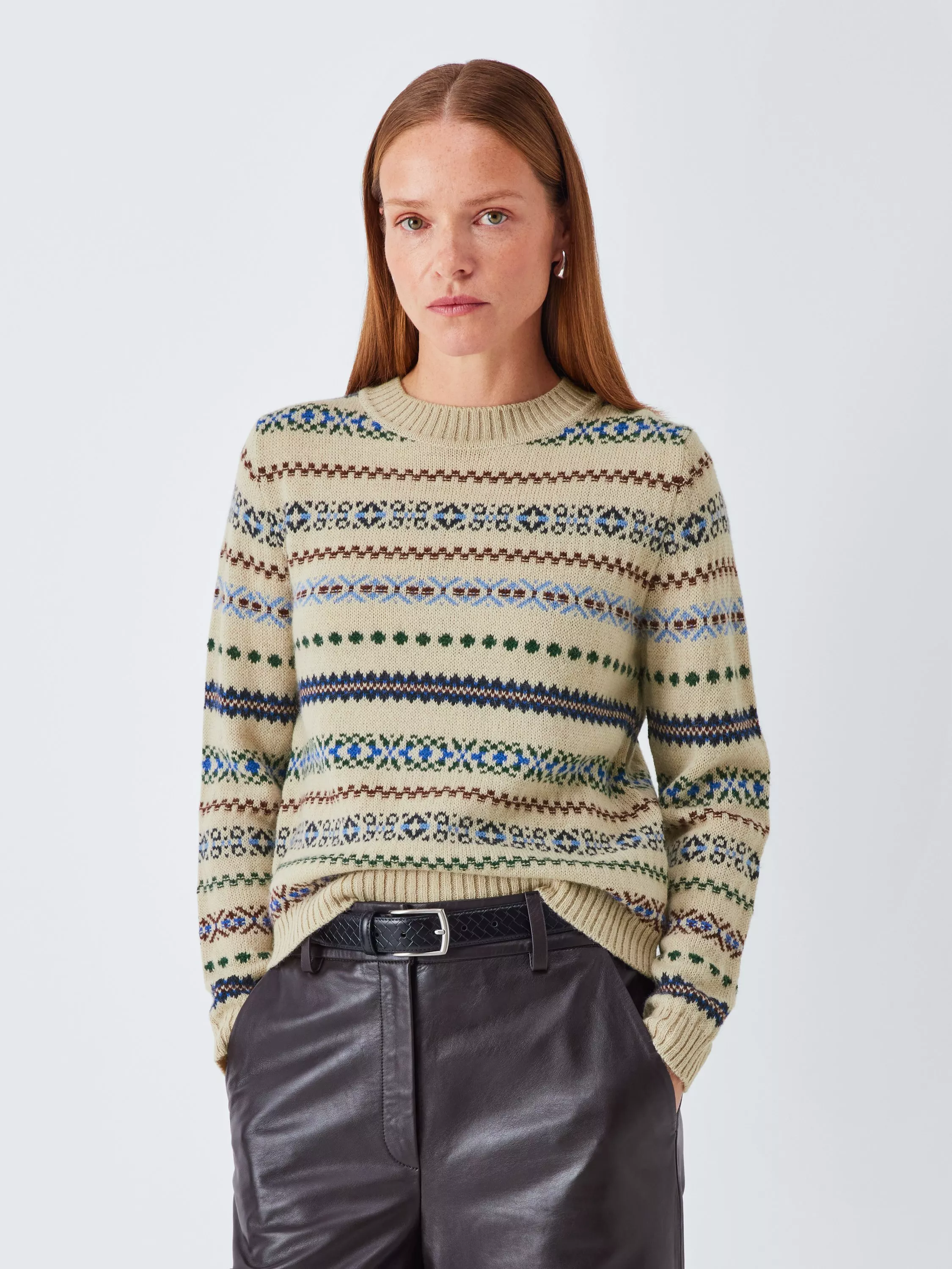 Topped with a crew neck and long sleeves, this mid-weight Fair Isle jumper from Weekend MaxMara is spun from a warming alpaca blend.