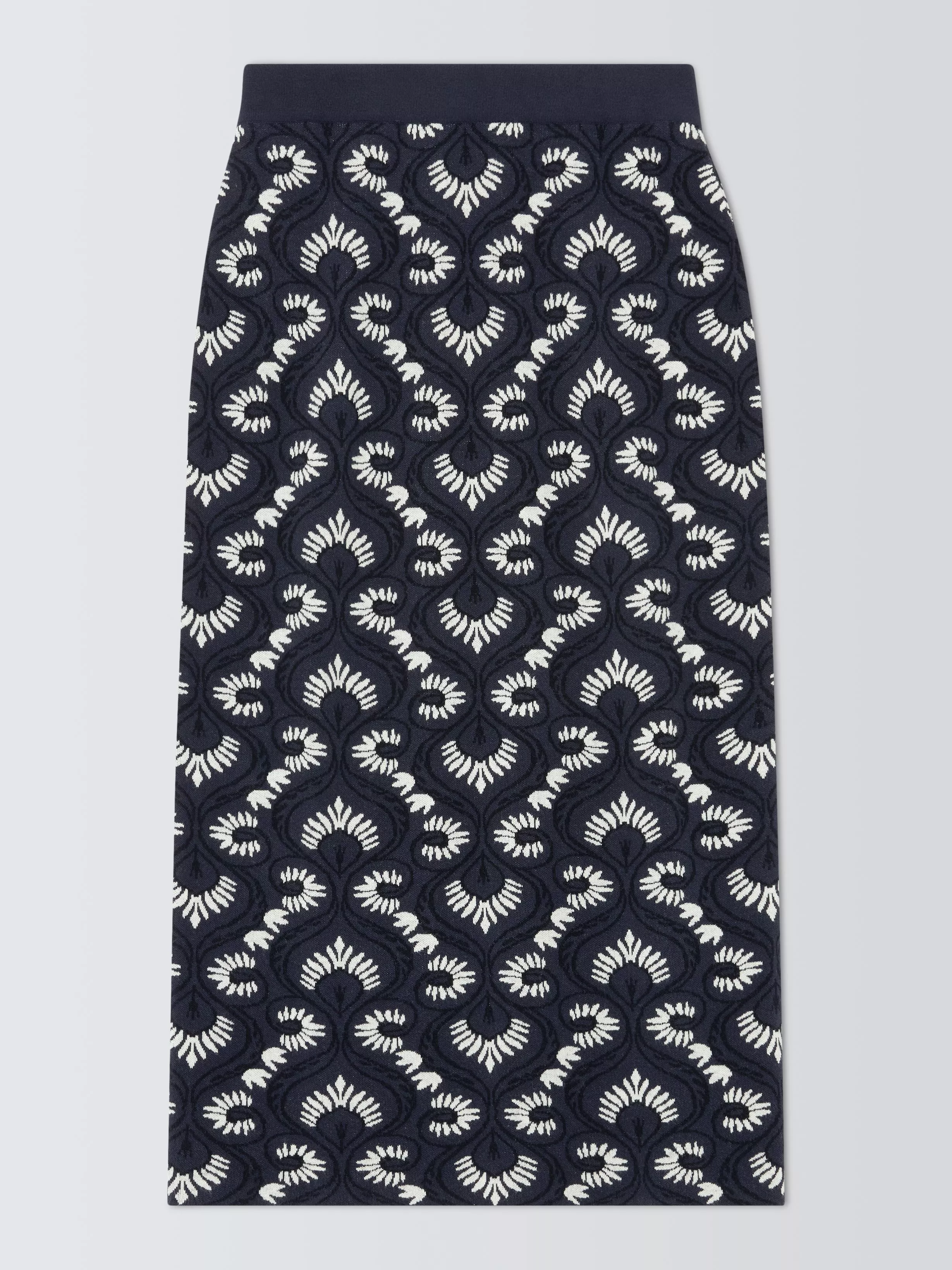 In a smart column style, this skirt comes with a stunning geometric-inspired floral pattern.