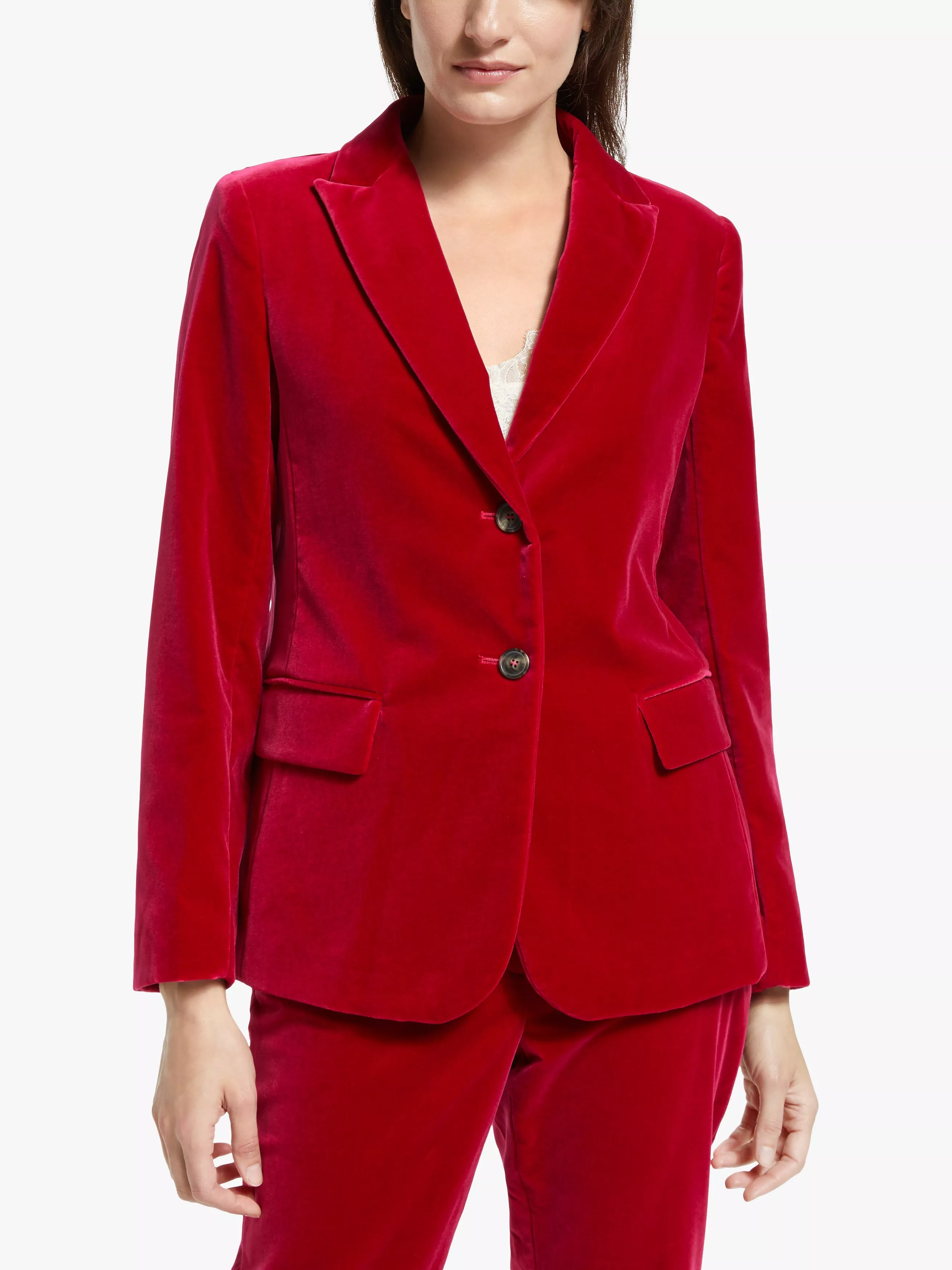 This jacket by Weekend Max Mara will add polish and new texture to tailoring. It's made from stretch cotton velvet with a soft lining and has a simple single breasted design with a semi-fitted cut for a streamline finish. Topped with peak lapels and flap front pockets, layer over a cosy knit and jeans for the perfect smart-casual blend.