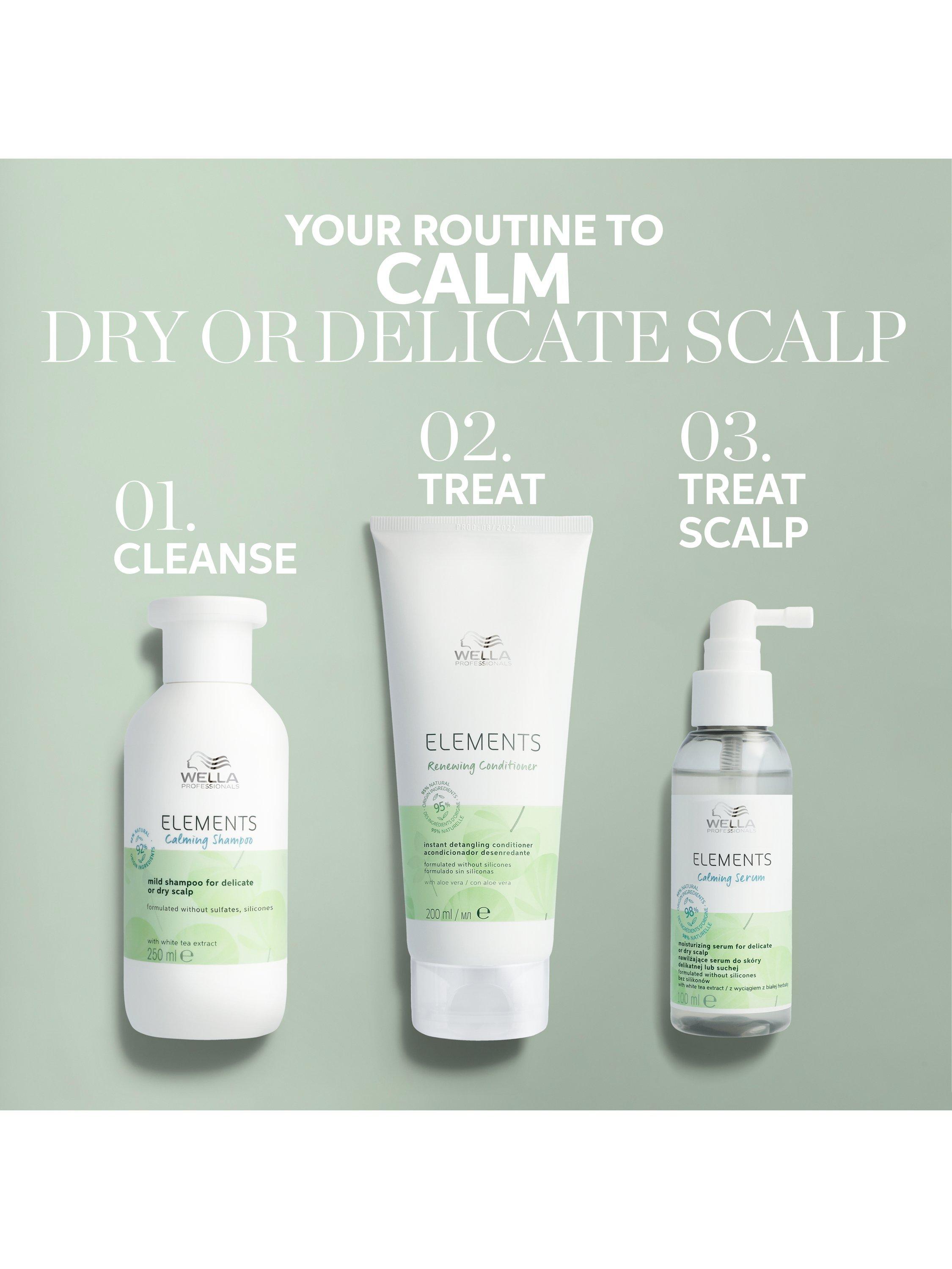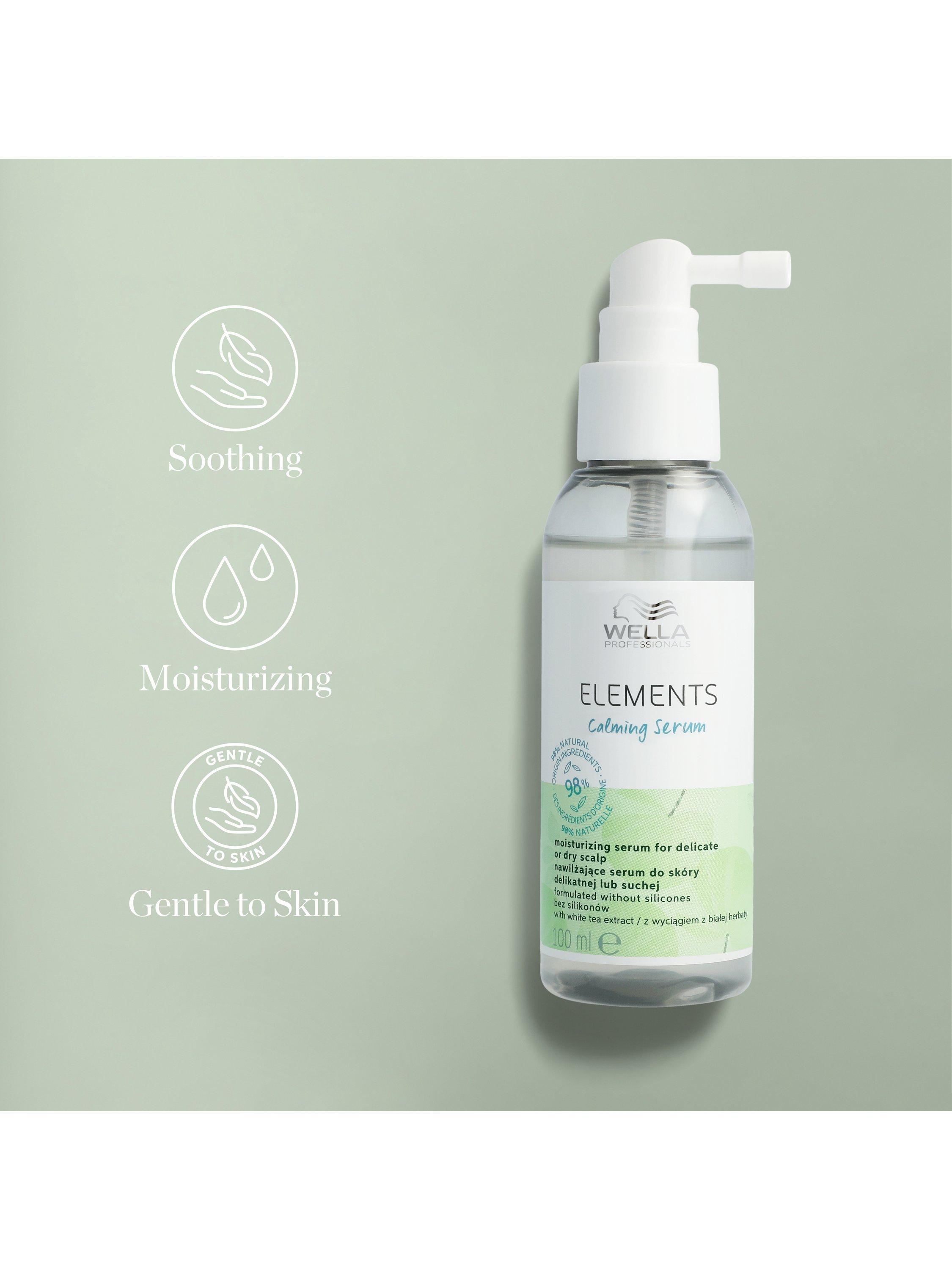 Soothe your hair and scalp with Wella Professionals Elements Calming Serum, designed with natural origin ingredients to gently restore scalp comfort. This hair serum is enriched with White Tea Extract with antioxidant and soothing properties - with Pro-Vitamin B5 to soothe dry and delicate scalps and Vegetable Glycerine to provide a moisturised feel. This calming serum is formulated without silicones for gentle hair care.