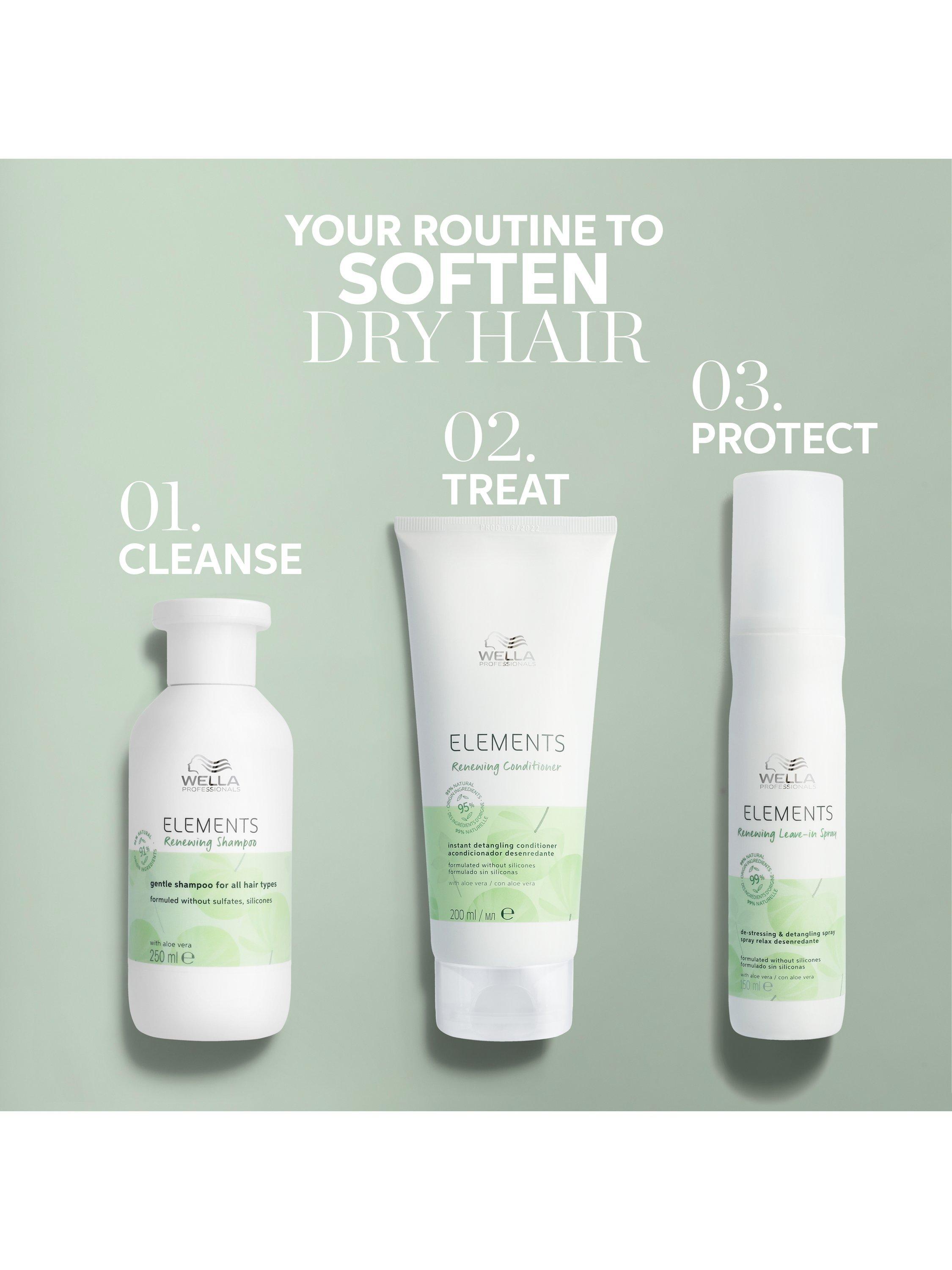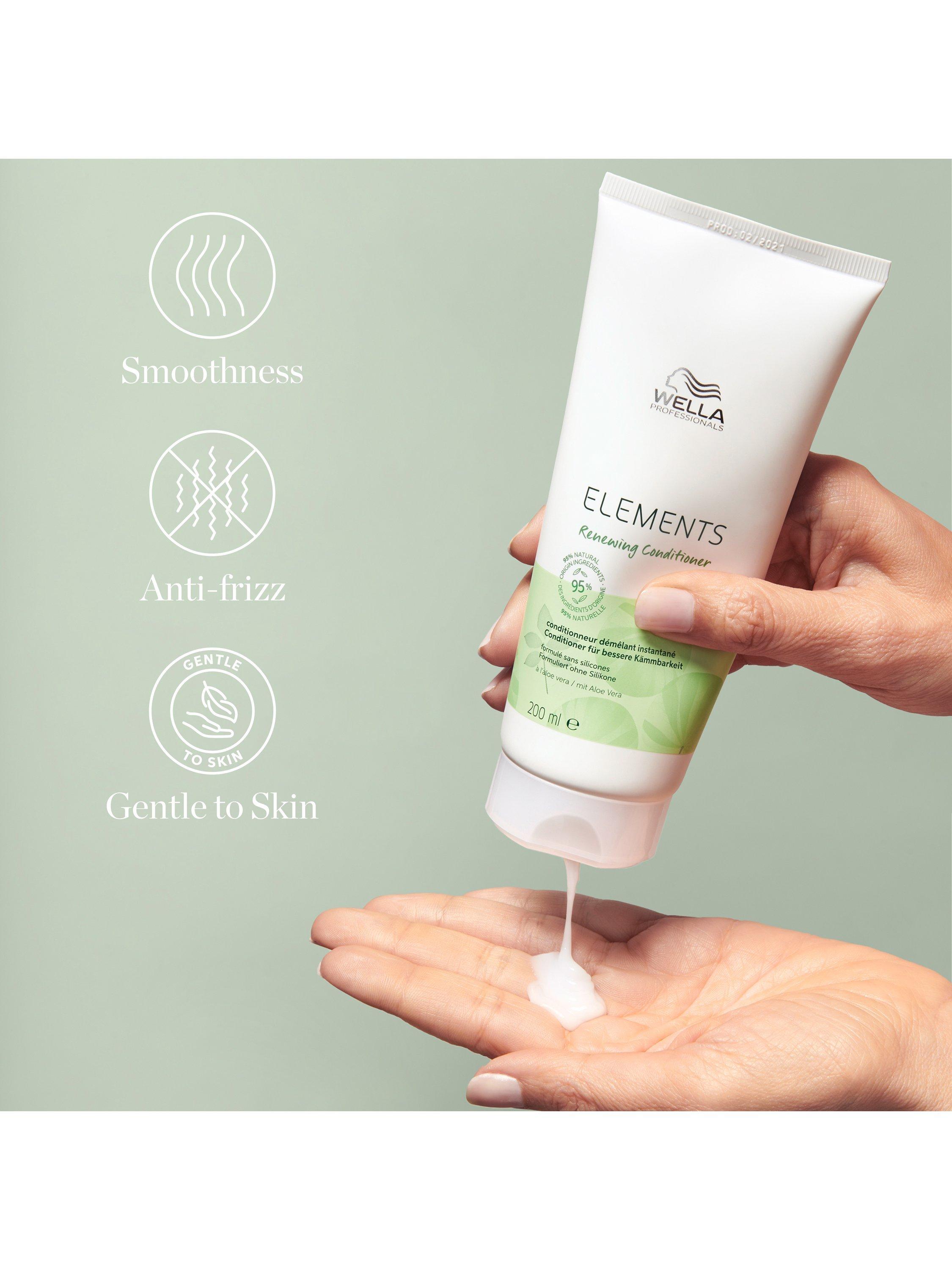 Developed with natural origin ingredients, Wella Professionals Elements Renewing Conditioner with anti-frizz properties creates a smooth finish without irritating sensitive skin. Enriched with gentle Aloe Vera and Vitamin E to protect hair from free radical stress and damage, with Olive Essence to create a smooth, shiny finish. This conditioner is formulated without silicones, making it suitable for sensitive skin and scalps.