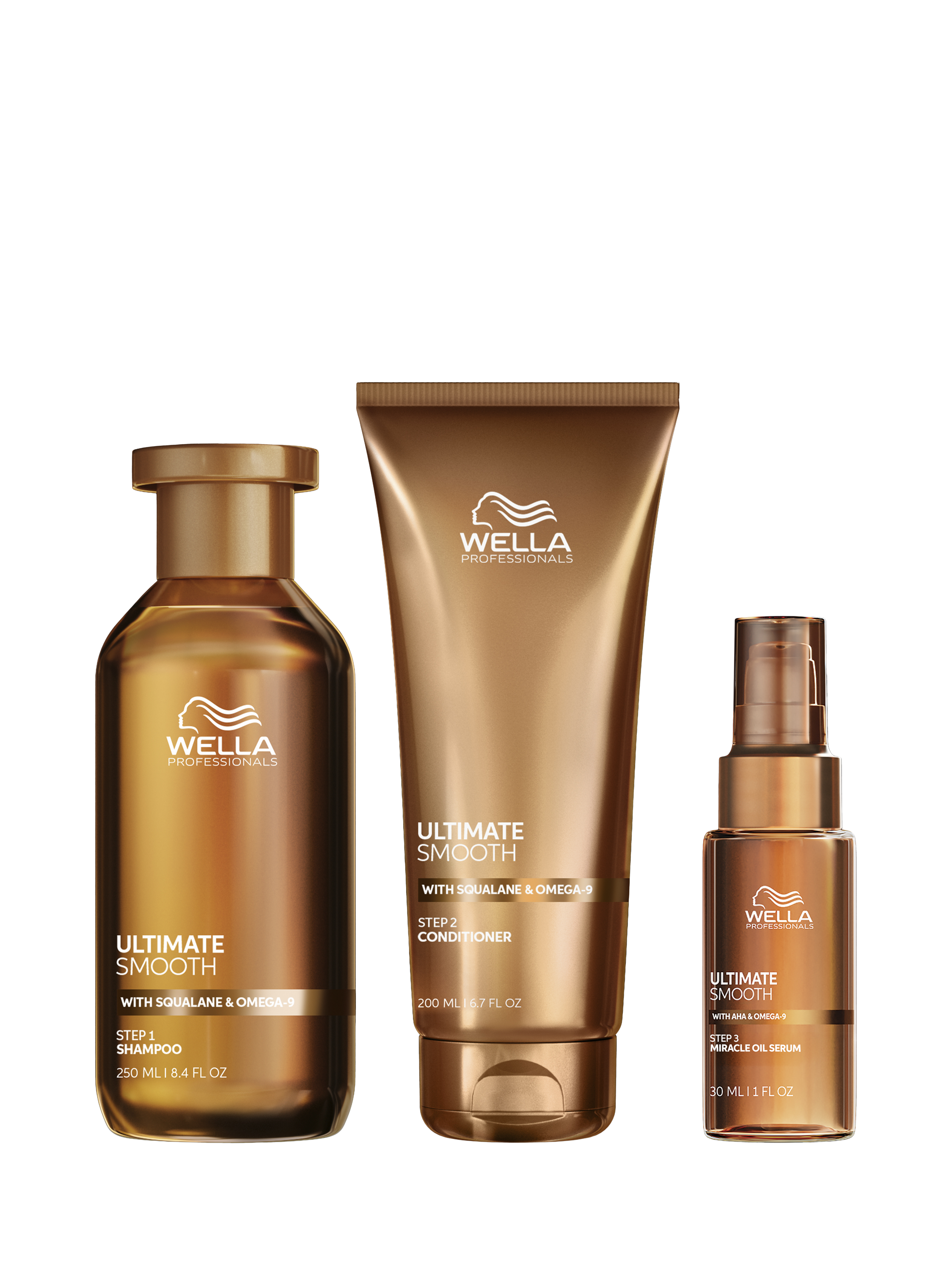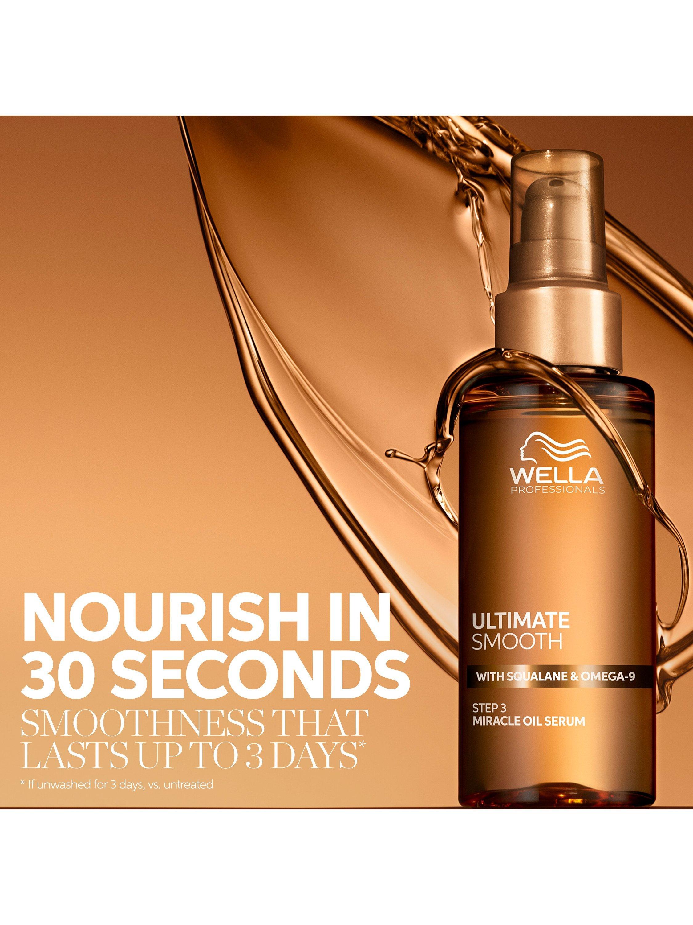 This luxurious Ultimate Smooth 3-step haircare ritual is a game-changer for dry, dull, frizzy hair. Designed to smooth and nourish hair from the inside and out with instant and long-lasting performance. Formulated with a patented technology that combines the power of squalane and omega-9. The hero treatment, Miracle Oil Serum, nourishes hair in 30 seconds for smoothness that lasts up to three days.*