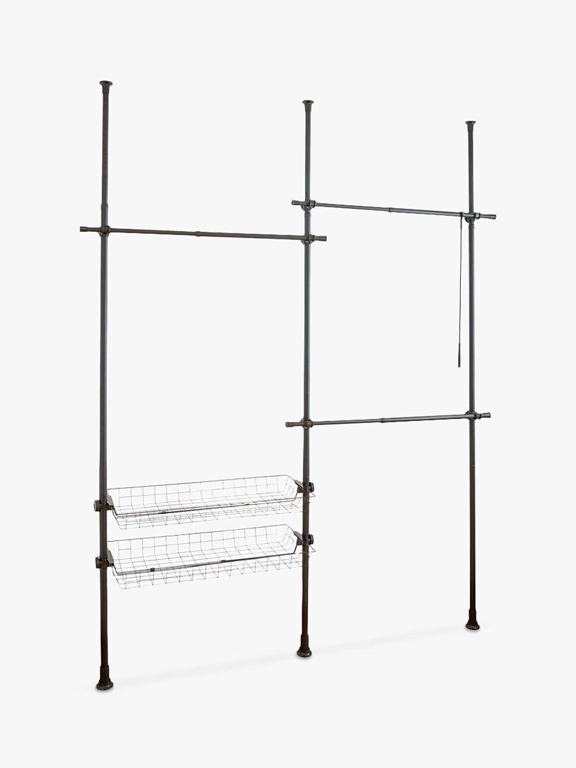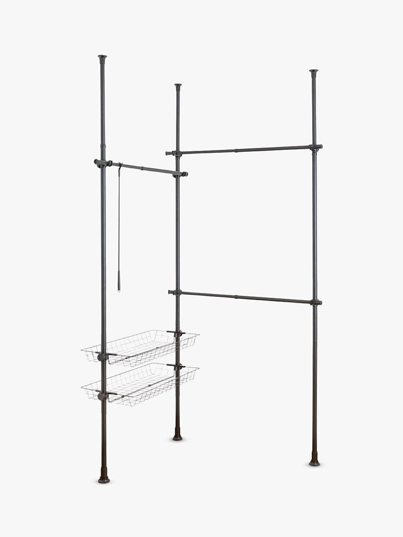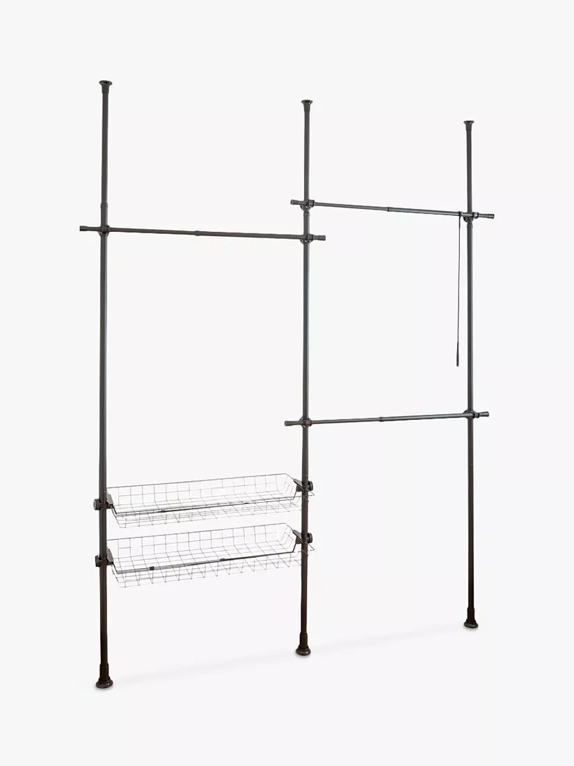 Hercules can be extended in height from 165-300cm and in width from 164-215cm to offer ample space for your clothing. With its three clothes rails, clothes hooks and two storage baskets, it can also be adapted to fit just about any space. It's also extendable by adding further rails for more space.