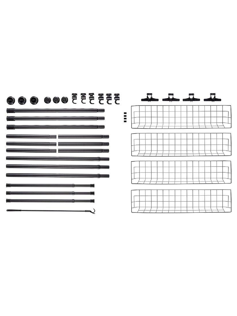 Strong and sturdy, each crossbar has a load-bearing capacity of 20kg and the baskets 15kg each. An enclosed clothes hook enables you to quickly and easily keep clothing that hangs higher within reach.