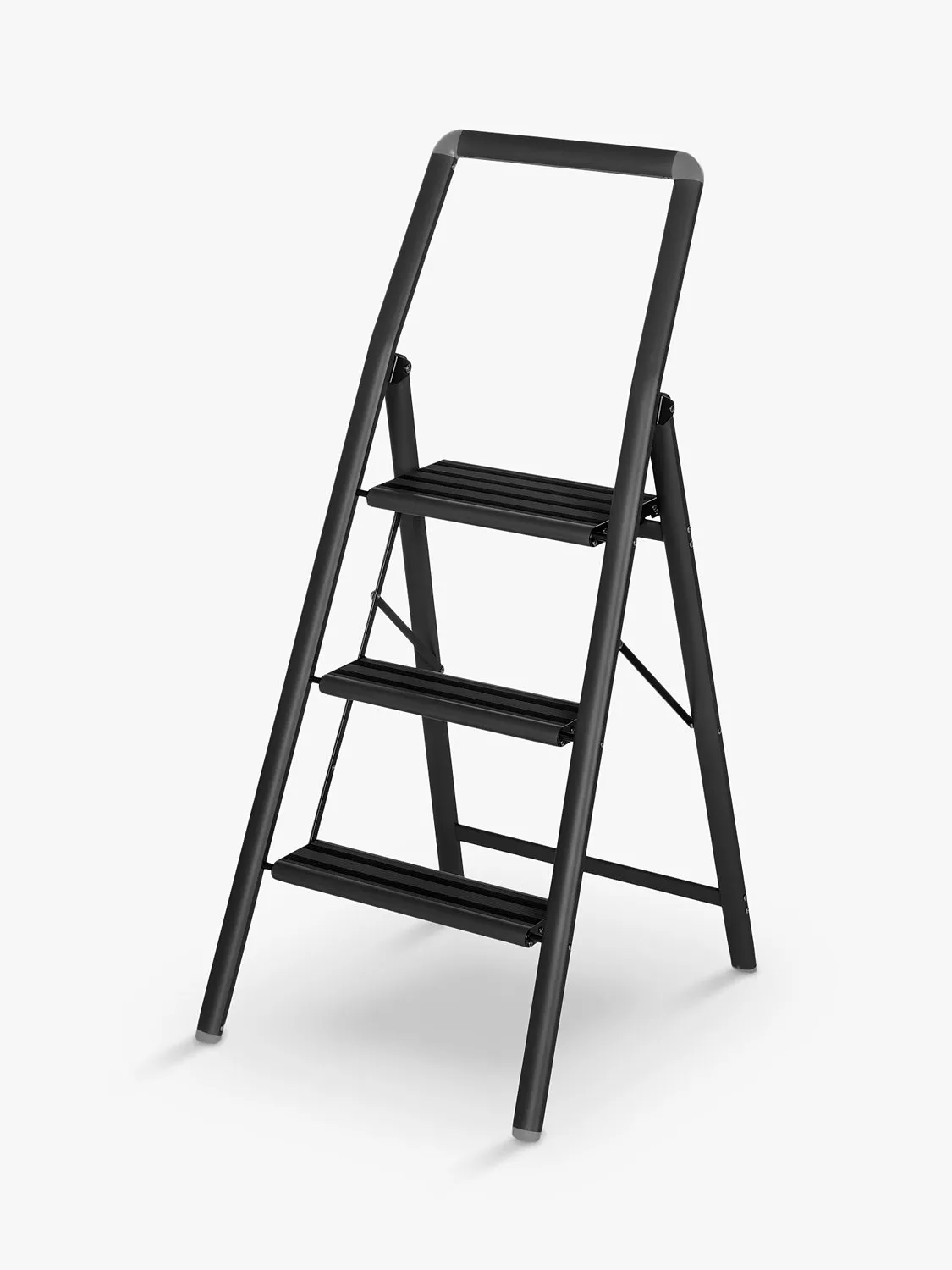 This folding step ladder ensures safe standing for all tasks involving working at a height. Whether hanging up curtains, cleaning windows or working in the garden, the innovative ladder provides optimum stability with a height of 66cm - no more unsafe balancing or wobbling.
