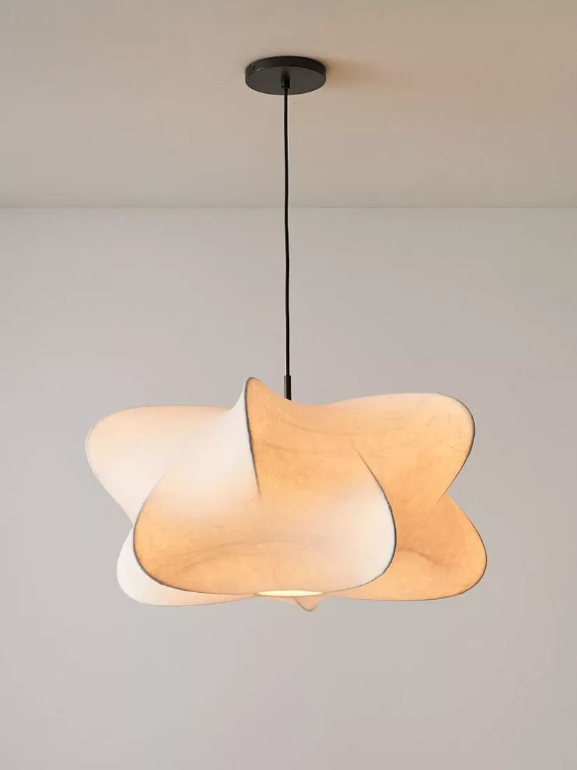 Inspired by a tightly spun cocoon, the Cirrus Pendant Light is shaped by carefully spraying thin yet highly durable strands of polymer around its frame until fully formed. Each cloud-like piece has subtly unique veining and radiates a warm glow from its white shade.