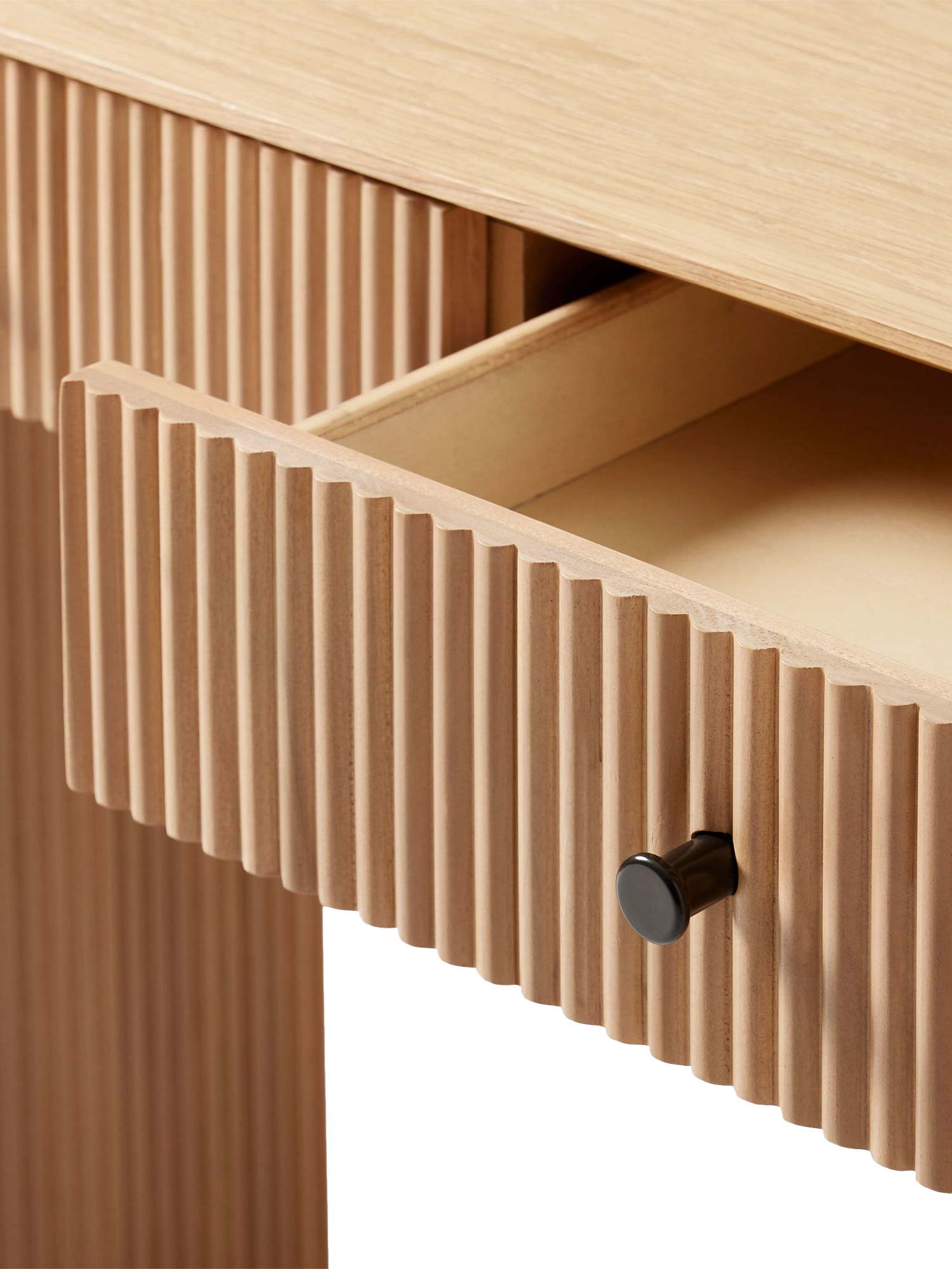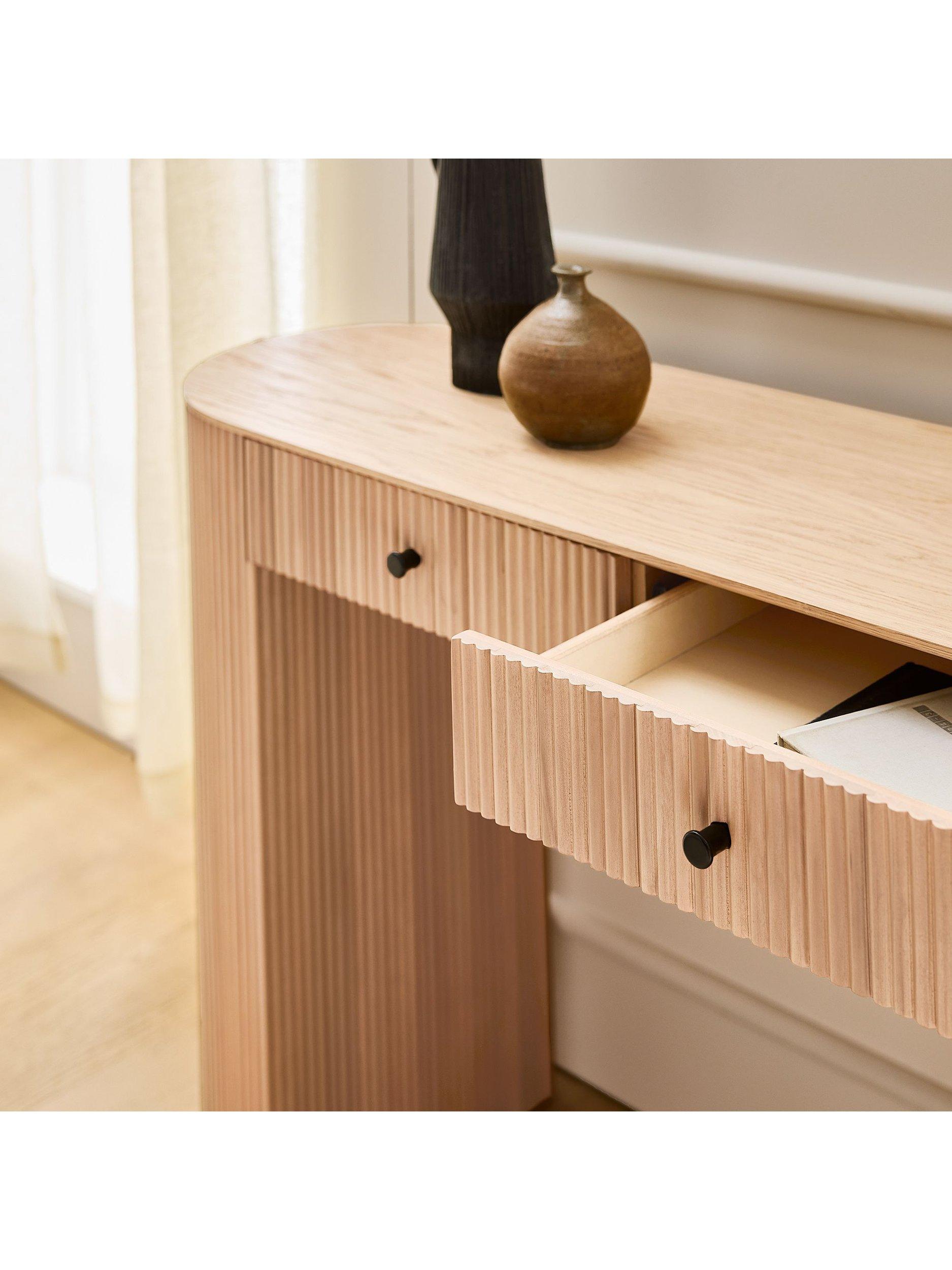 West Elm paired smooth oak with fluted wood to elevate this modern design. With a smooth oak veneer top contrasted with a textured base, it's made from durable, FSC®-certified wood.