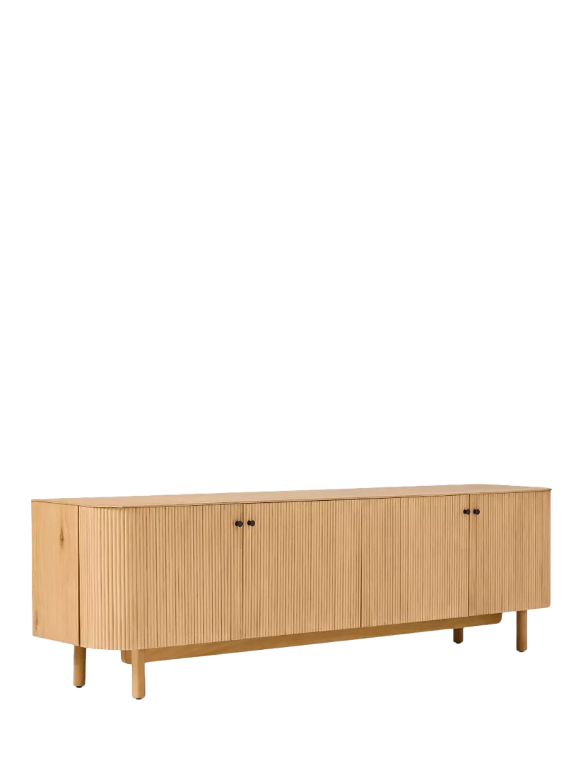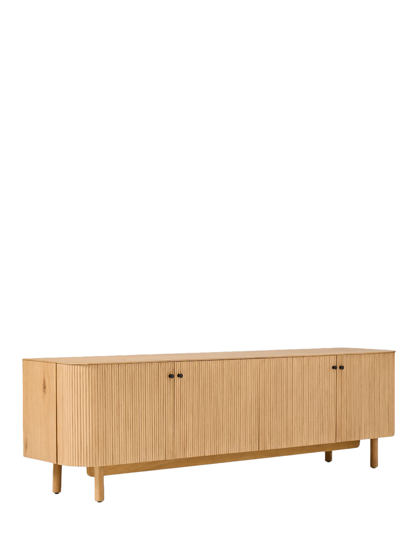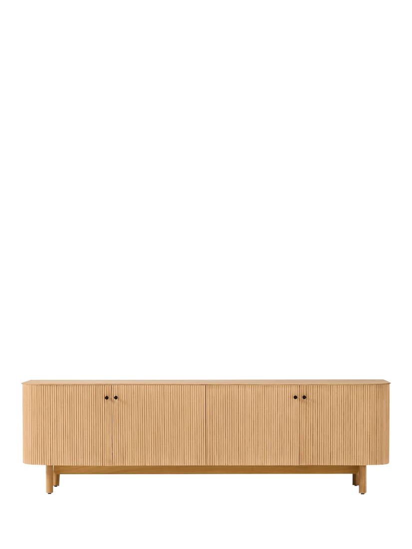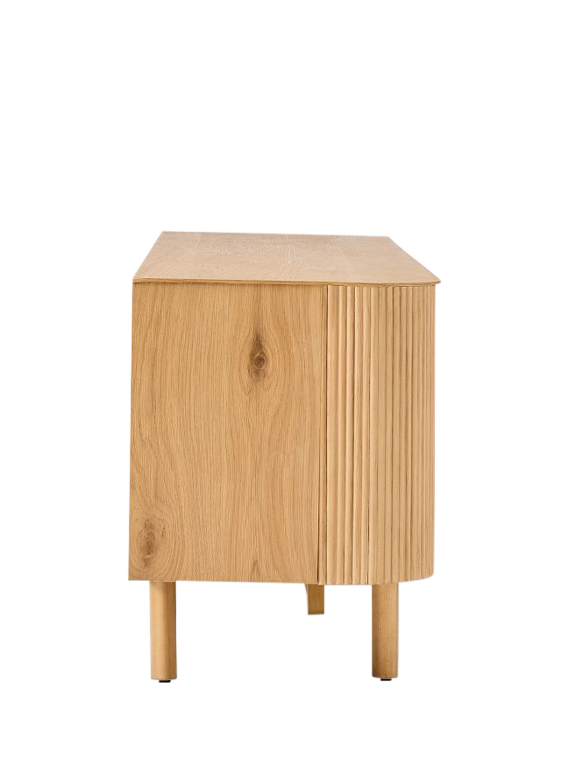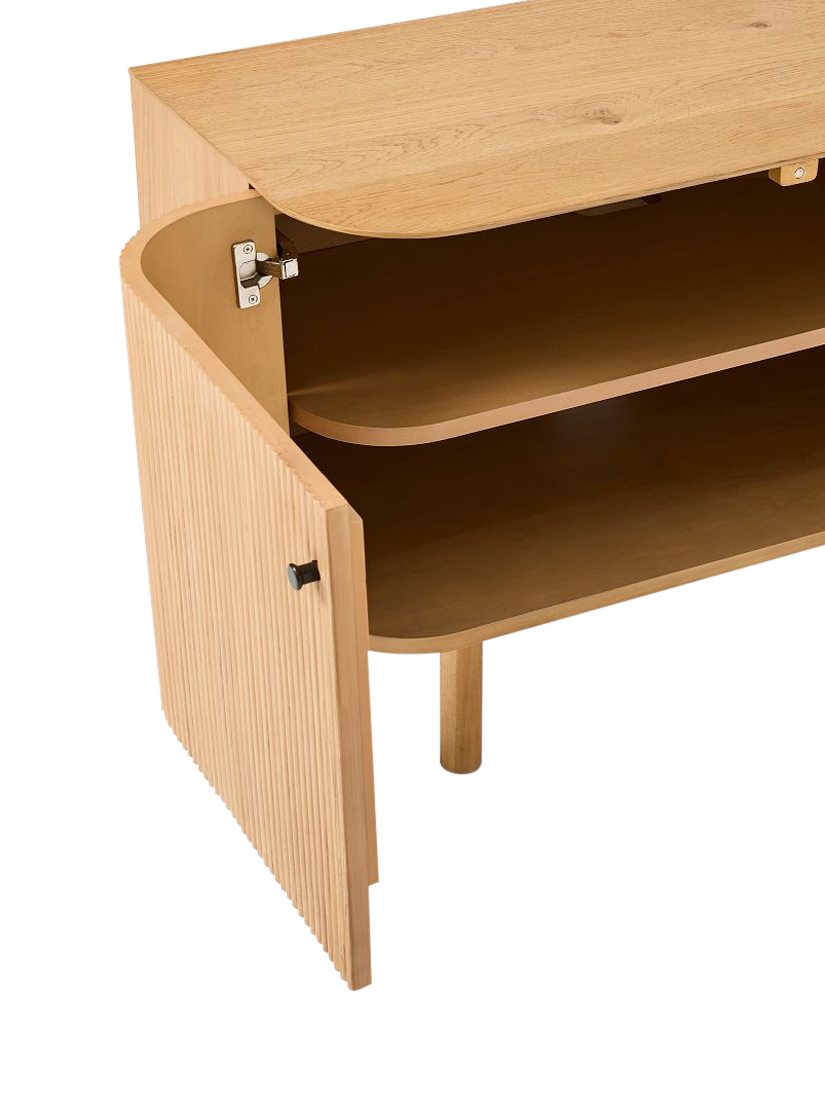 Rounded corners accentuate the fluted front of this sideboard. Elegant cylindrical legs keep it lifted off the floor.