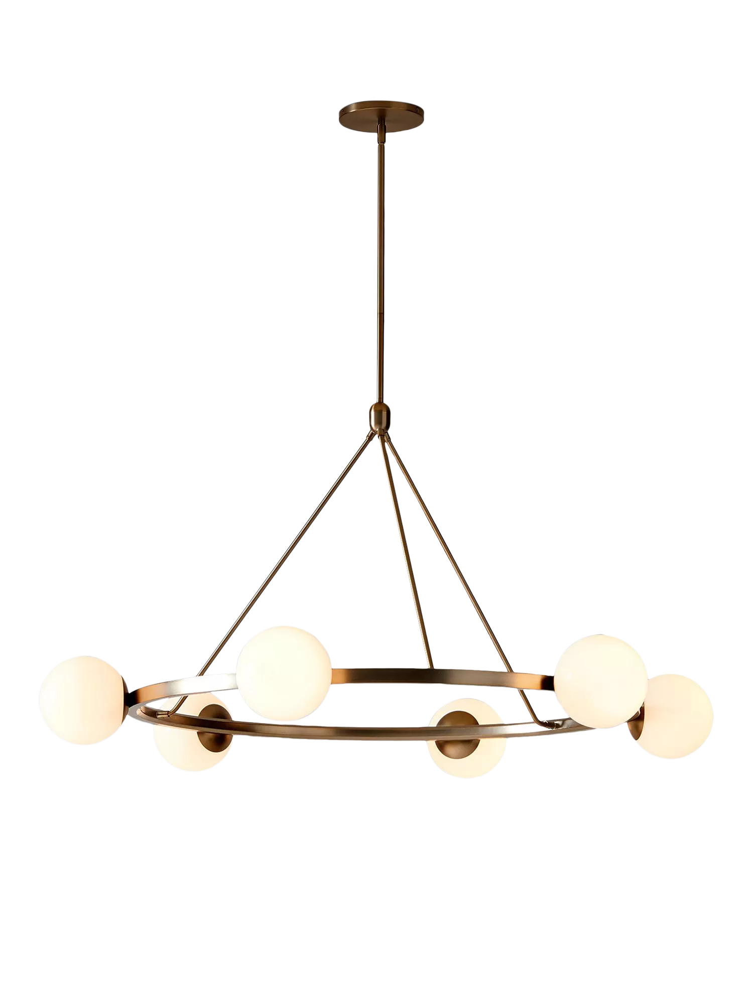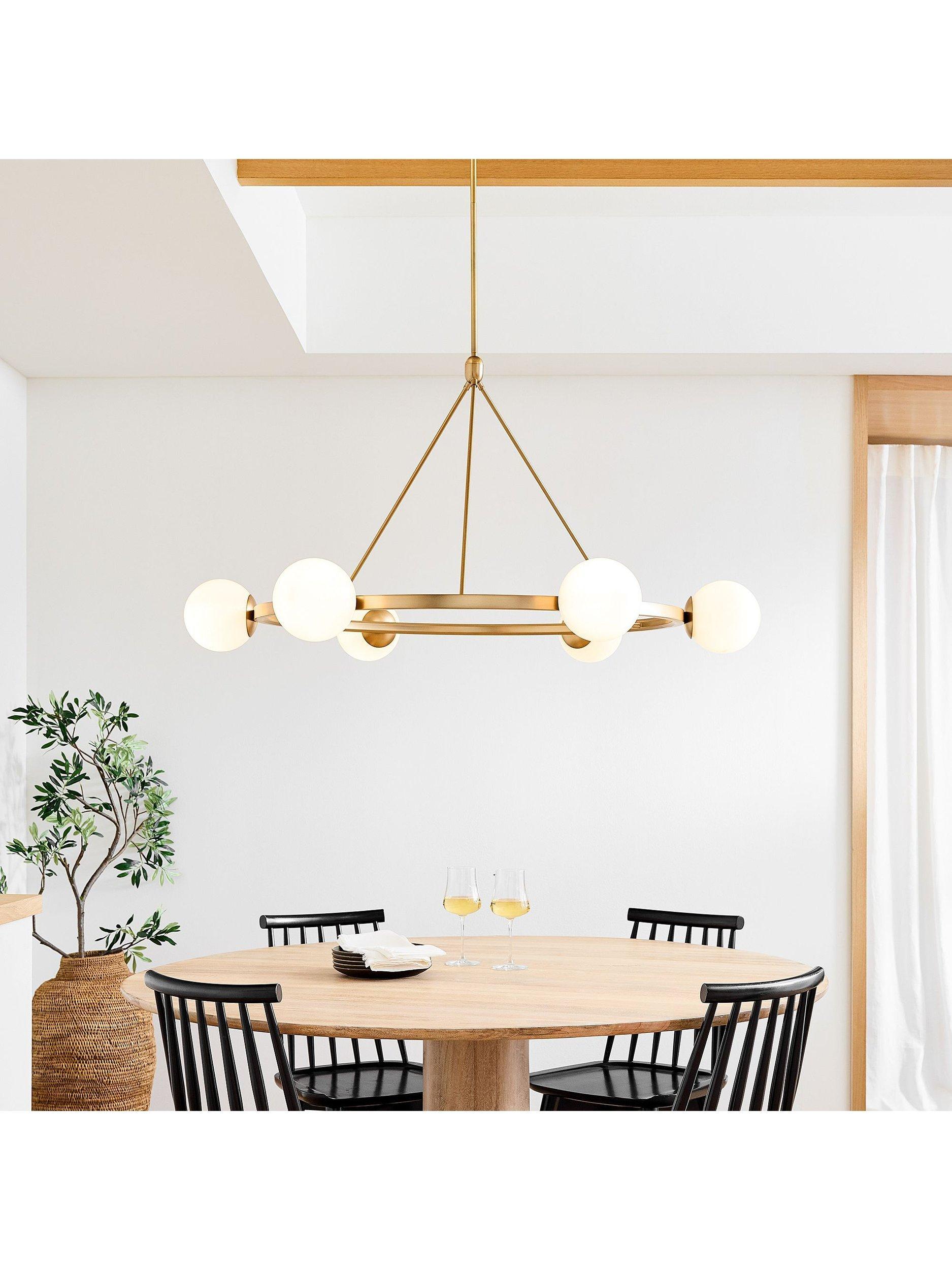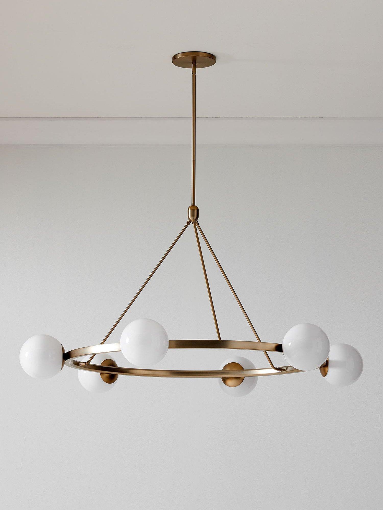 A modern take on traditional design, the pale glass globes create a warm light.