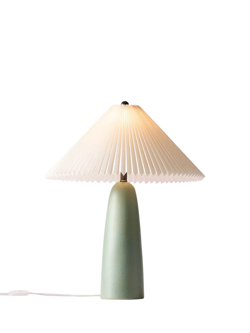 Pleated texture contrasts the smooth, organic ceramic base of the Louis table lamp. Adds earthy tones to side tables, desks and bedside tables.