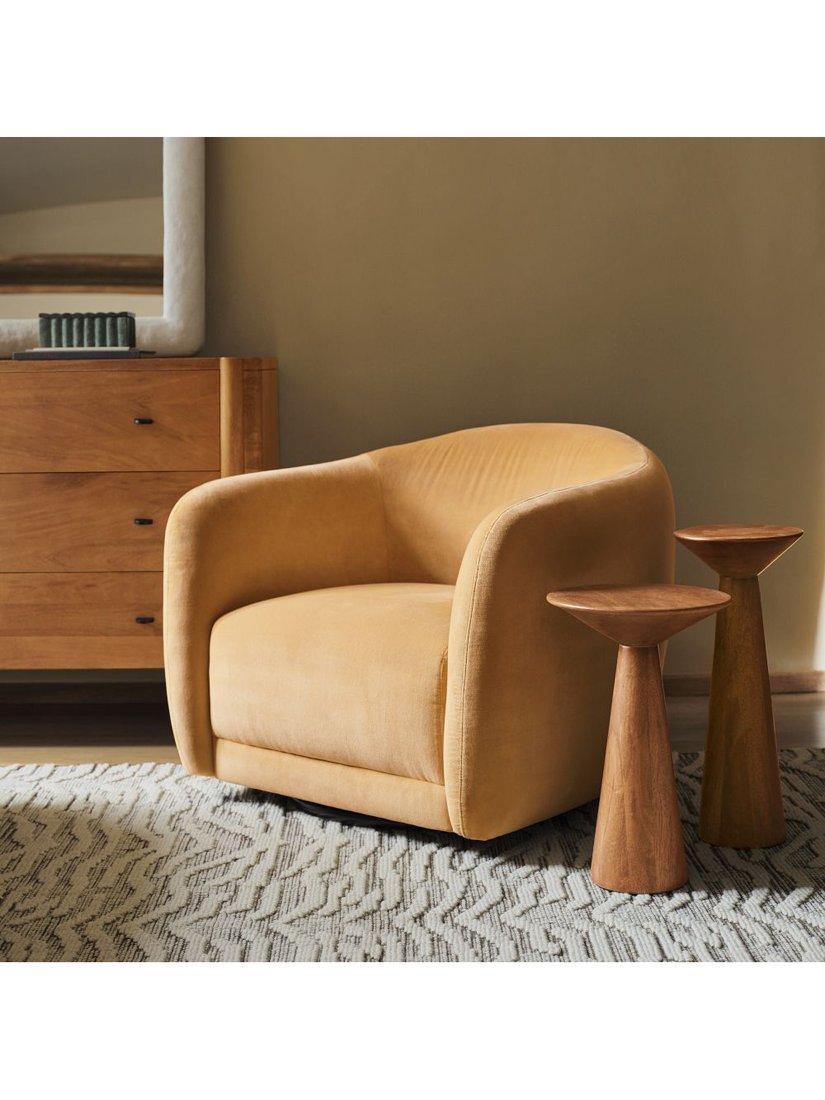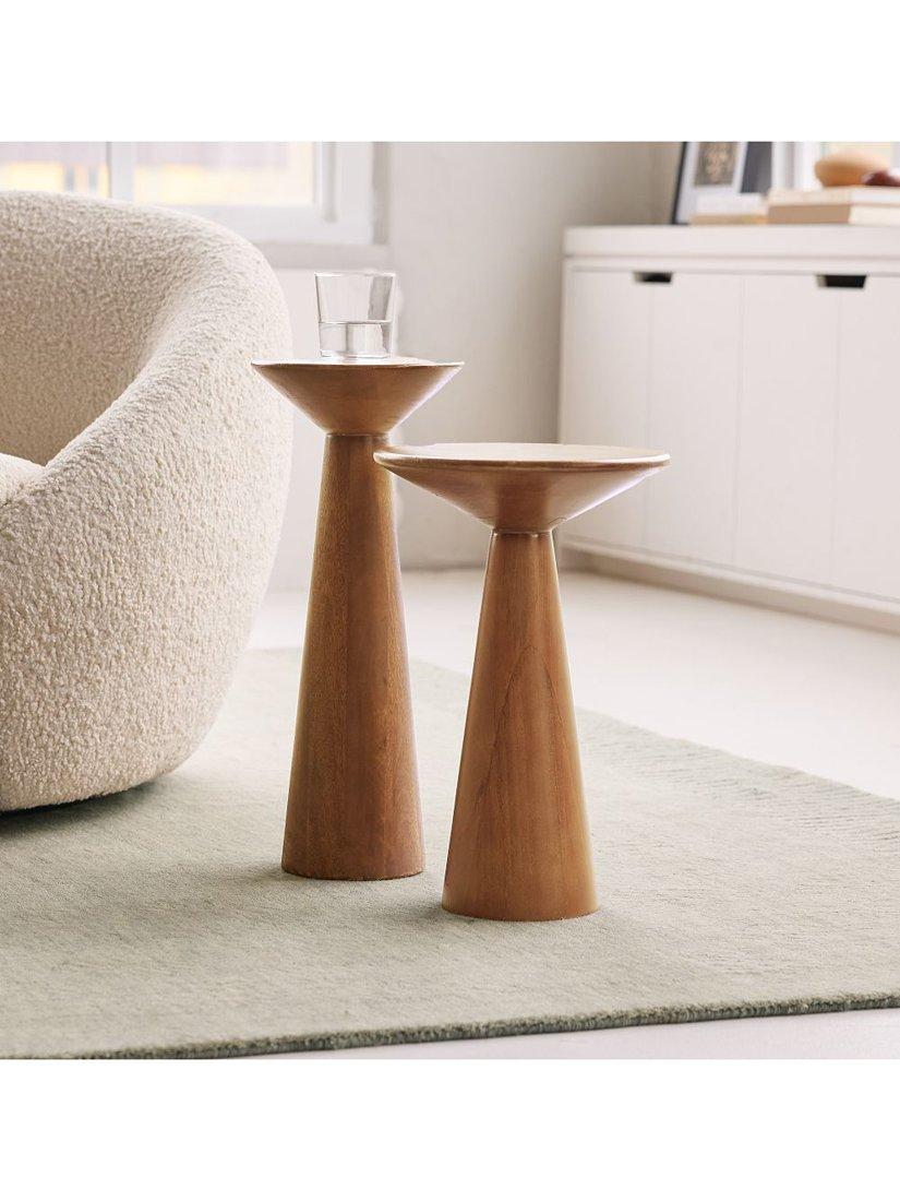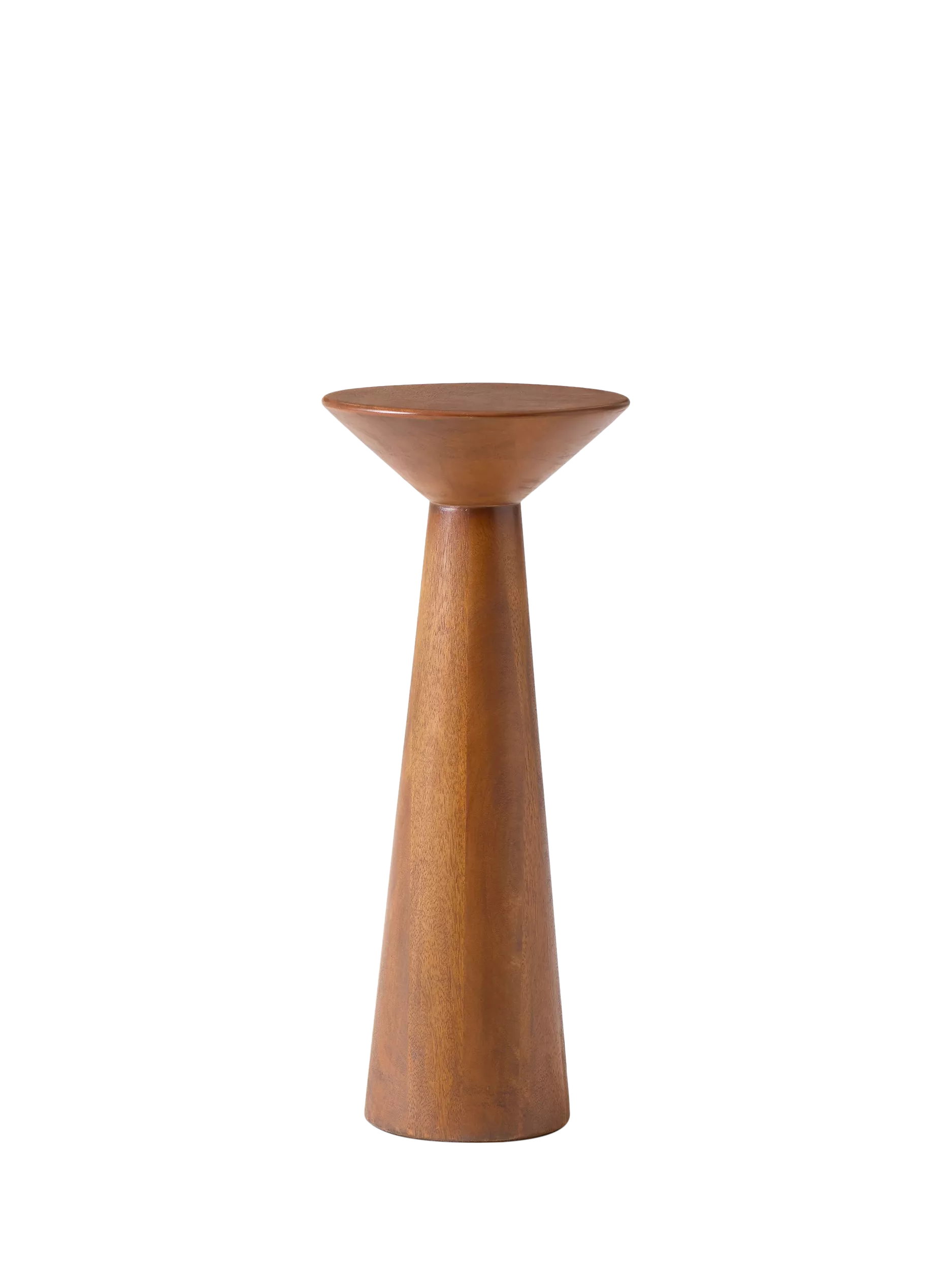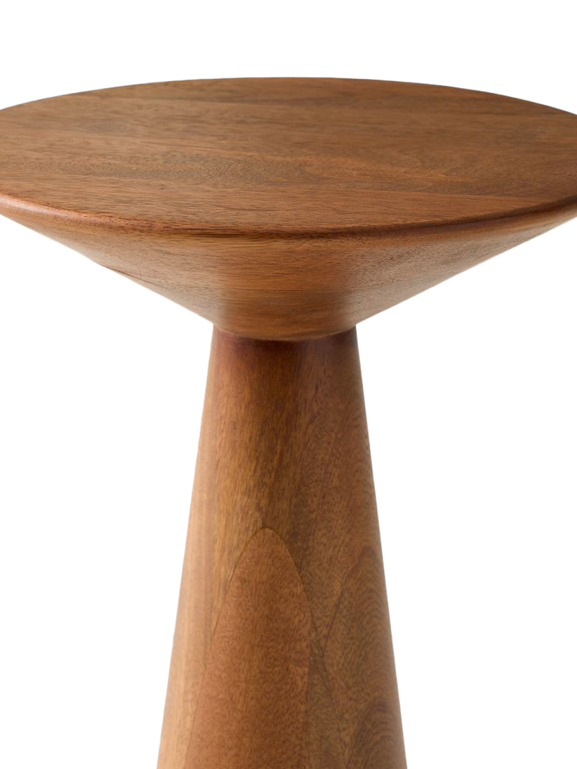Shapely pedestal side table for an updated yet retro look. Made from solid, sustainably sourced mango wood. A refined resting spot for drinks, plants or books.