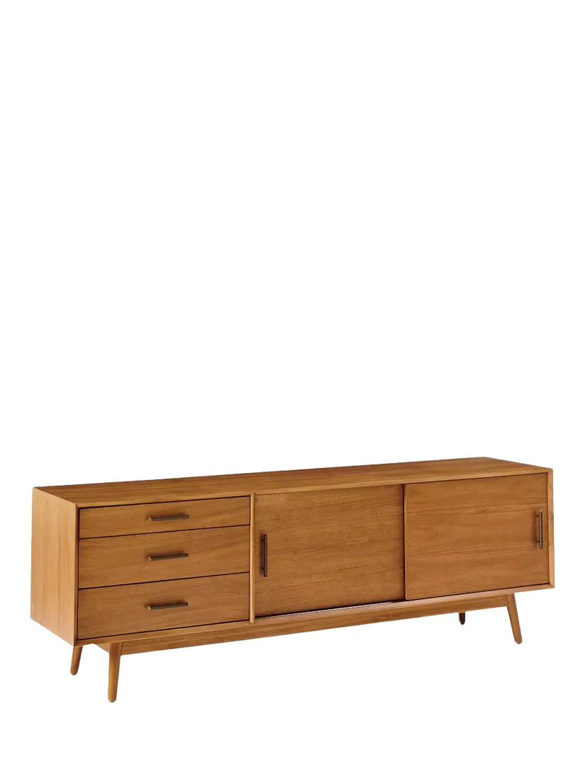 Inspired by iconic '50s and '60s furniture design with its tapered legs and bevelled front edges. Fitted with drawers and a spacious cabinet, no matter which room you place this versatile piece in, it's a chic storage solution.