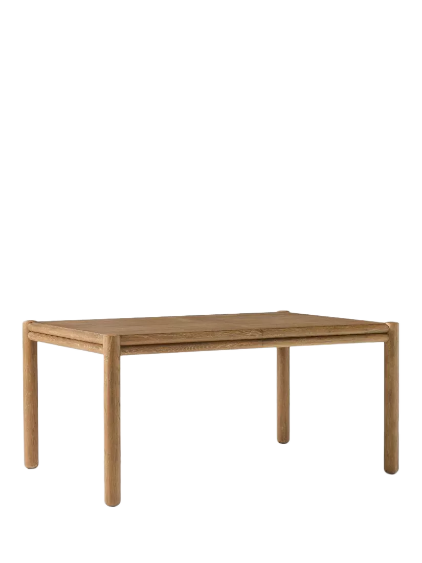 Modern dining table with rounded legs and top to soften the clean-lined silhouette. Expandable, so there's always room for more. A drop-in leaf adds up to two additional seating spaces for friends and family.