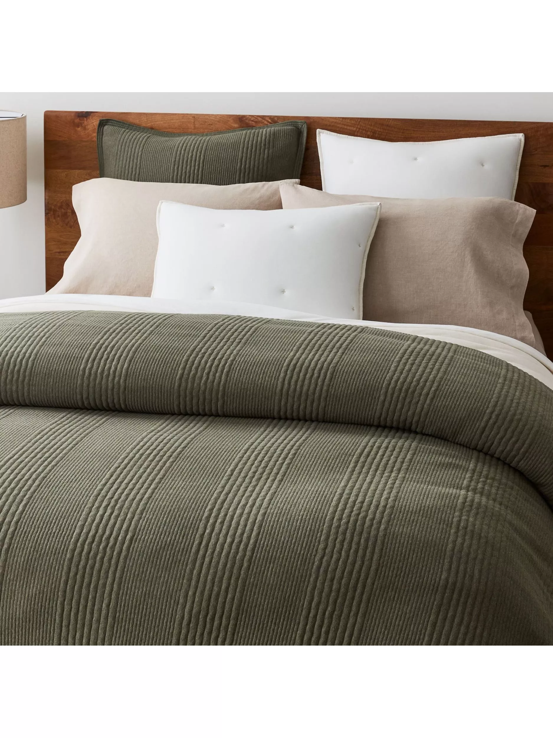 Incredibly soft and comfy jersey fabric pillowcase and duvet cover woven from pure organic cotton. The cotton is ring-spun, combed and yarn-dyed. A ribbed texture gives it cuddle-worthy plushness.