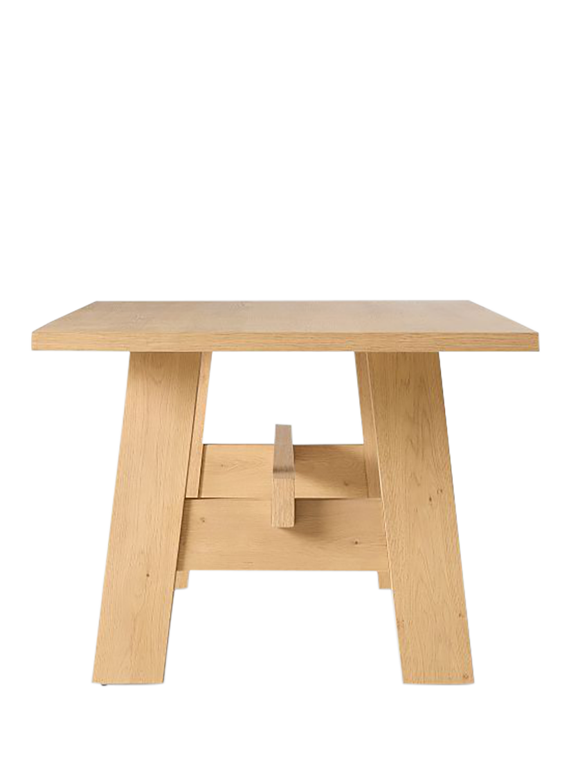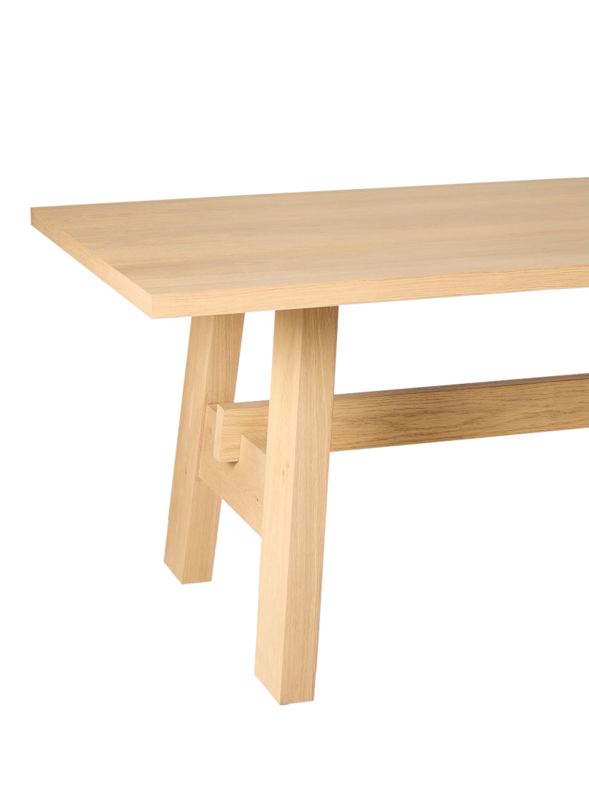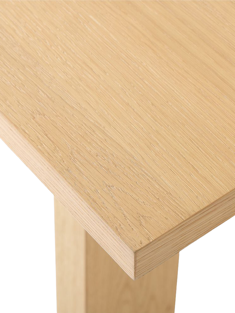 The table is crafted from FSC®-certified wood sourced from responsibly managed forests, featuring an oak veneer over an engineered wood core. To ensure the piece stands the test of time, all wood is kiln-dried, a process that prevents warping and adds structural durability.