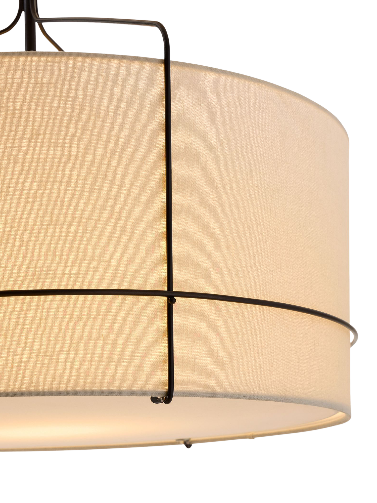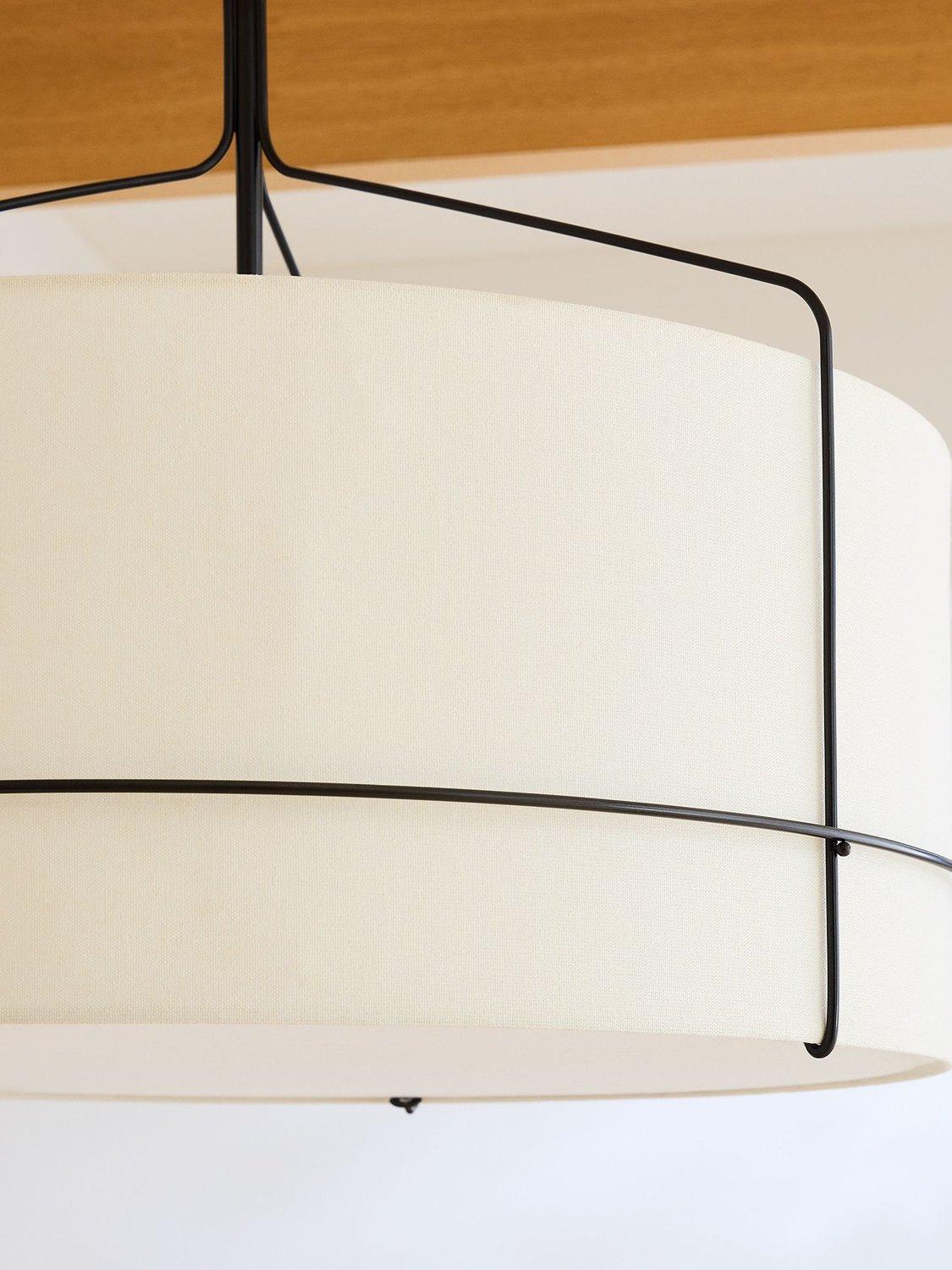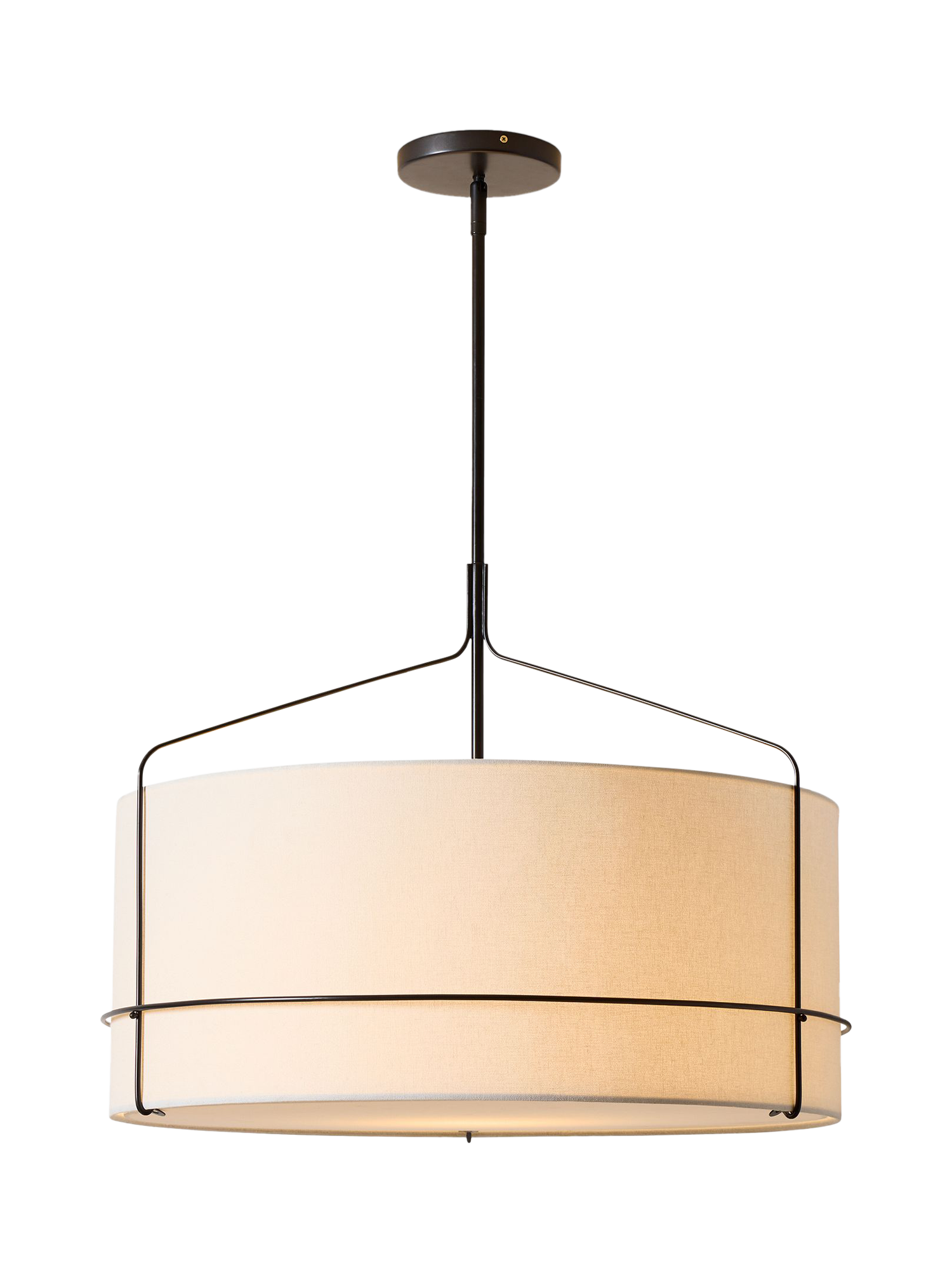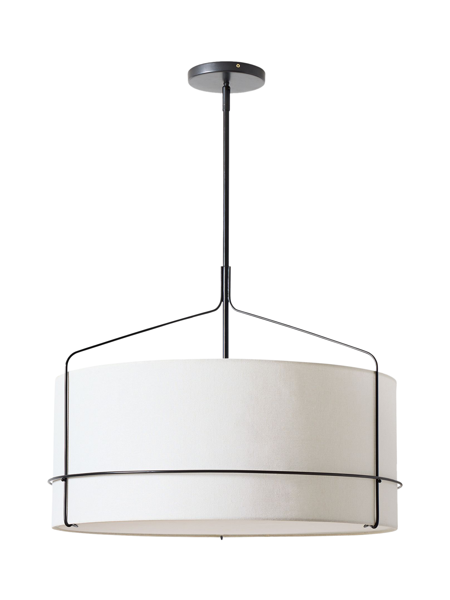 An exposed metal frame adds a touch of industrial appeal to this pendant light. Brings a comforting glow to an entryway, kitchen or bedroom.