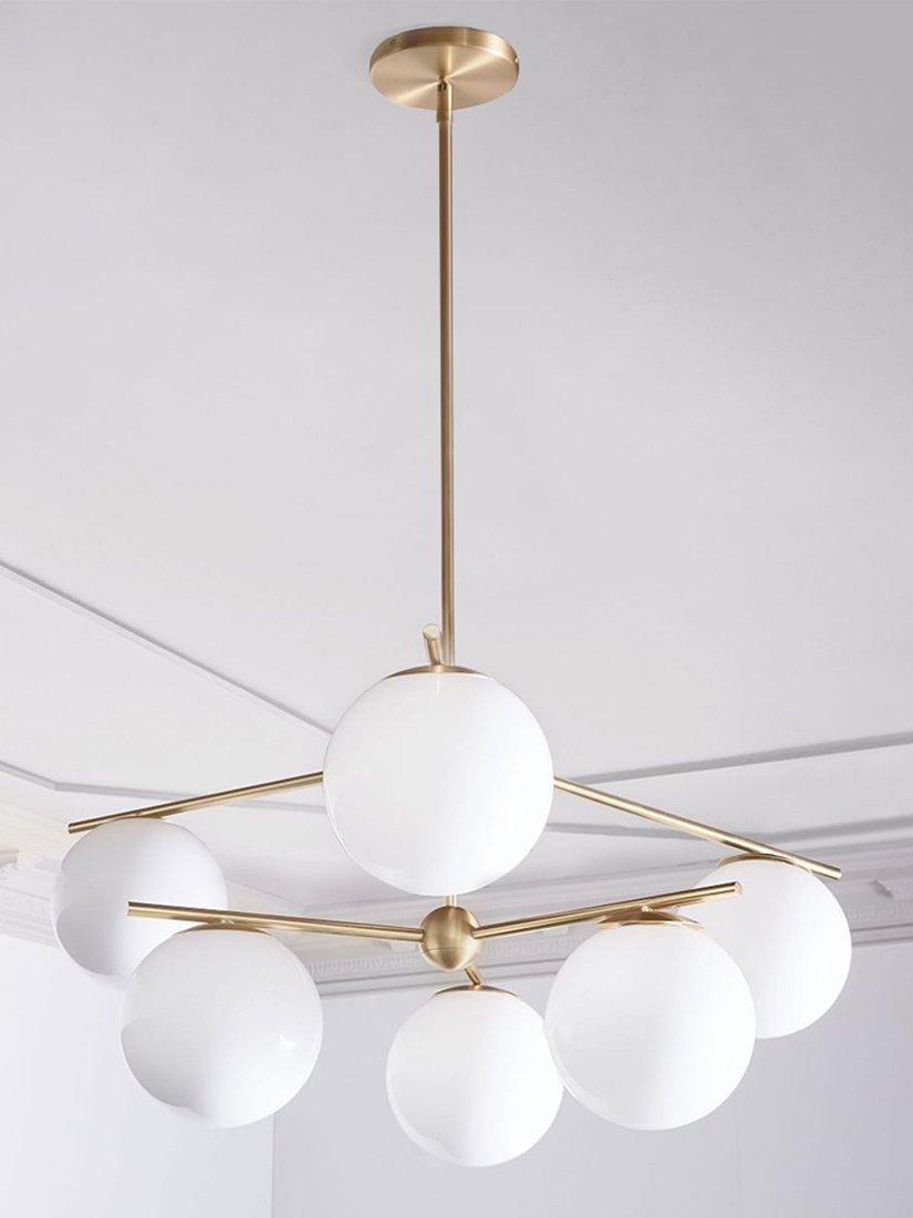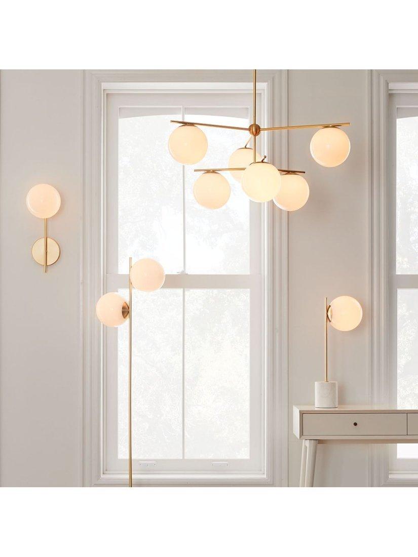 Elevated and modern, the Sphere + Stem Chandelier comes with an adjustable rod so it can be modified for your ceiling height. The light features six glass globes on elegant metal arms in a glamorous finish. Simplicity has never shined so bright.