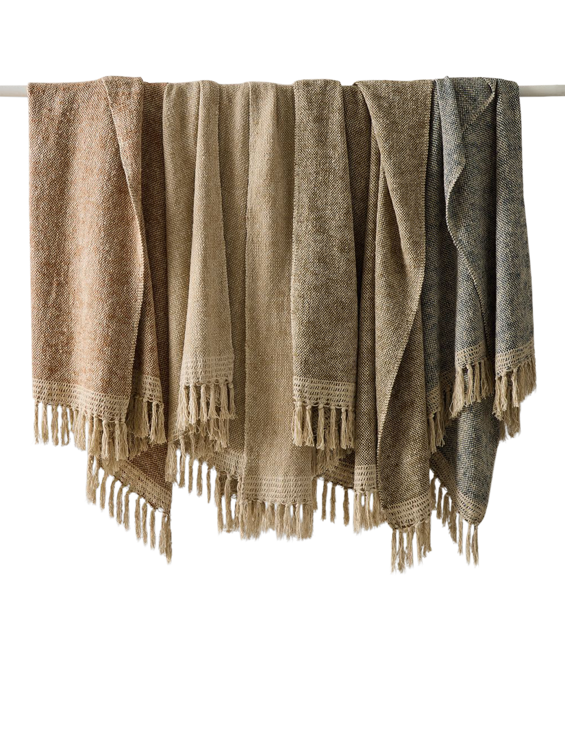 Woven with two-tone yarn to create a beautiful high low effect, this soft, chunky textured throw is rustic, yet refined.